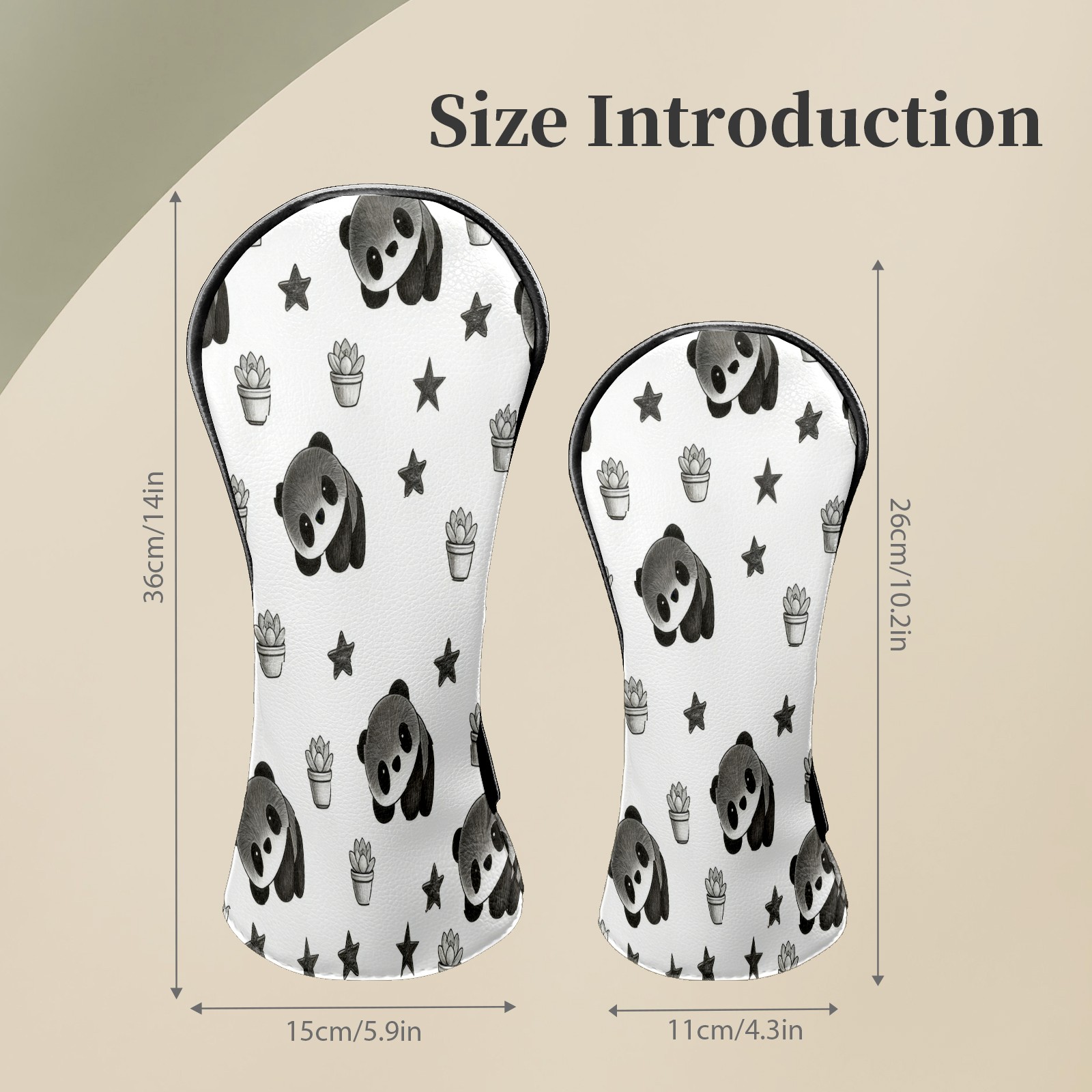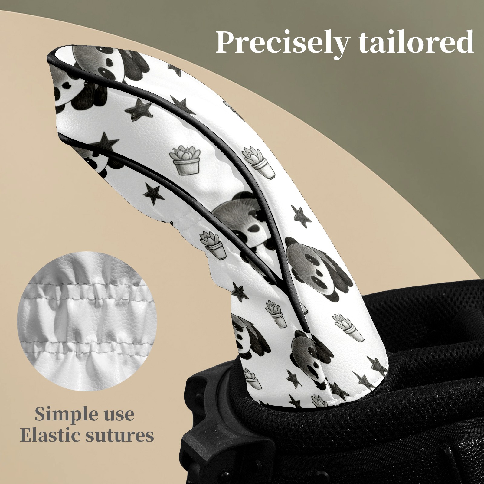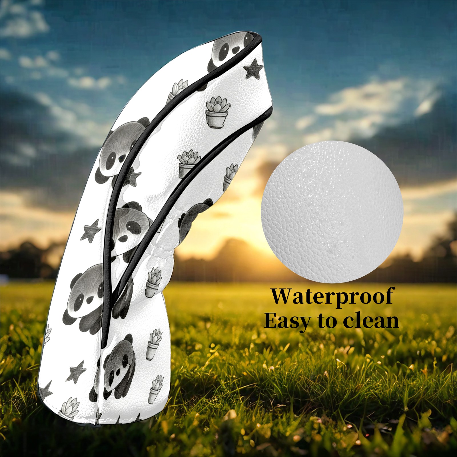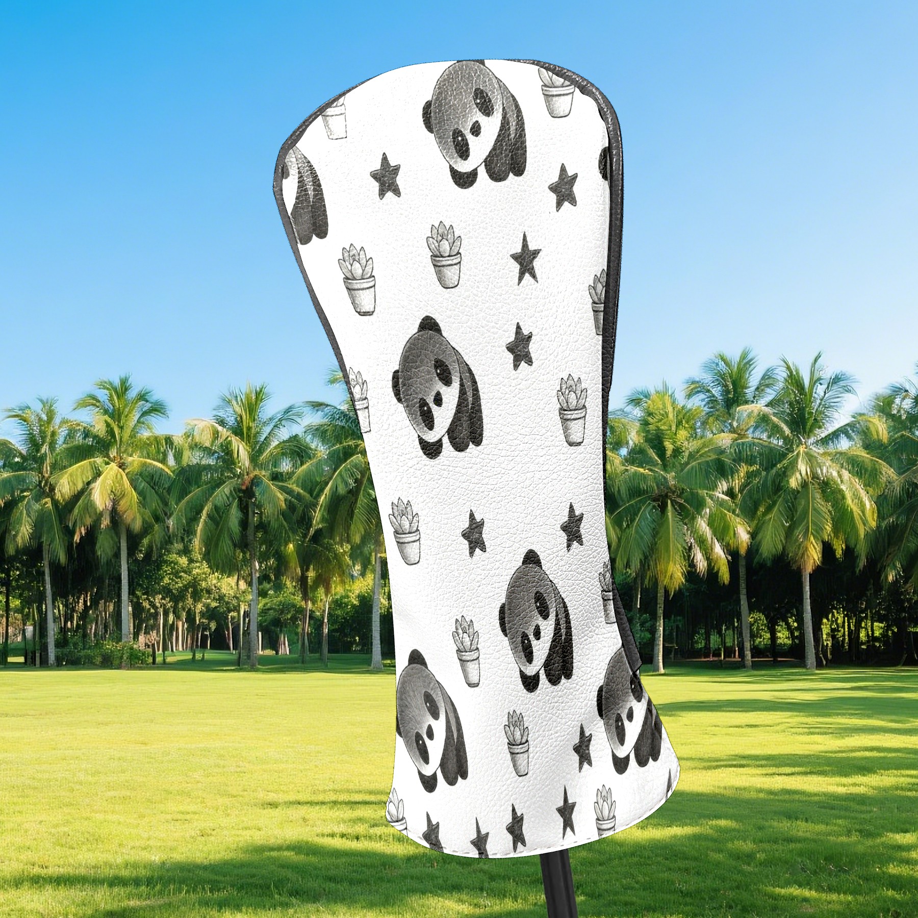 Counullo Golf Club Headcovers - Cute Panda Black Premium PU Leather with Plush Lining for Driver & Fairway Woods, No-Slip Fit for All Clubs, Novelty Gift for Men & Women