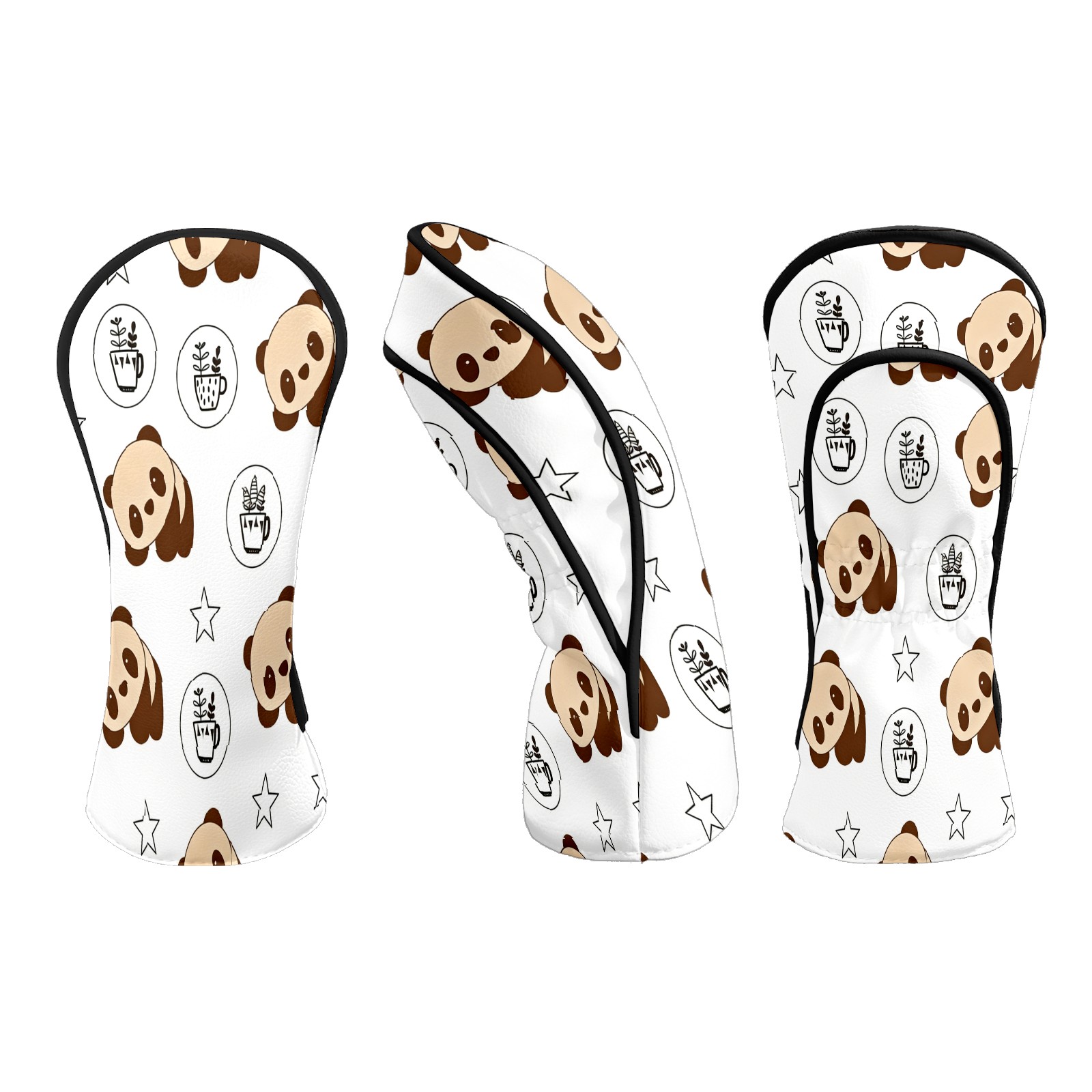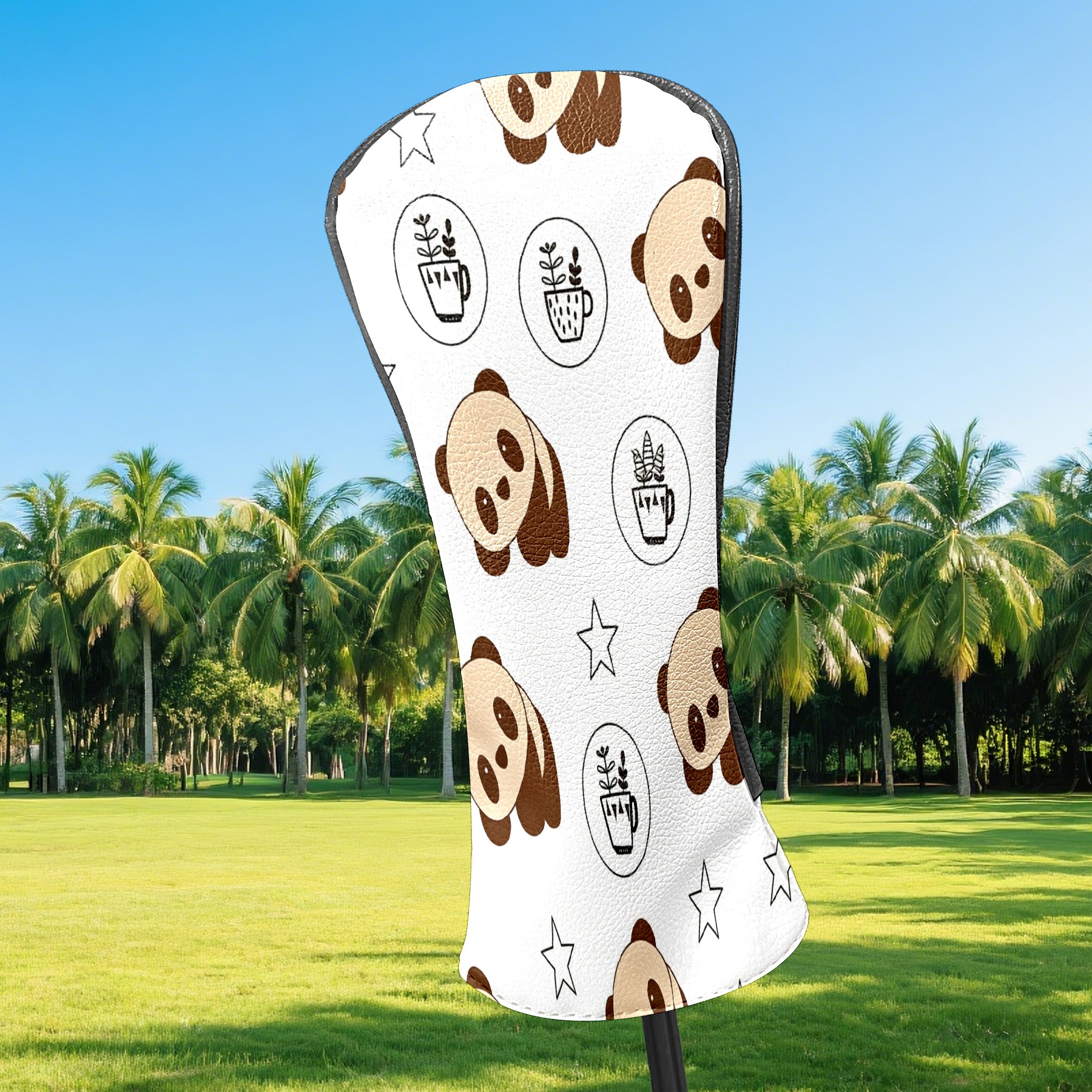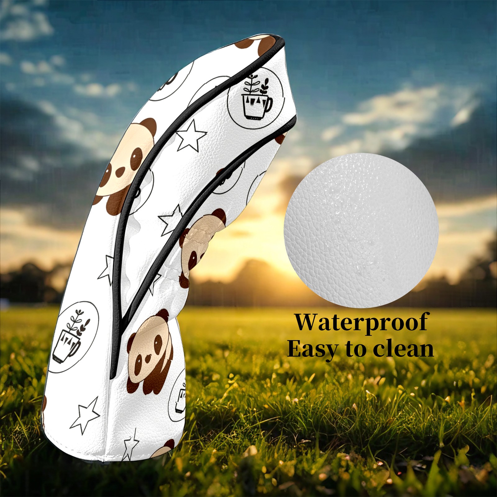 Counullo Golf Club Headcovers - Cute Panda Beige Premium PU Leather with Plush Lining for Driver & Fairway Woods, No-Slip Fit for All Clubs, Novelty Gift for Men & Women