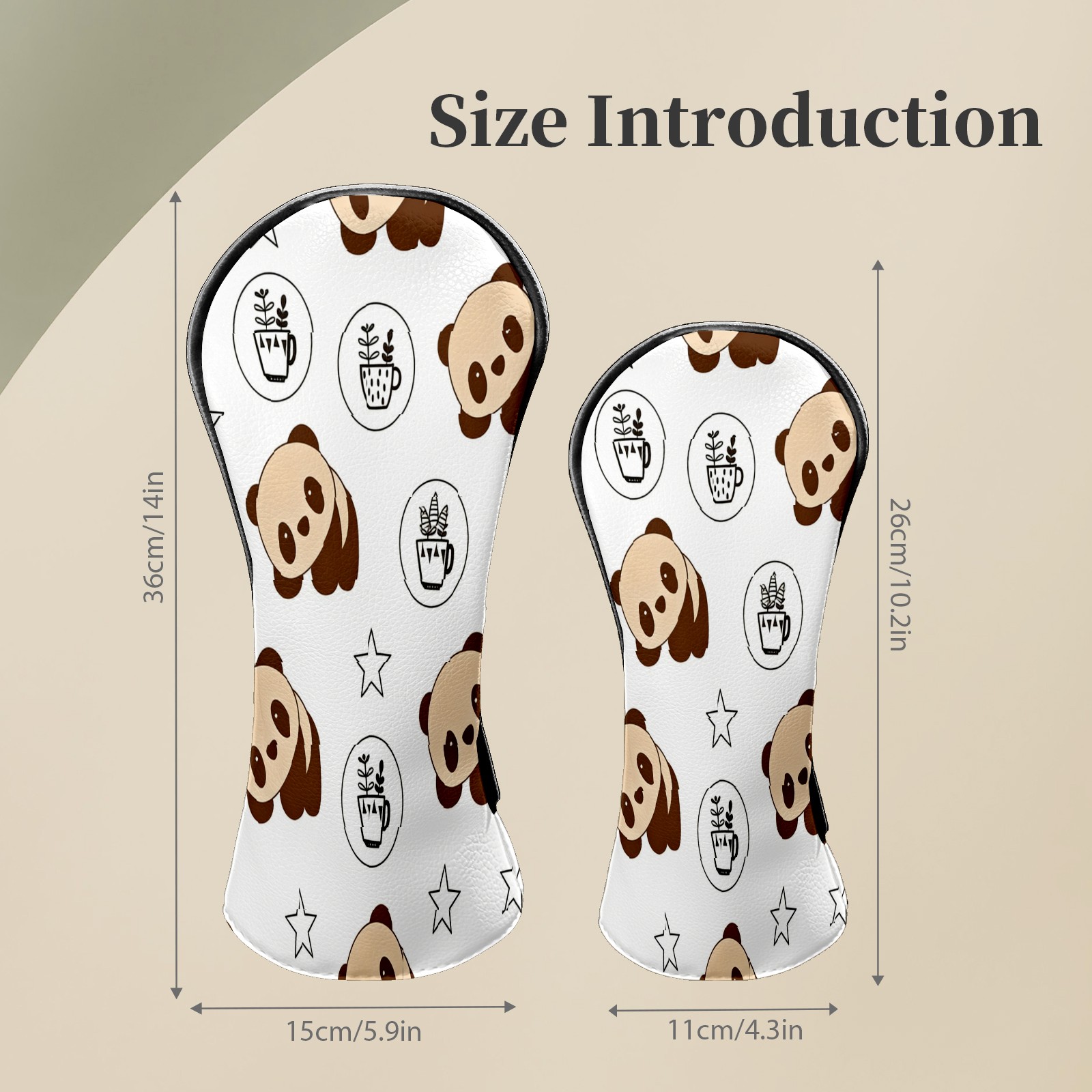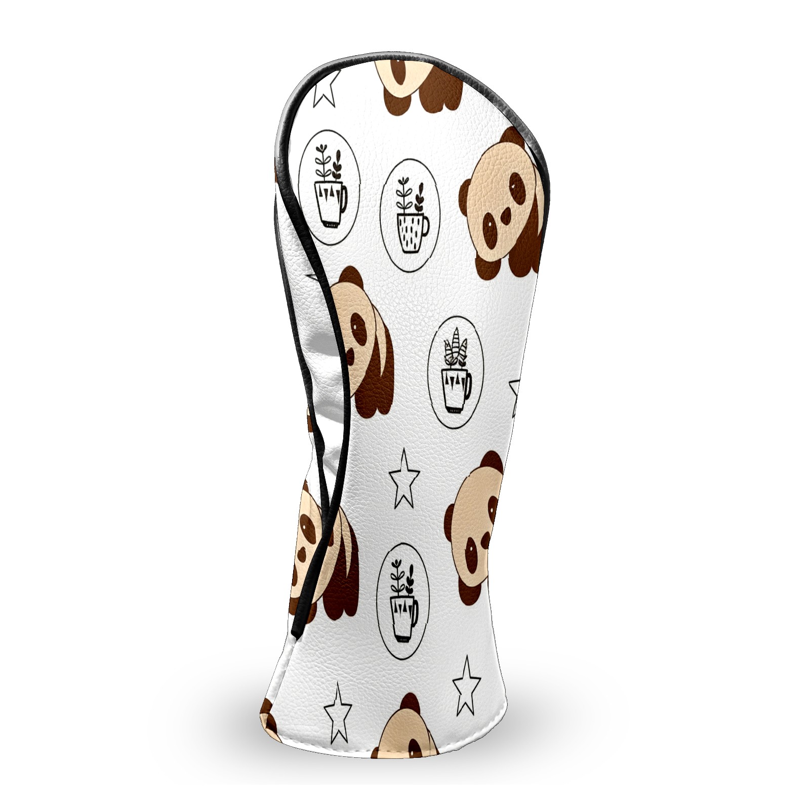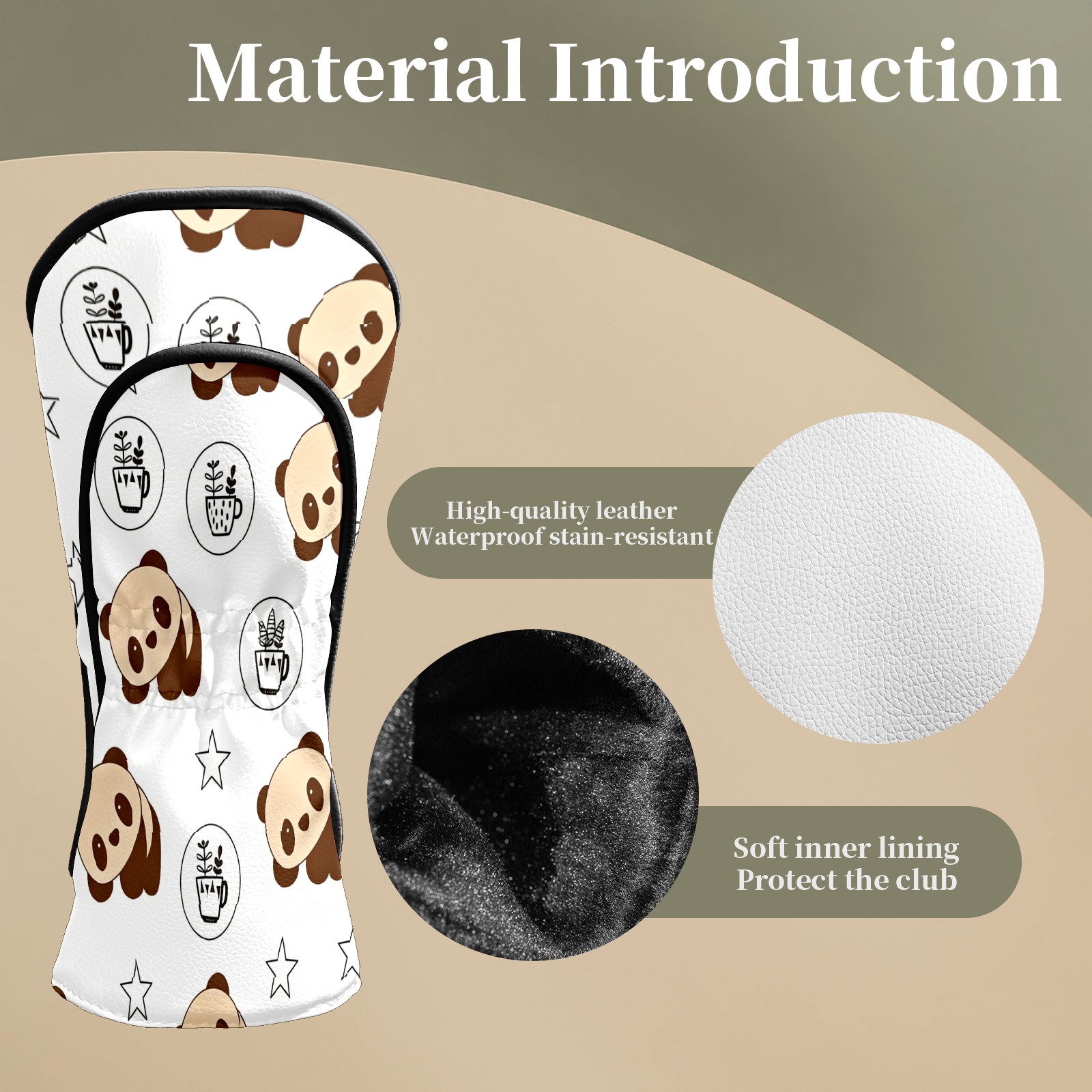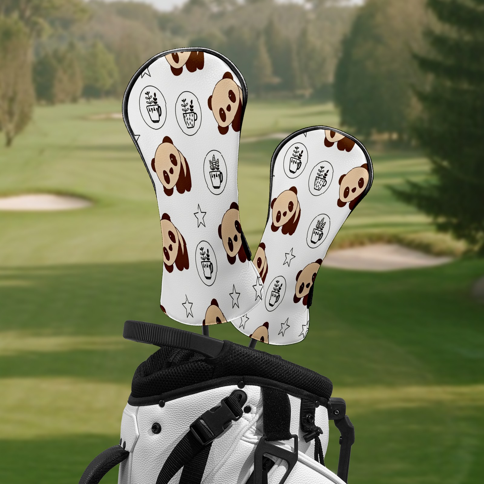 Counullo Golf Club Headcovers - Cute Panda Beige Premium PU Leather with Plush Lining for Driver & Fairway Woods, No-Slip Fit for All Clubs, Novelty Gift for Men & Women
