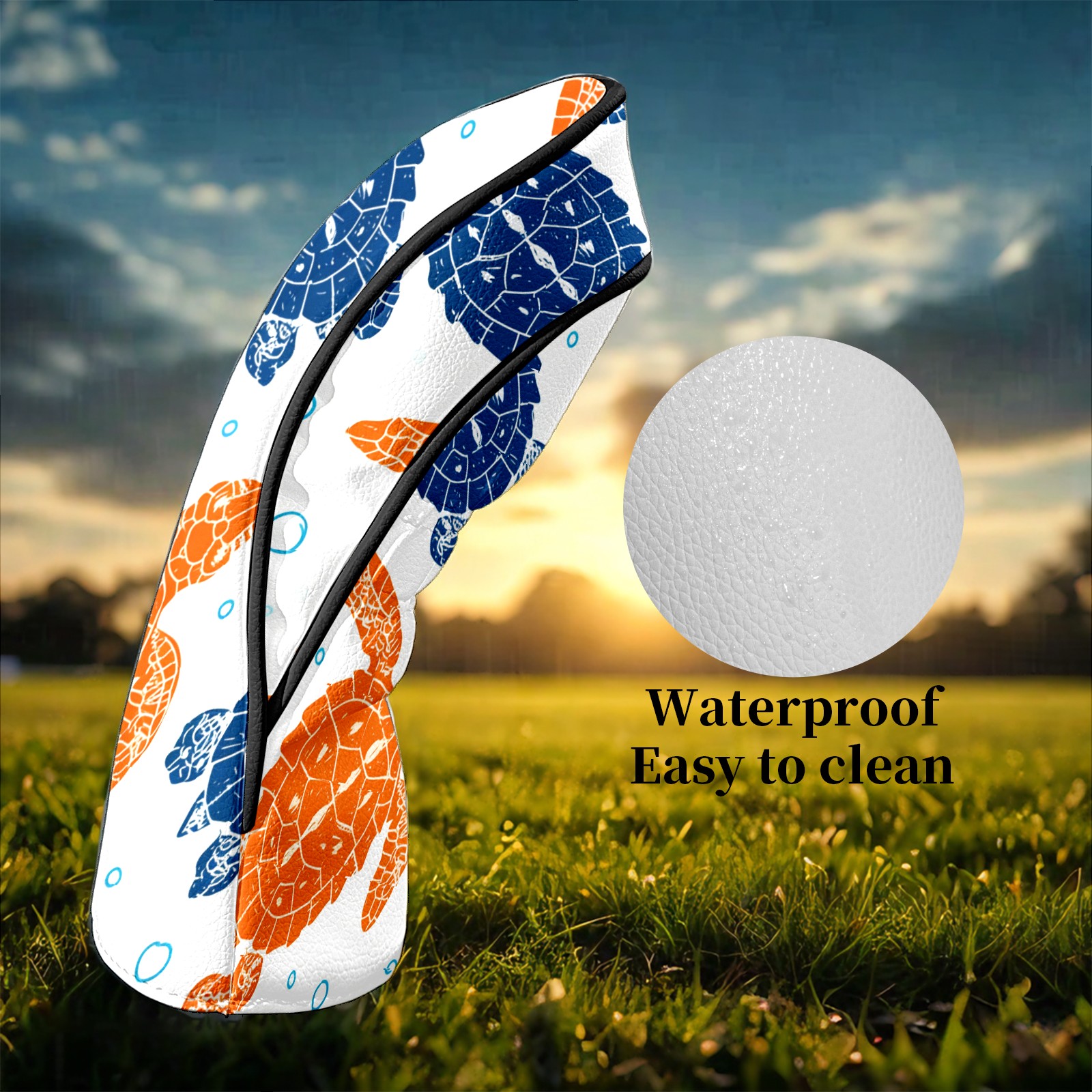 Counullo Golf Club Headcovers - Vibrant Turtle Blue Premium PU Leather with Plush Lining for Driver & Fairway Woods, No-Slip Fit for All Clubs, Novelty Gift for Men & Women