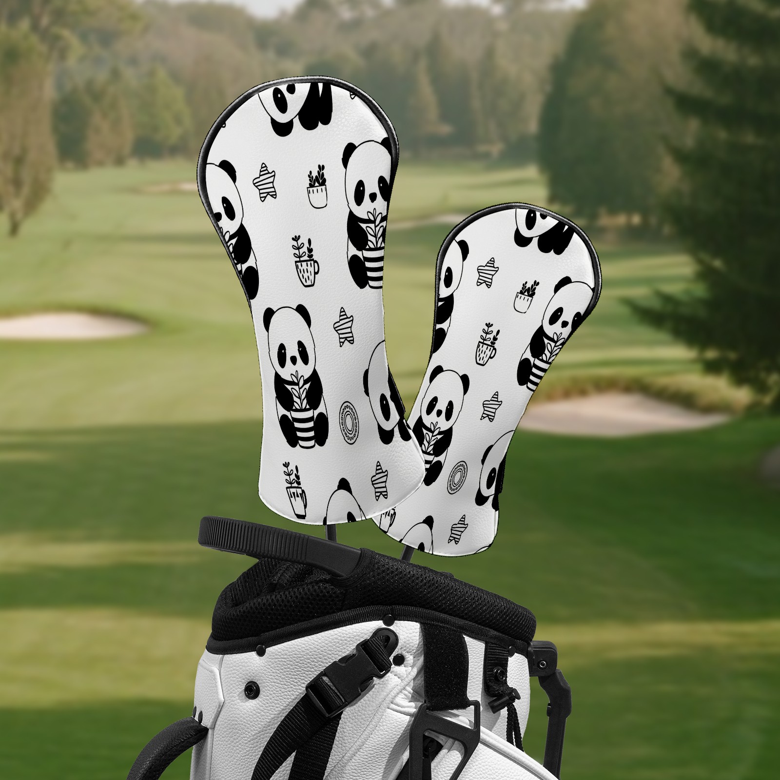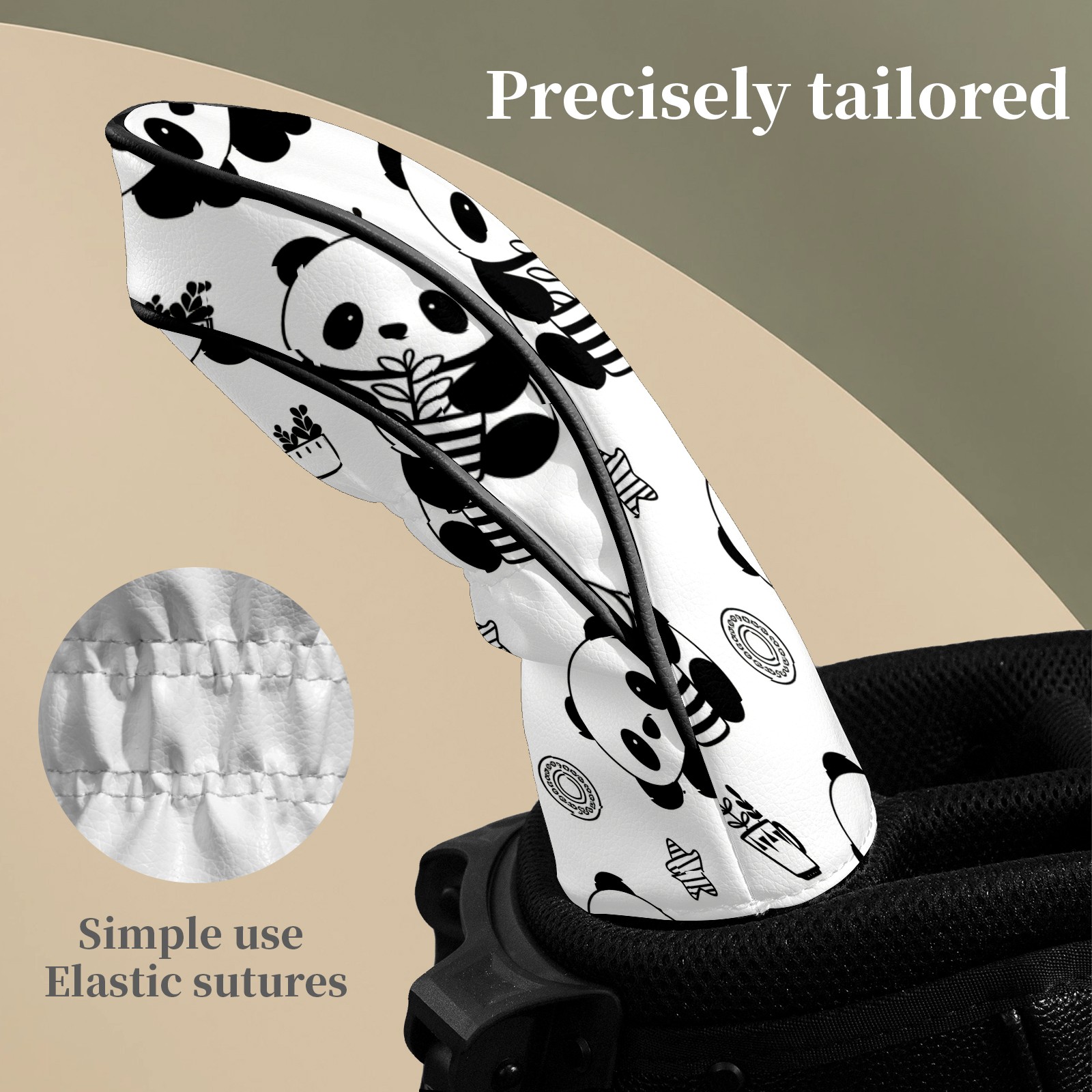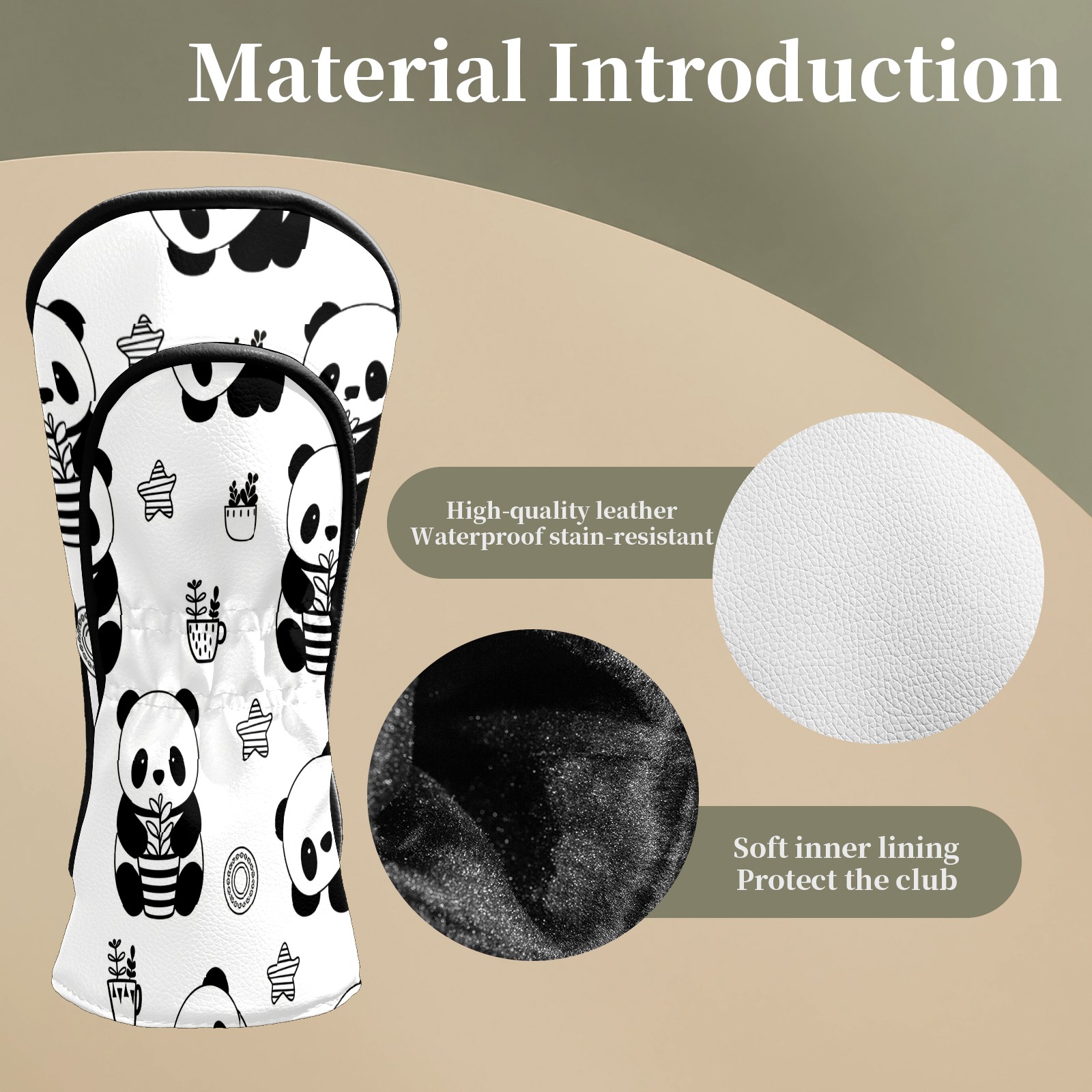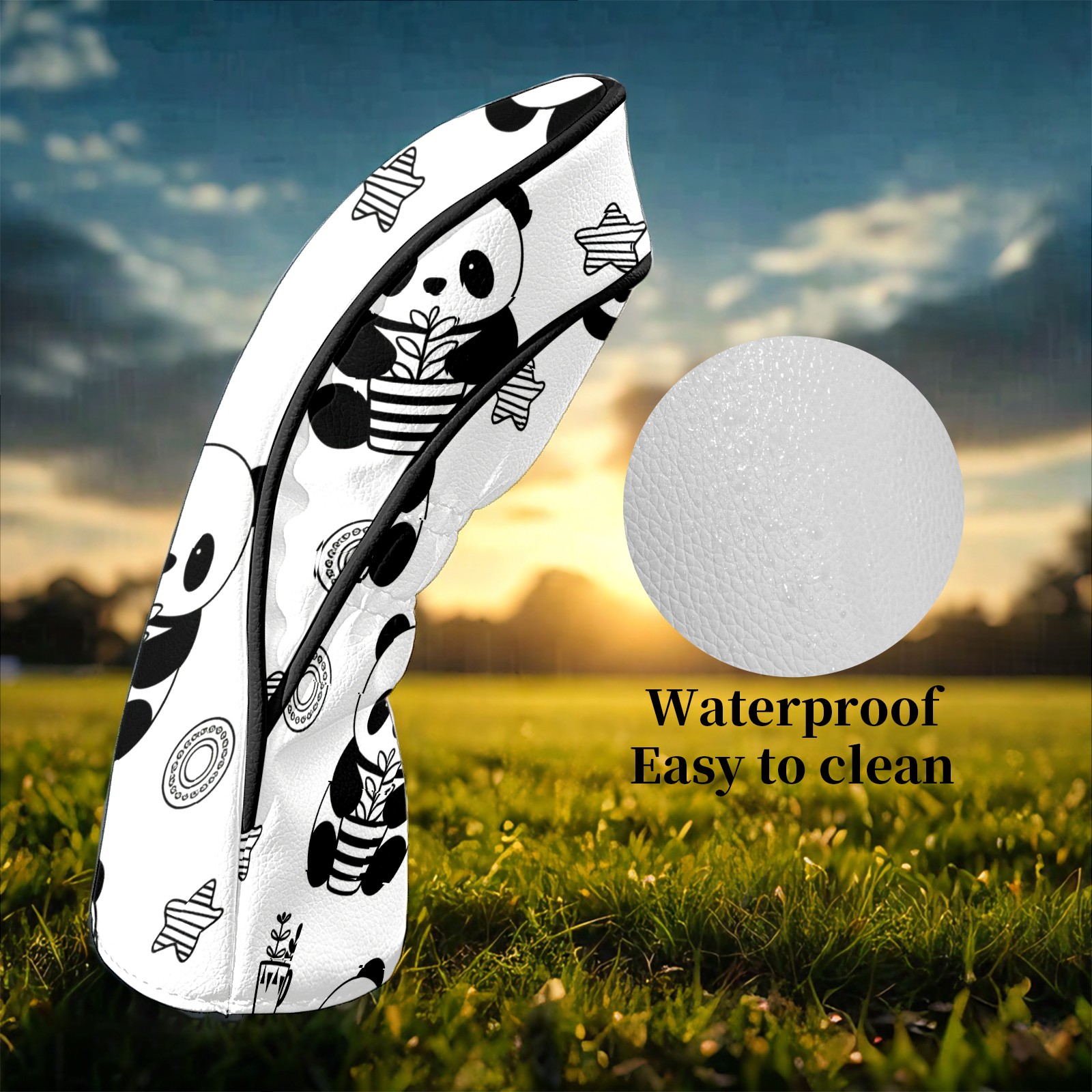 Counullo Golf Club Headcovers - Playful Panda White Premium PU Leather with Plush Lining for Driver & Fairway Woods, No-Slip Fit for All Clubs, Novelty Gift for Men & Women