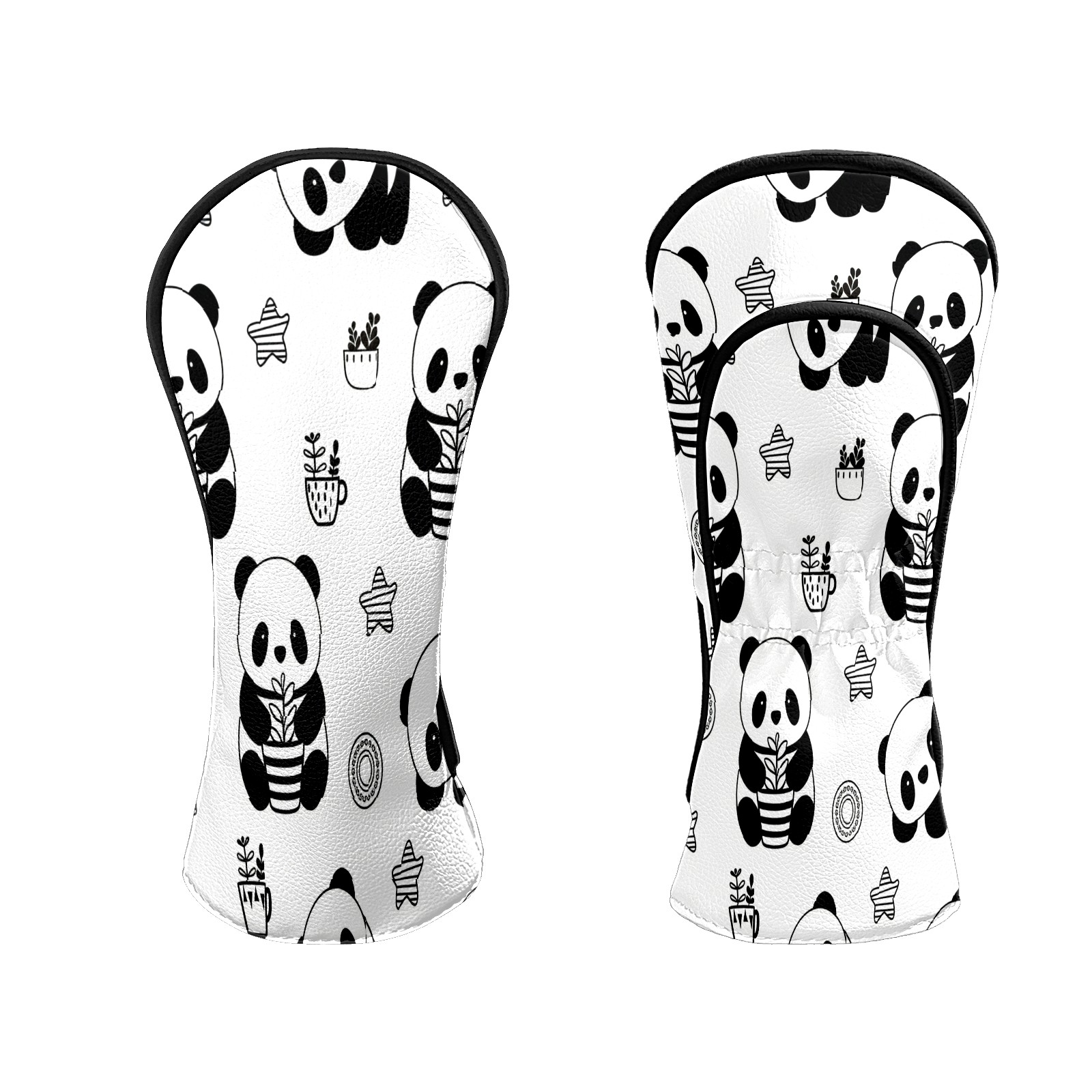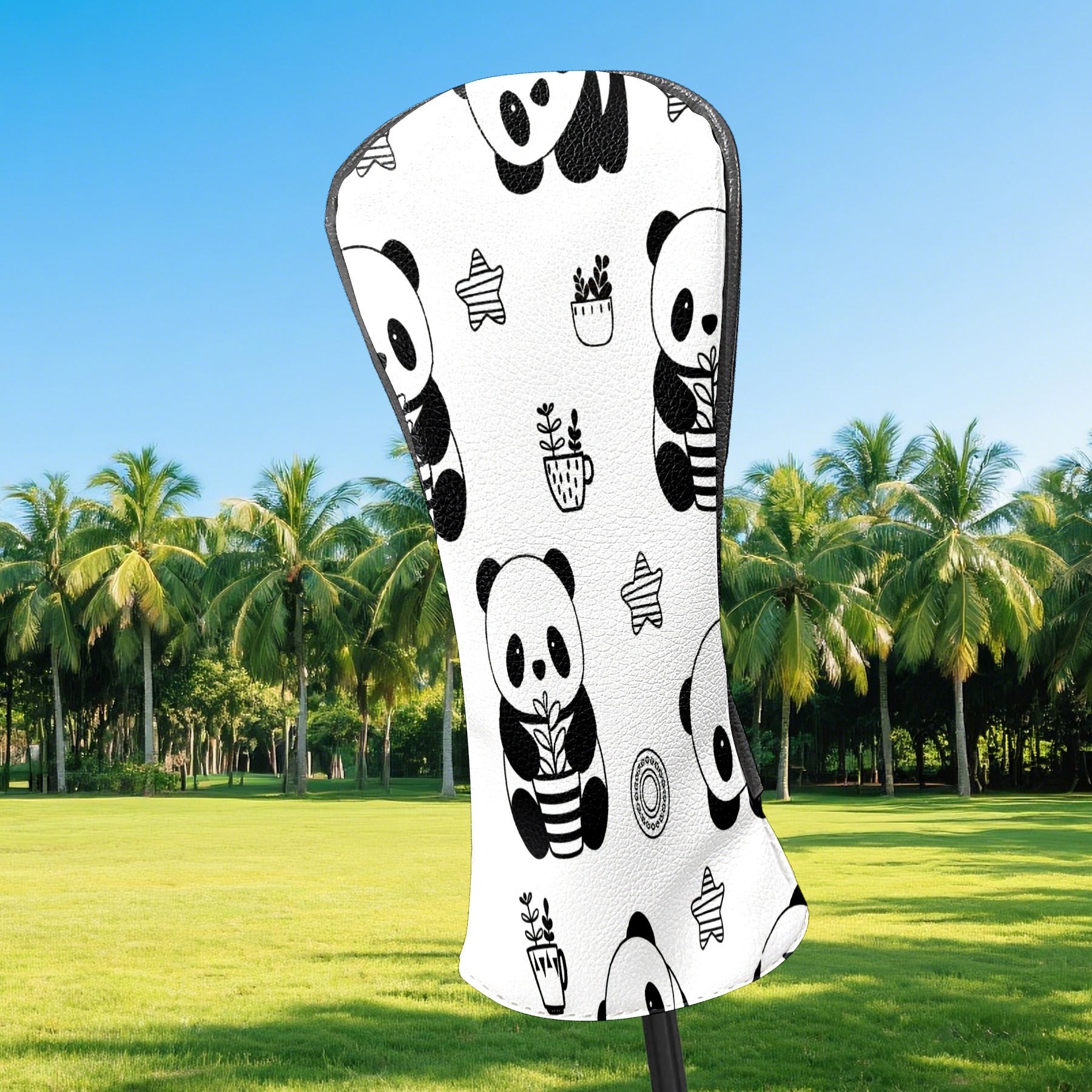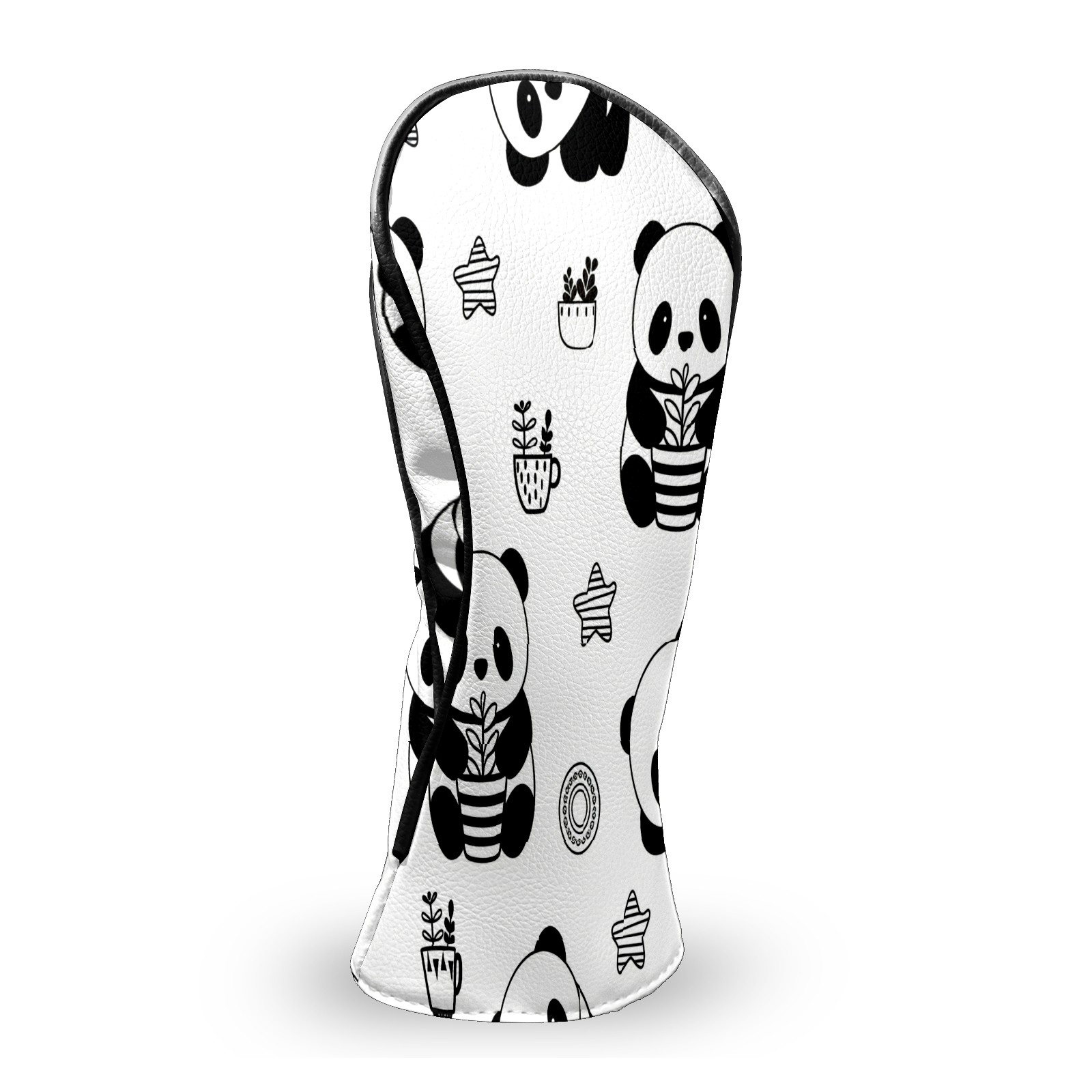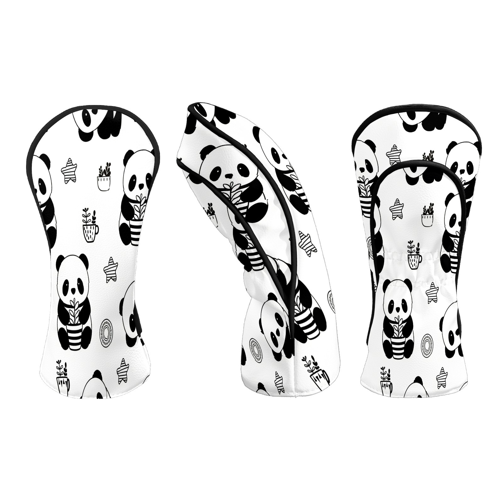 Counullo Golf Club Headcovers - Playful Panda White Premium PU Leather with Plush Lining for Driver & Fairway Woods, No-Slip Fit for All Clubs, Novelty Gift for Men & Women