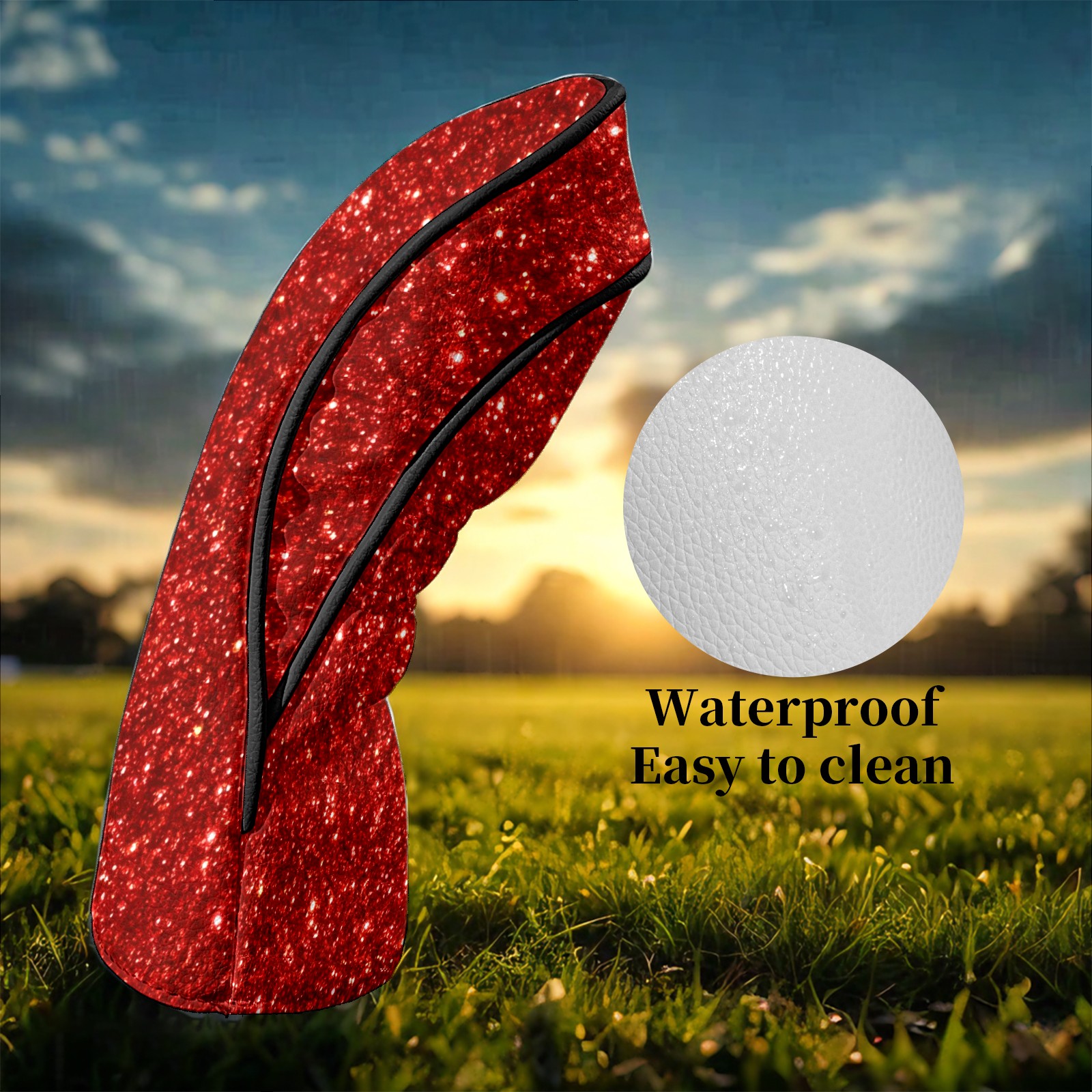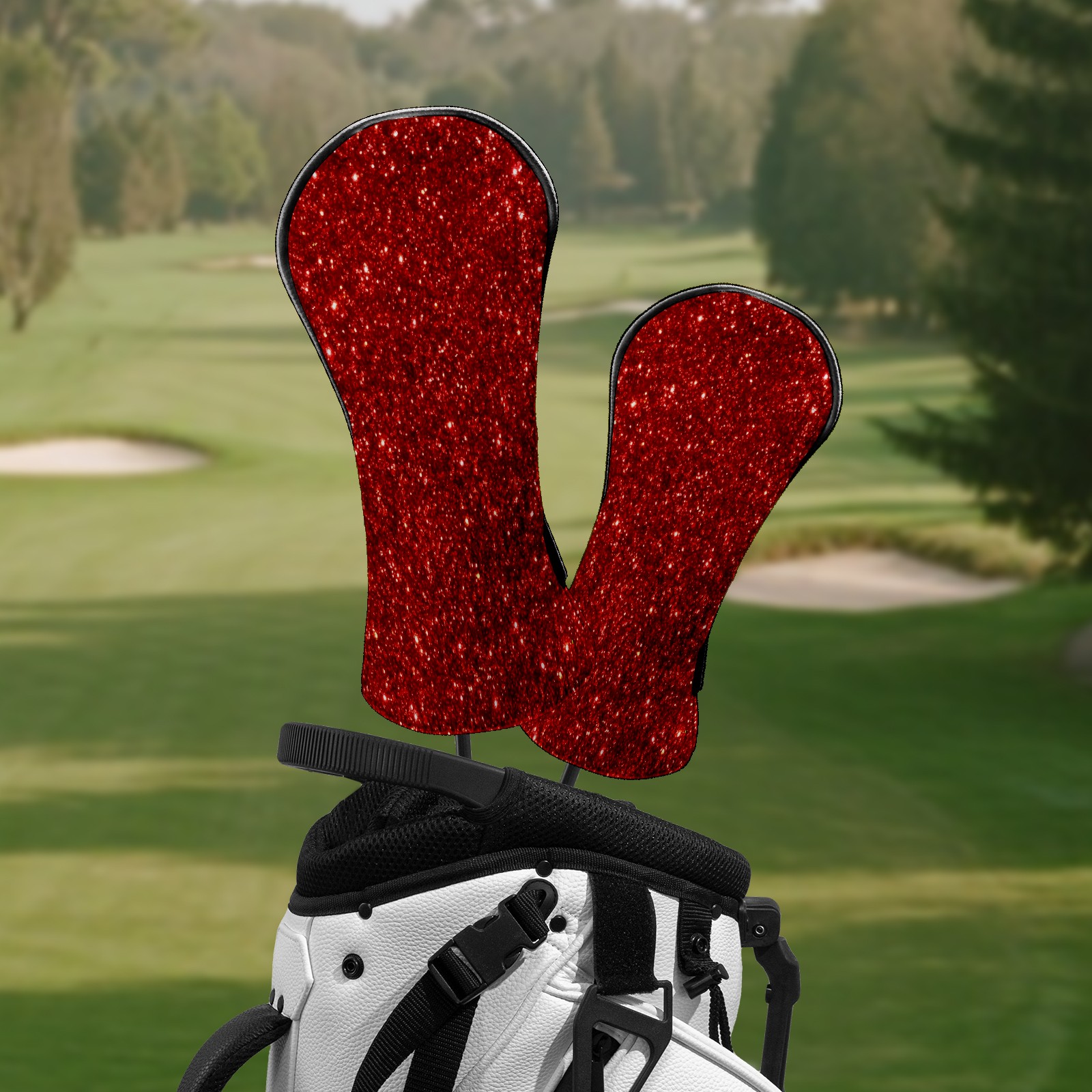 Counullo Golf Club Headcovers - Brilliant Glitter Red Premium PU Leather with Plush Lining for Driver & Fairway Woods, No-Slip Fit for All Clubs, Novelty Gift for Men & Women