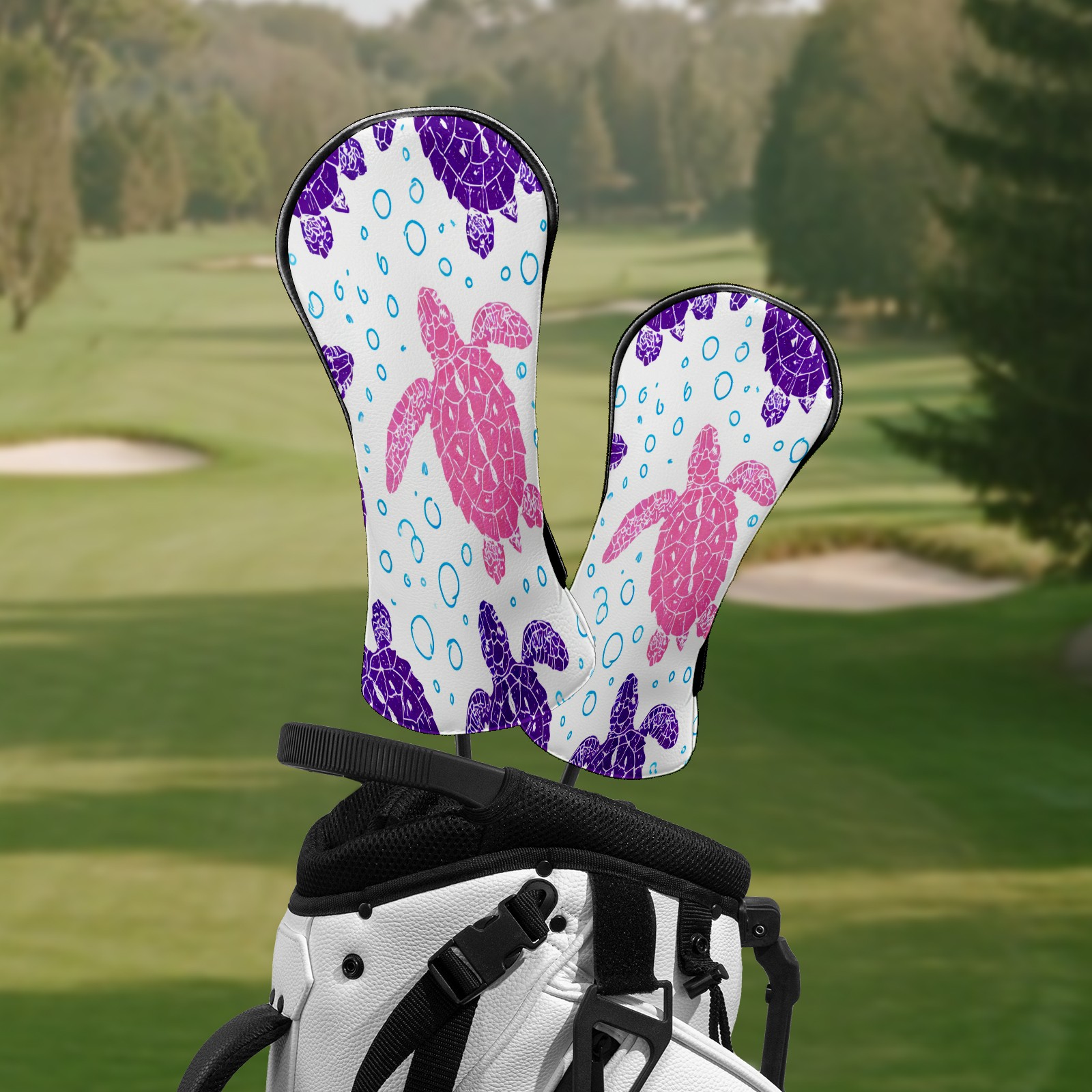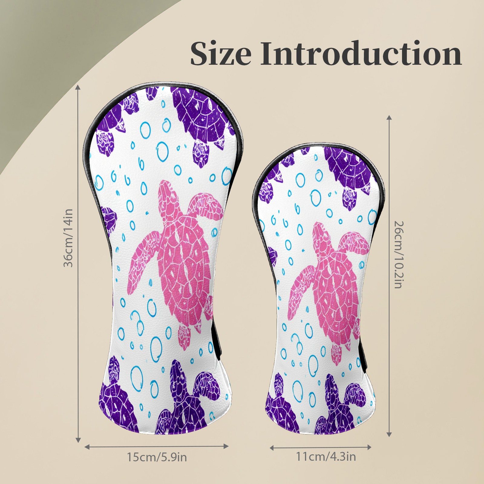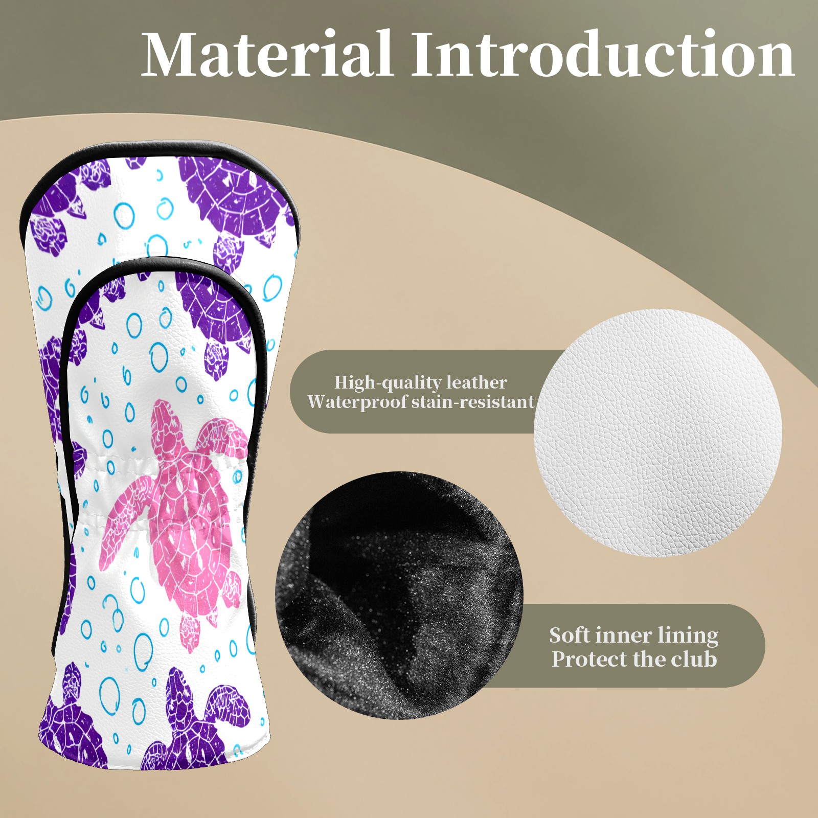 Counullo Golf Club Headcovers - Dreamy Turtle Purple Premium PU Leather with Plush Lining for Driver & Fairway Woods, No-Slip Fit for All Clubs, Novelty Gift for Men & Women