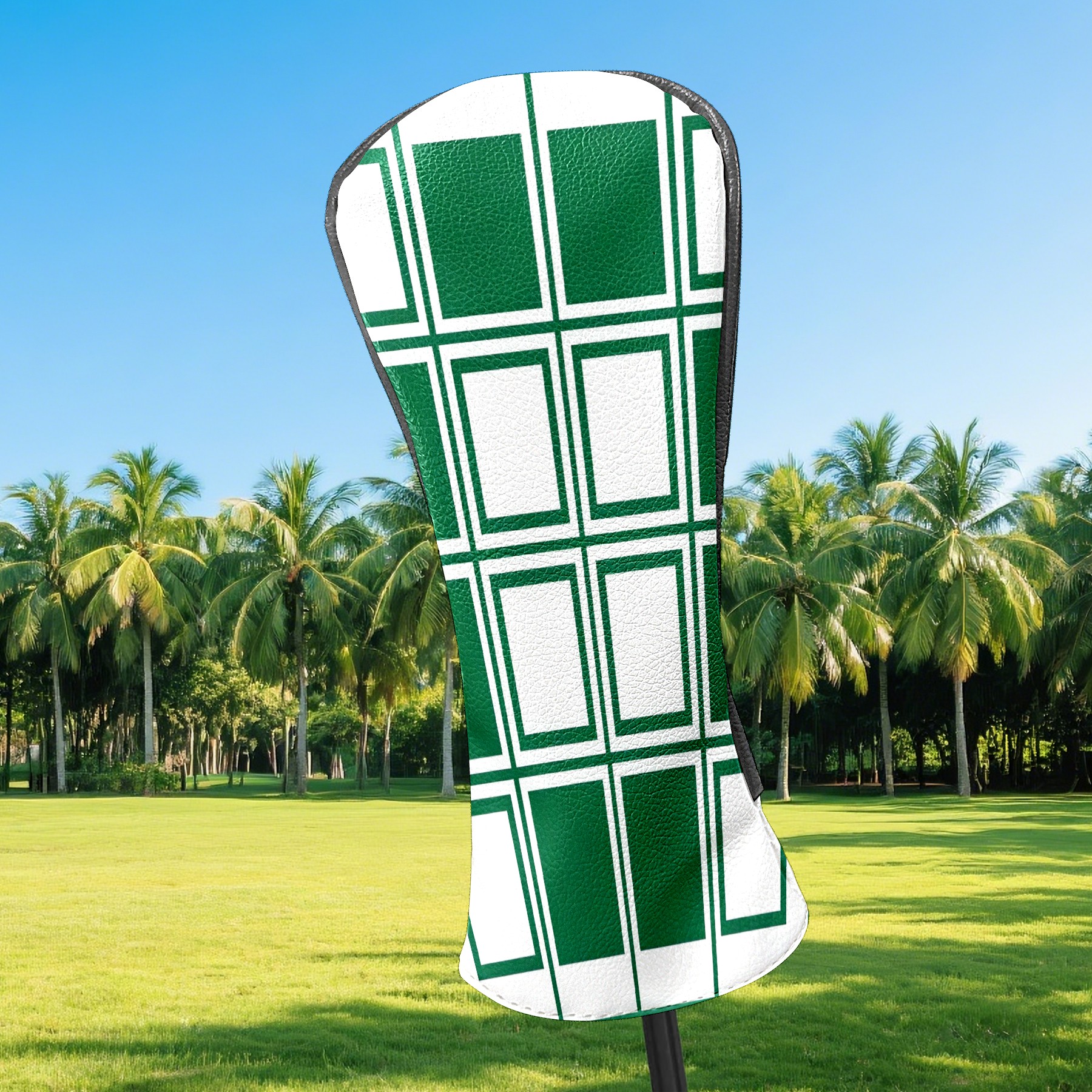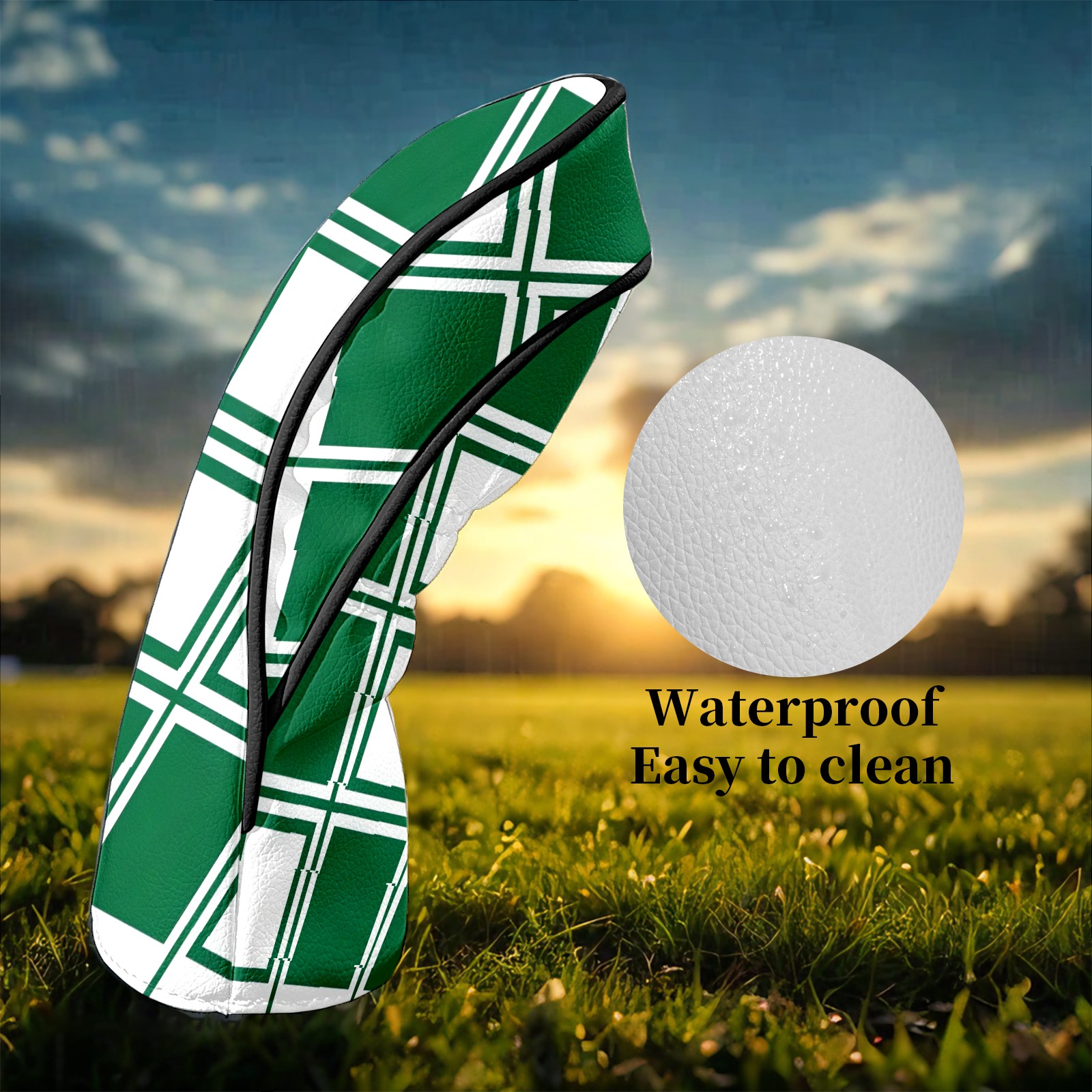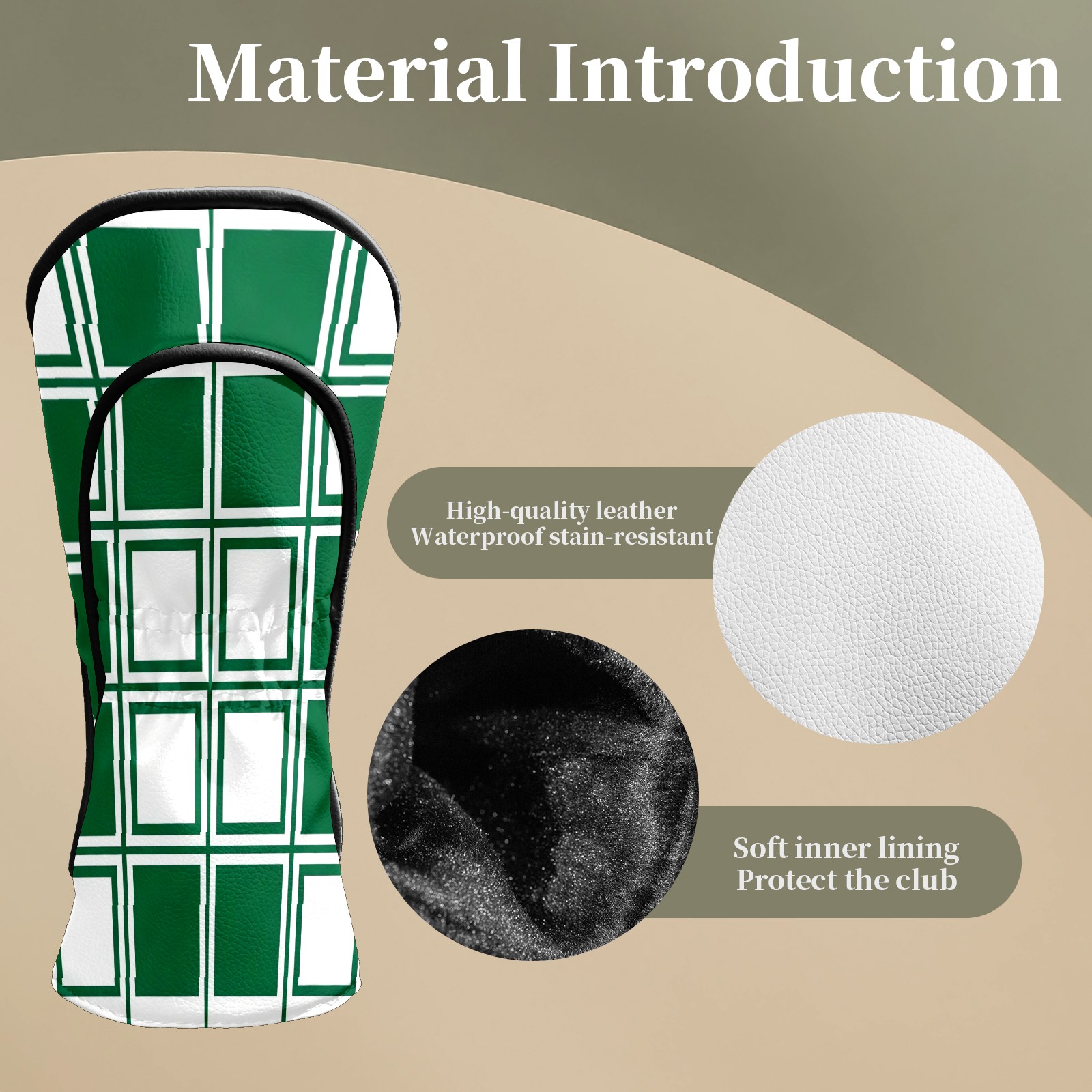 Counullo Golf Club Headcovers - Simple Geometry Green Premium PU Leather with Plush Lining for Driver & Fairway Woods, No-Slip Fit for All Clubs, Novelty Gift for Men & Women