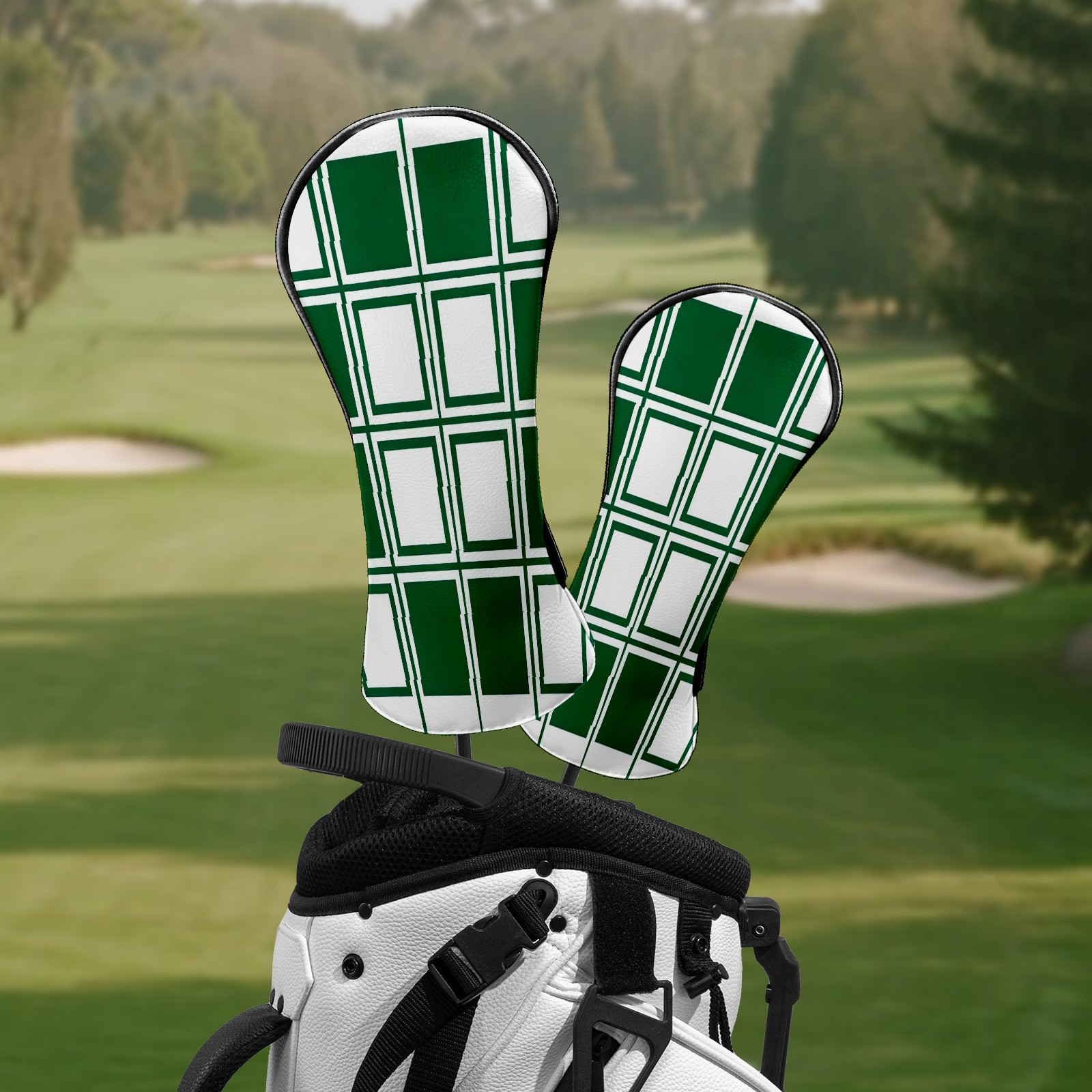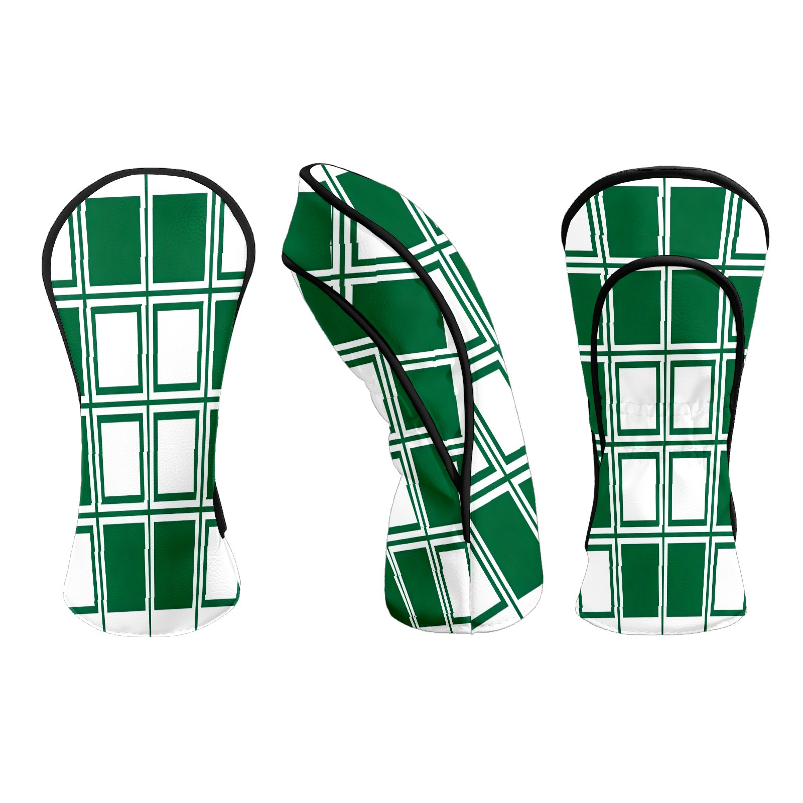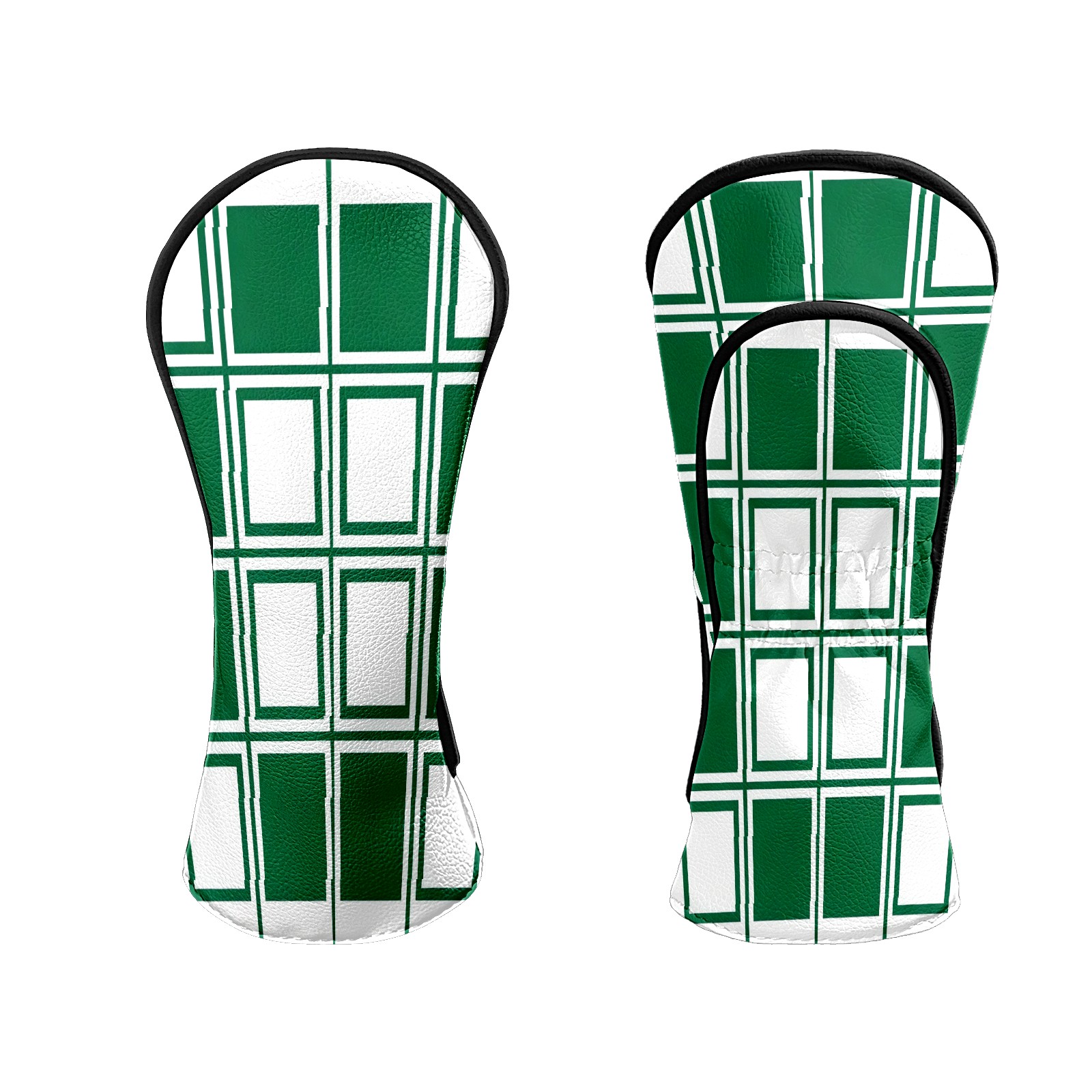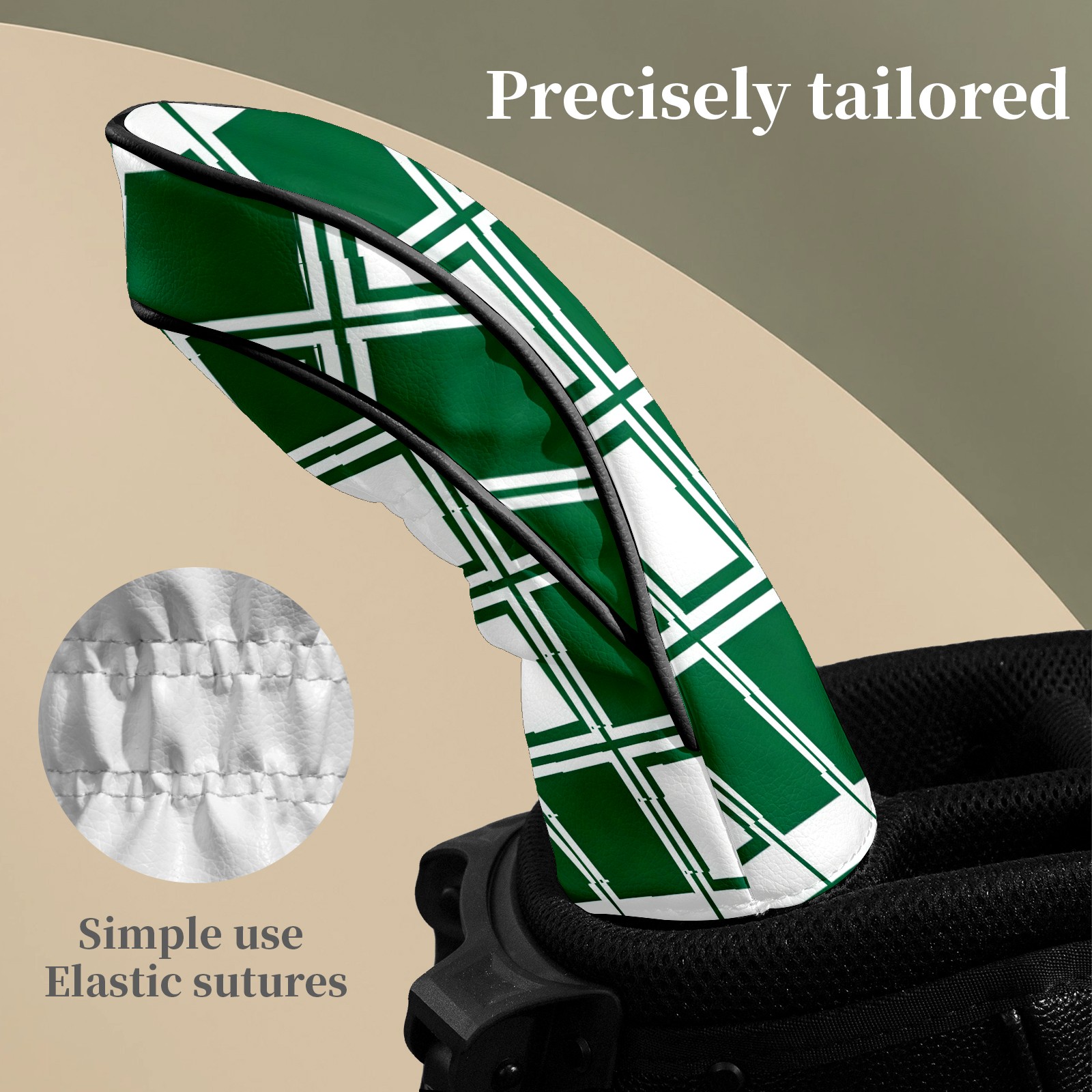 Counullo Golf Club Headcovers - Simple Geometry Green Premium PU Leather with Plush Lining for Driver & Fairway Woods, No-Slip Fit for All Clubs, Novelty Gift for Men & Women