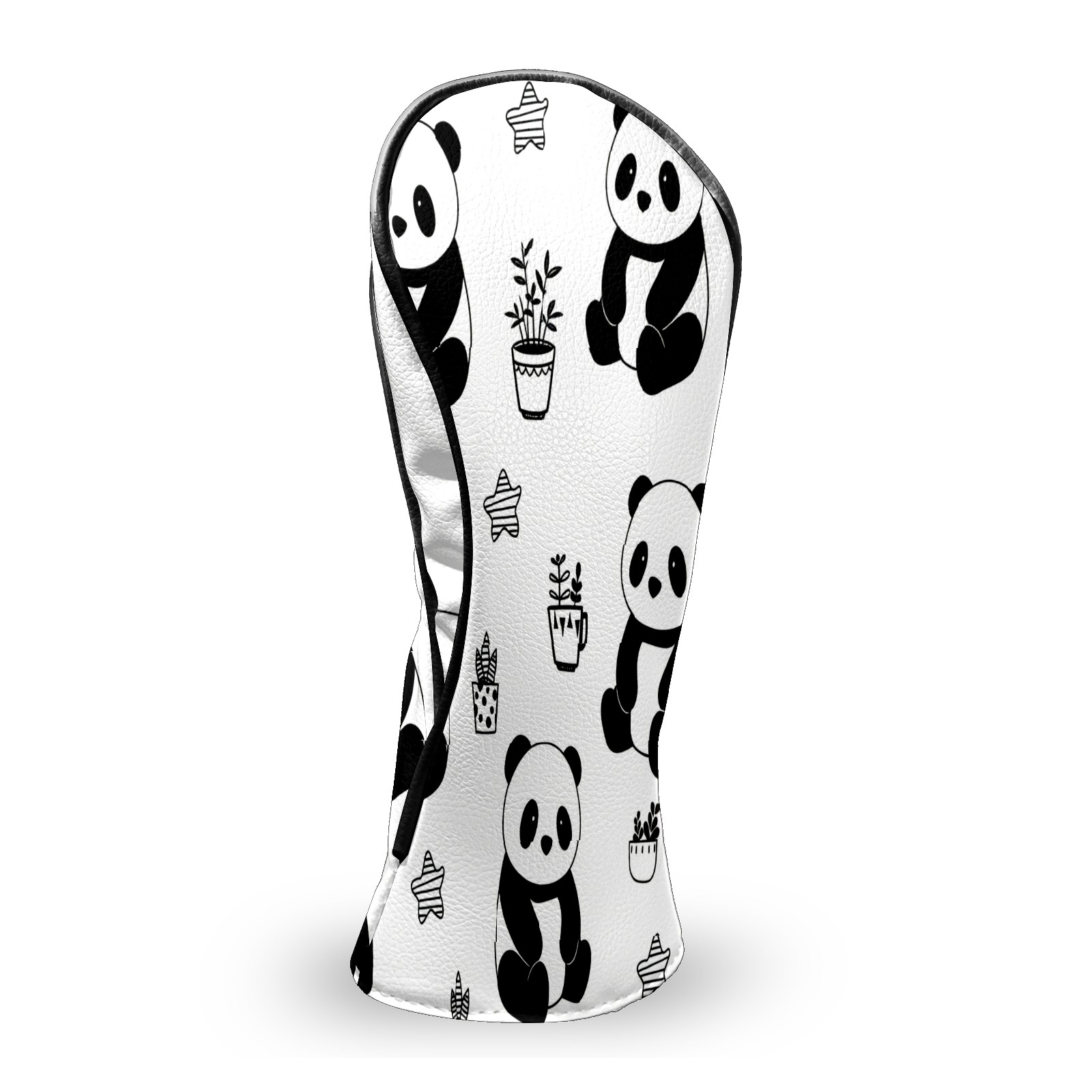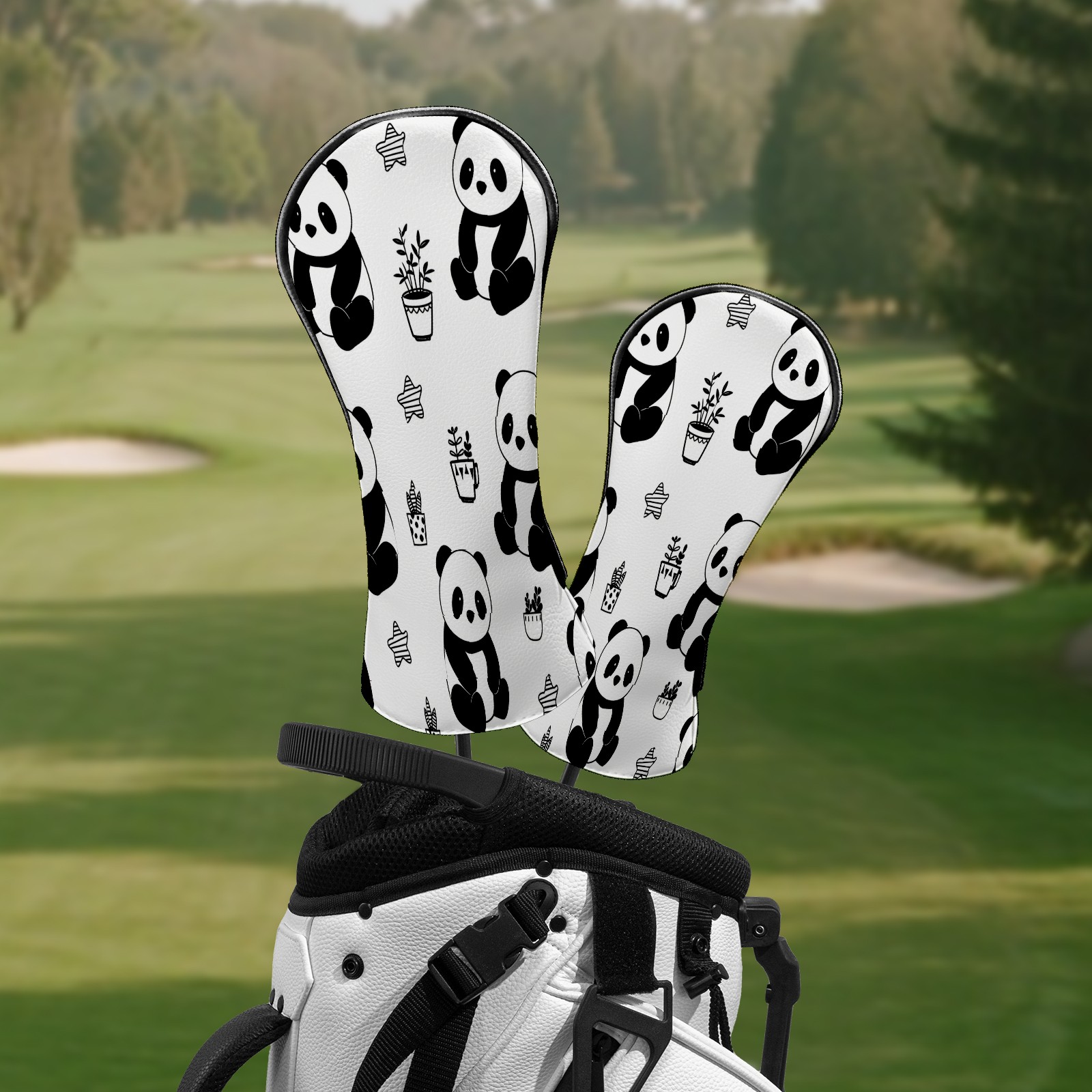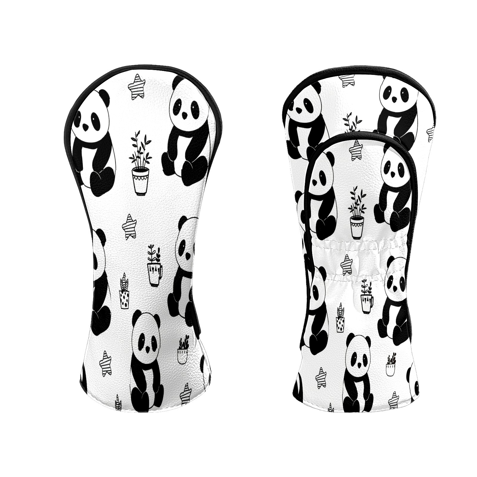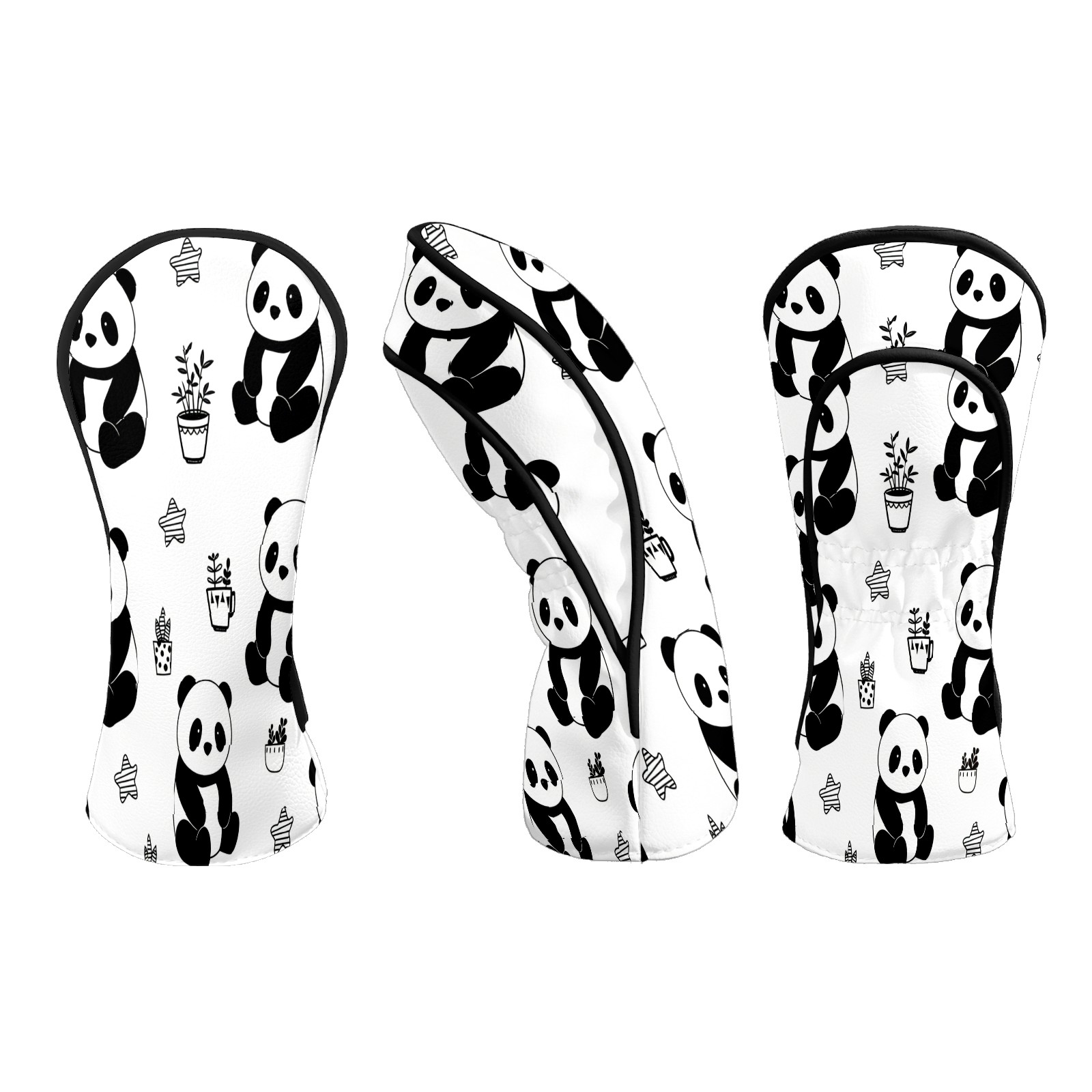 Counullo Golf Club Headcovers - Playful Panda Black Premium PU Leather with Plush Lining for Driver & Fairway Woods, No-Slip Fit for All Clubs, Novelty Gift for Men & Women