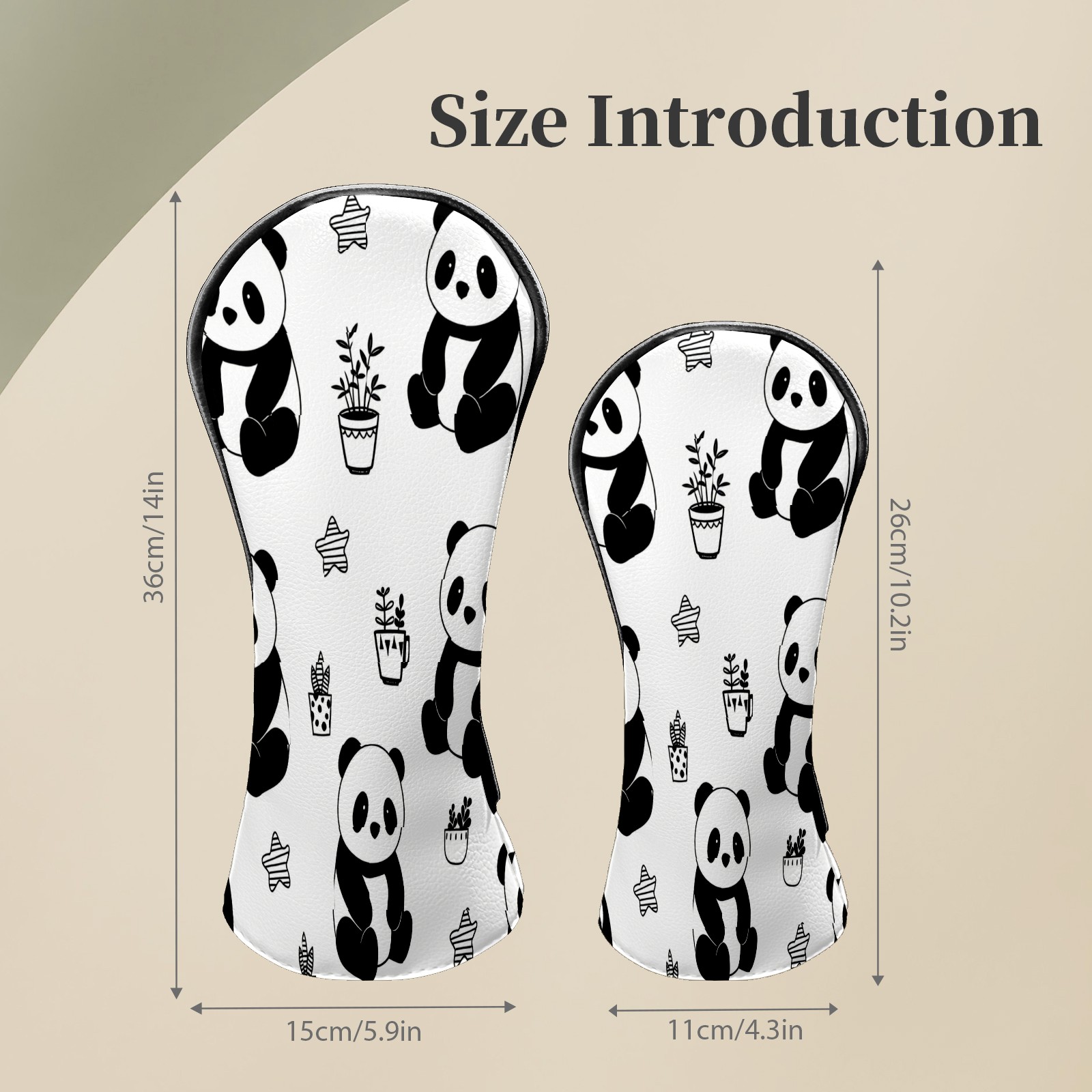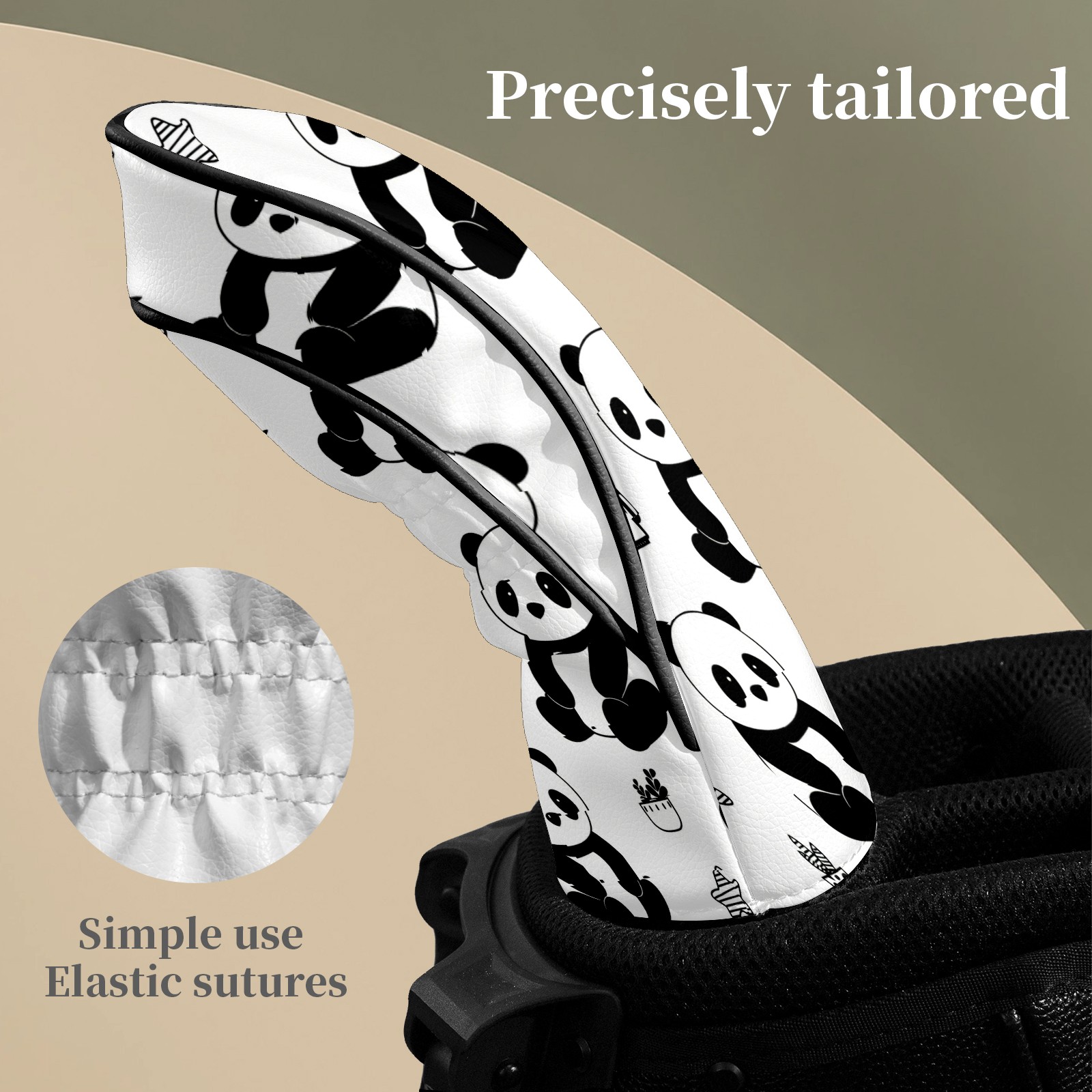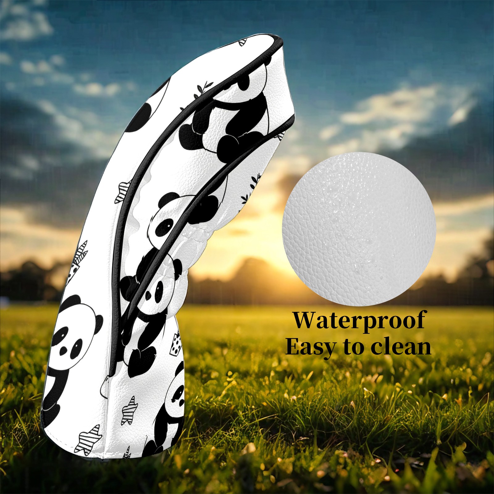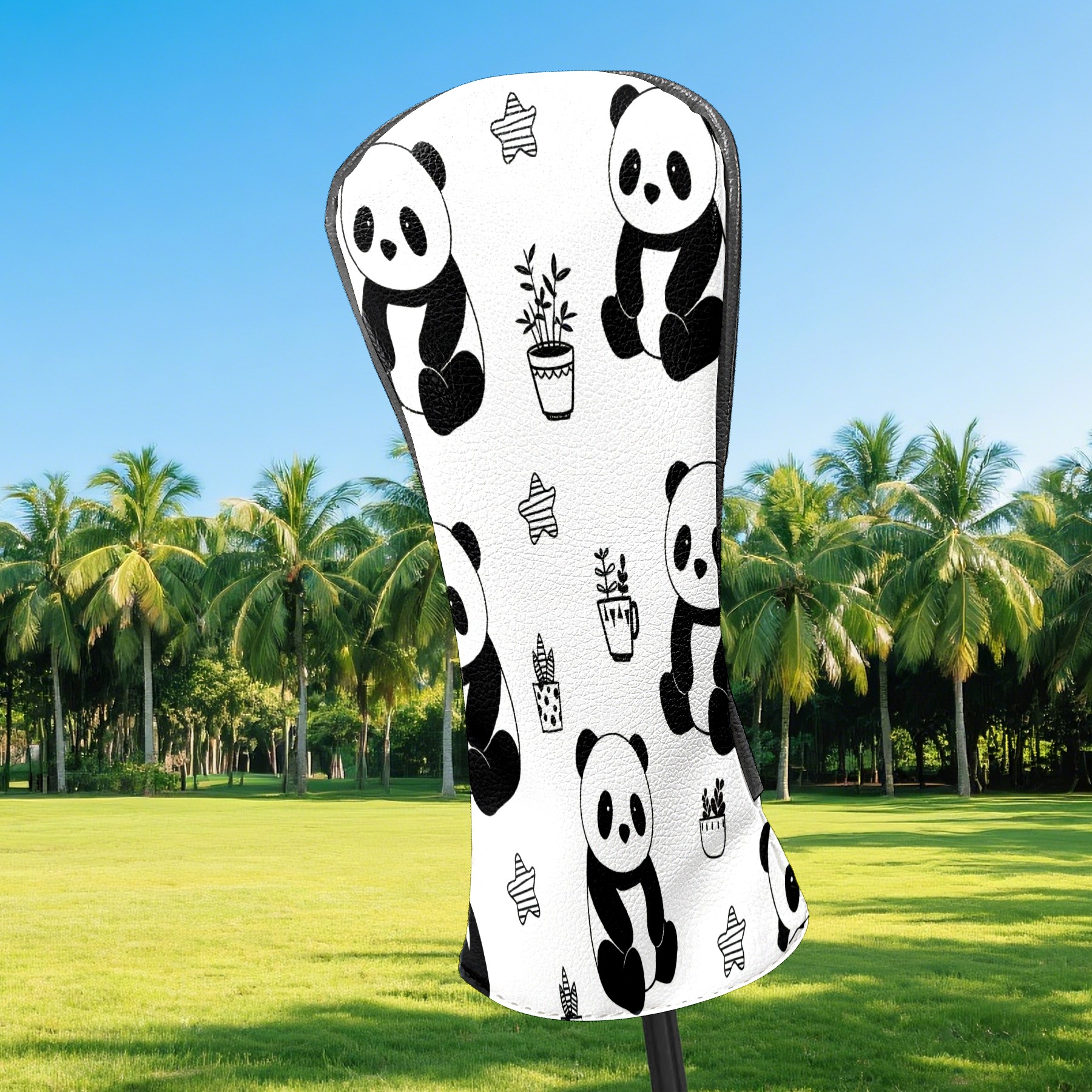 Counullo Golf Club Headcovers - Playful Panda Black Premium PU Leather with Plush Lining for Driver & Fairway Woods, No-Slip Fit for All Clubs, Novelty Gift for Men & Women