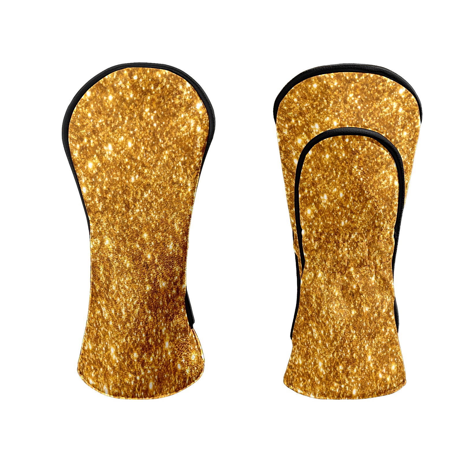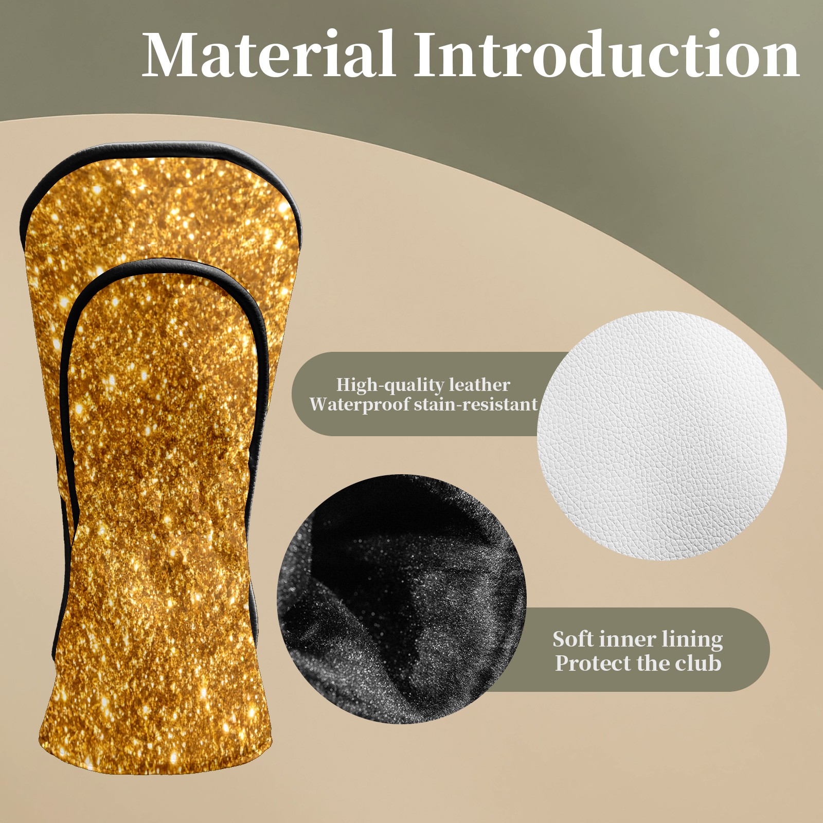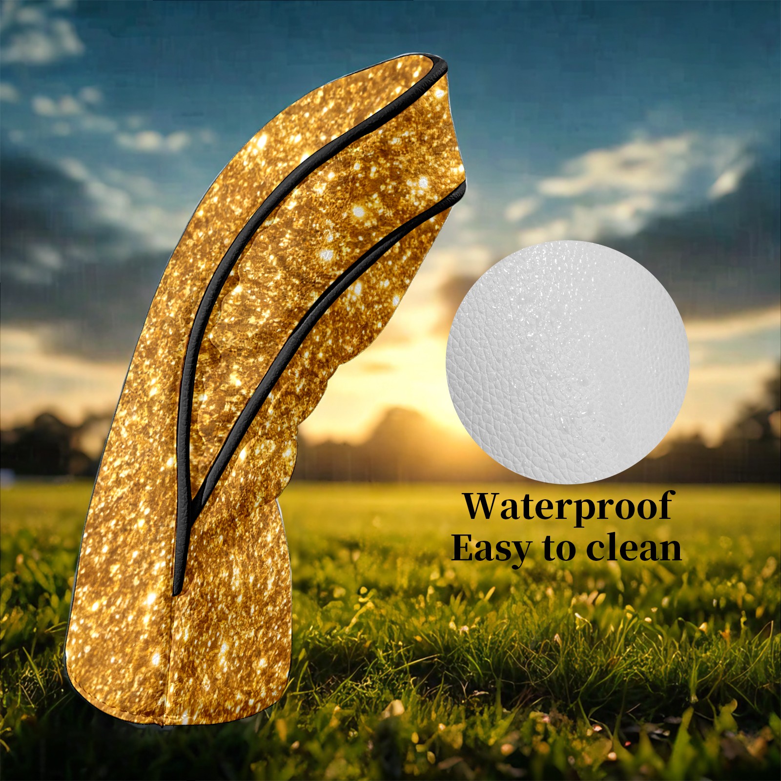 Counullo Golf Club Headcovers - Brilliant Glitter Gold Premium PU Leather with Plush Lining for Driver & Fairway Woods, No-Slip Fit for All Clubs, Novelty Gift for Men & Women