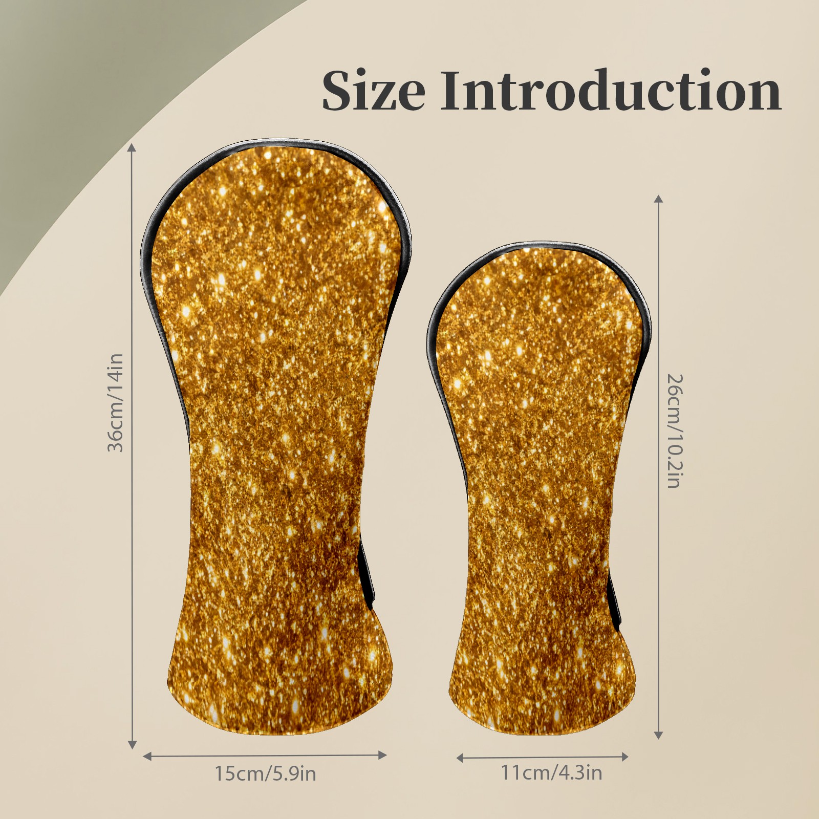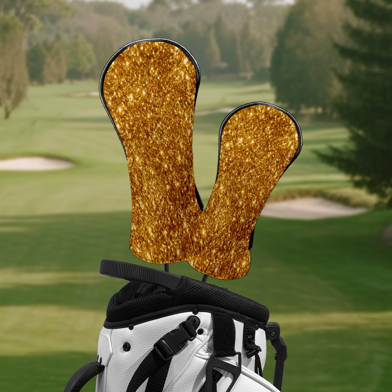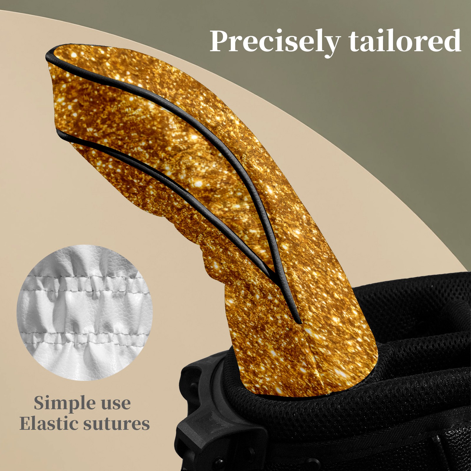 Counullo Golf Club Headcovers - Brilliant Glitter Gold Premium PU Leather with Plush Lining for Driver & Fairway Woods, No-Slip Fit for All Clubs, Novelty Gift for Men & Women