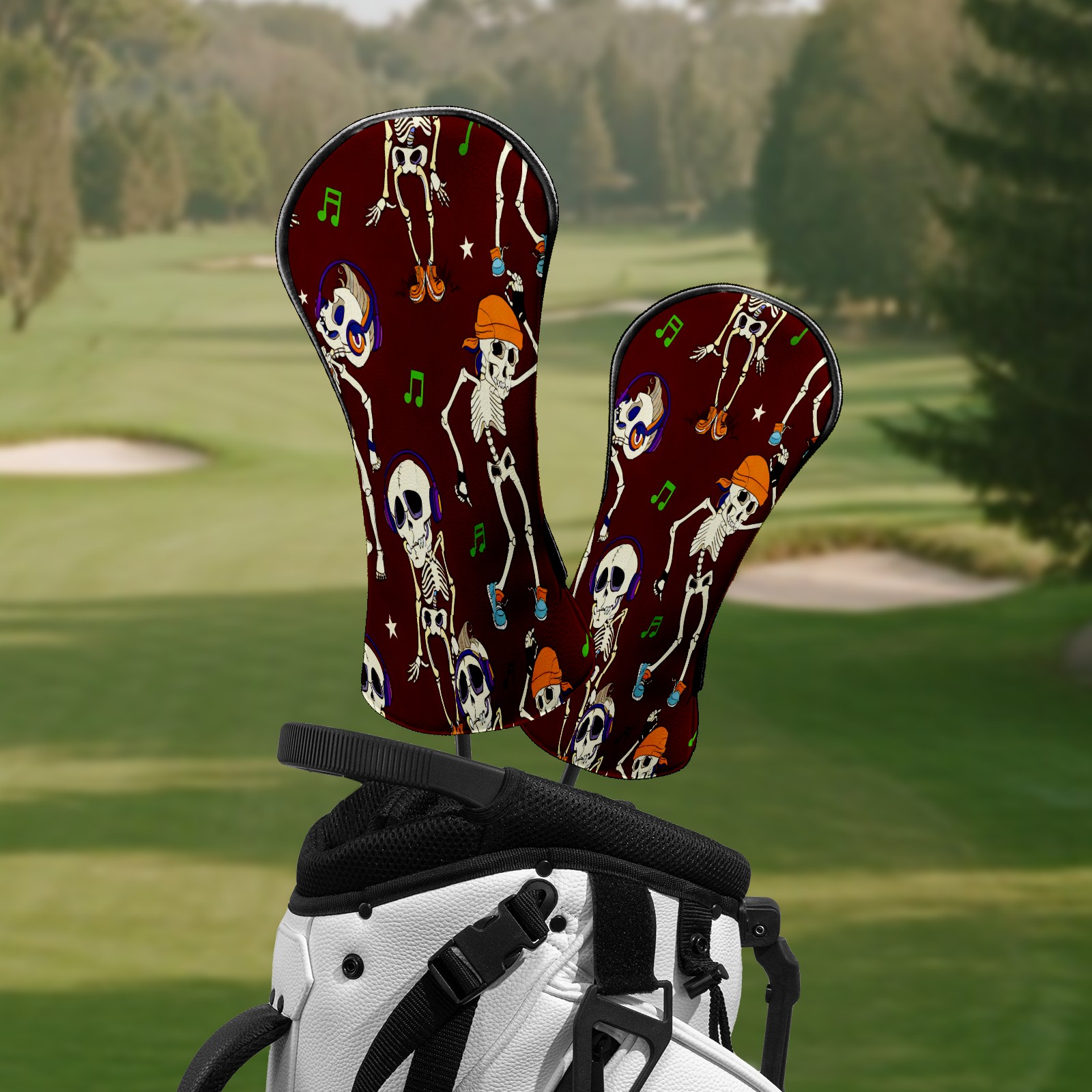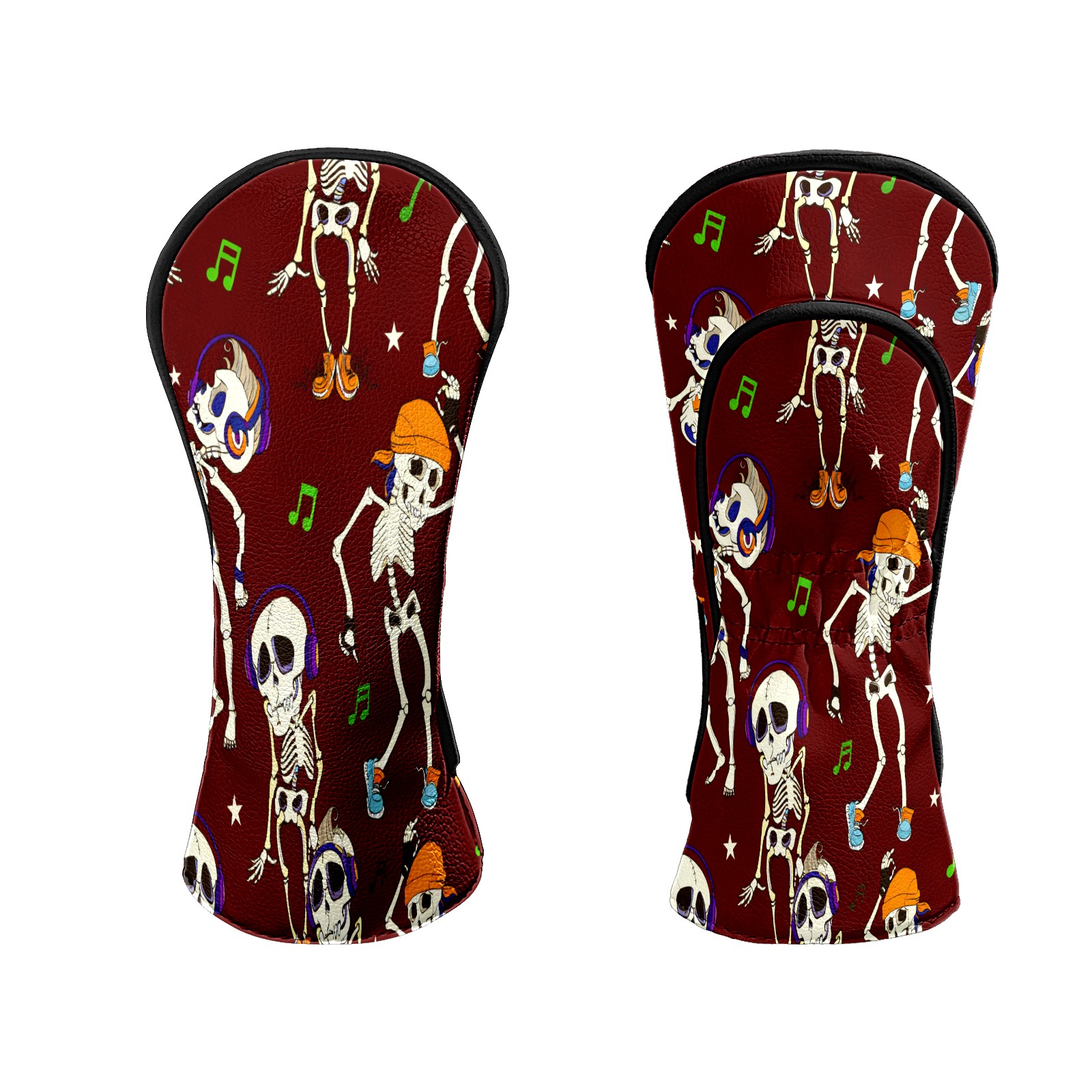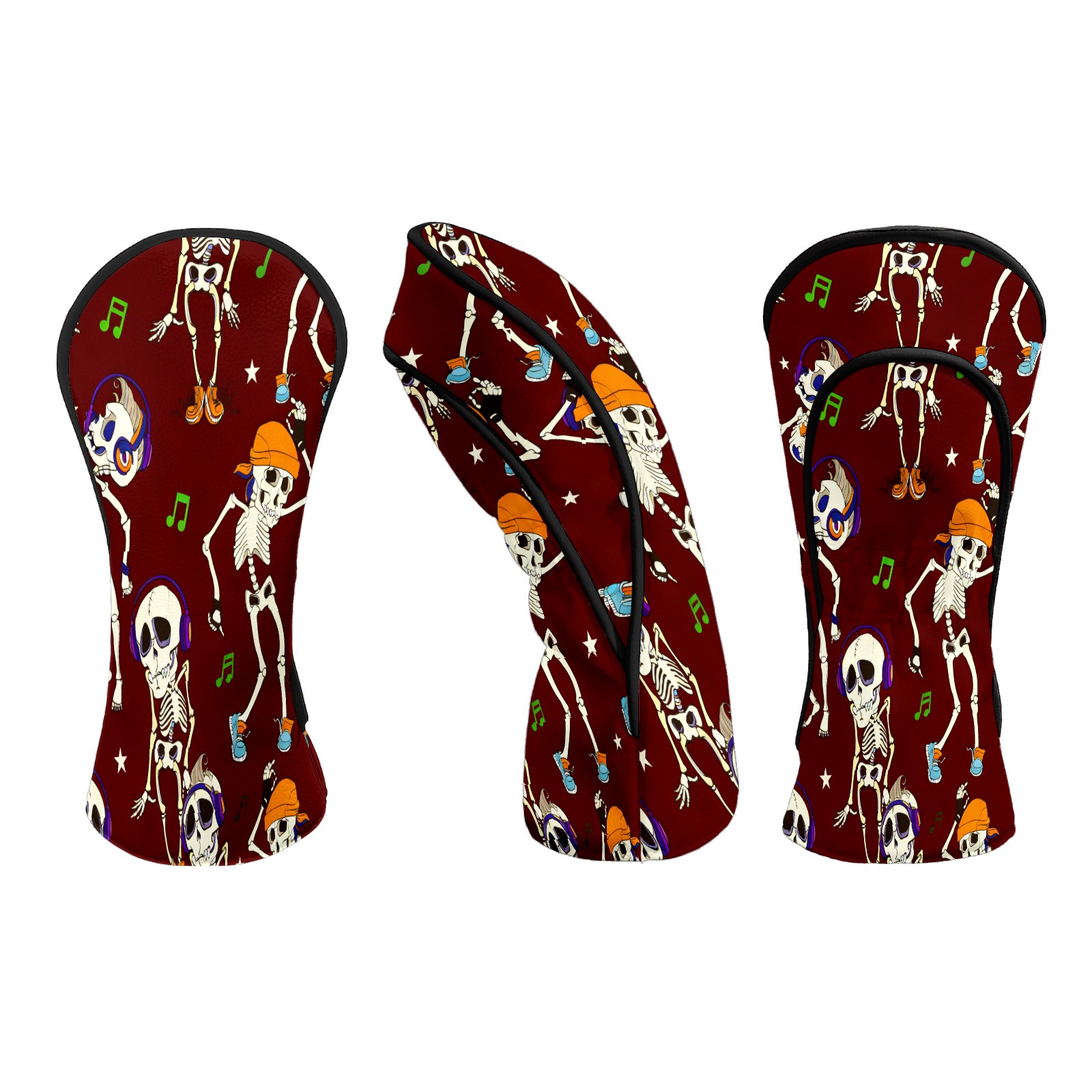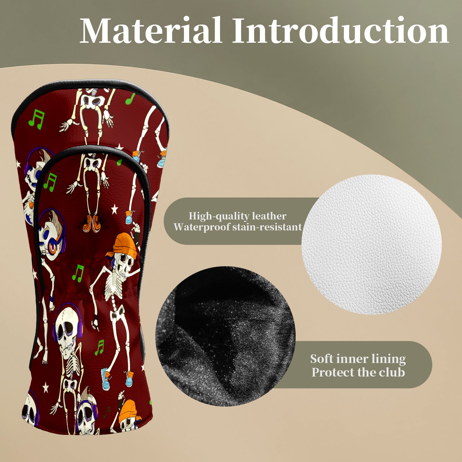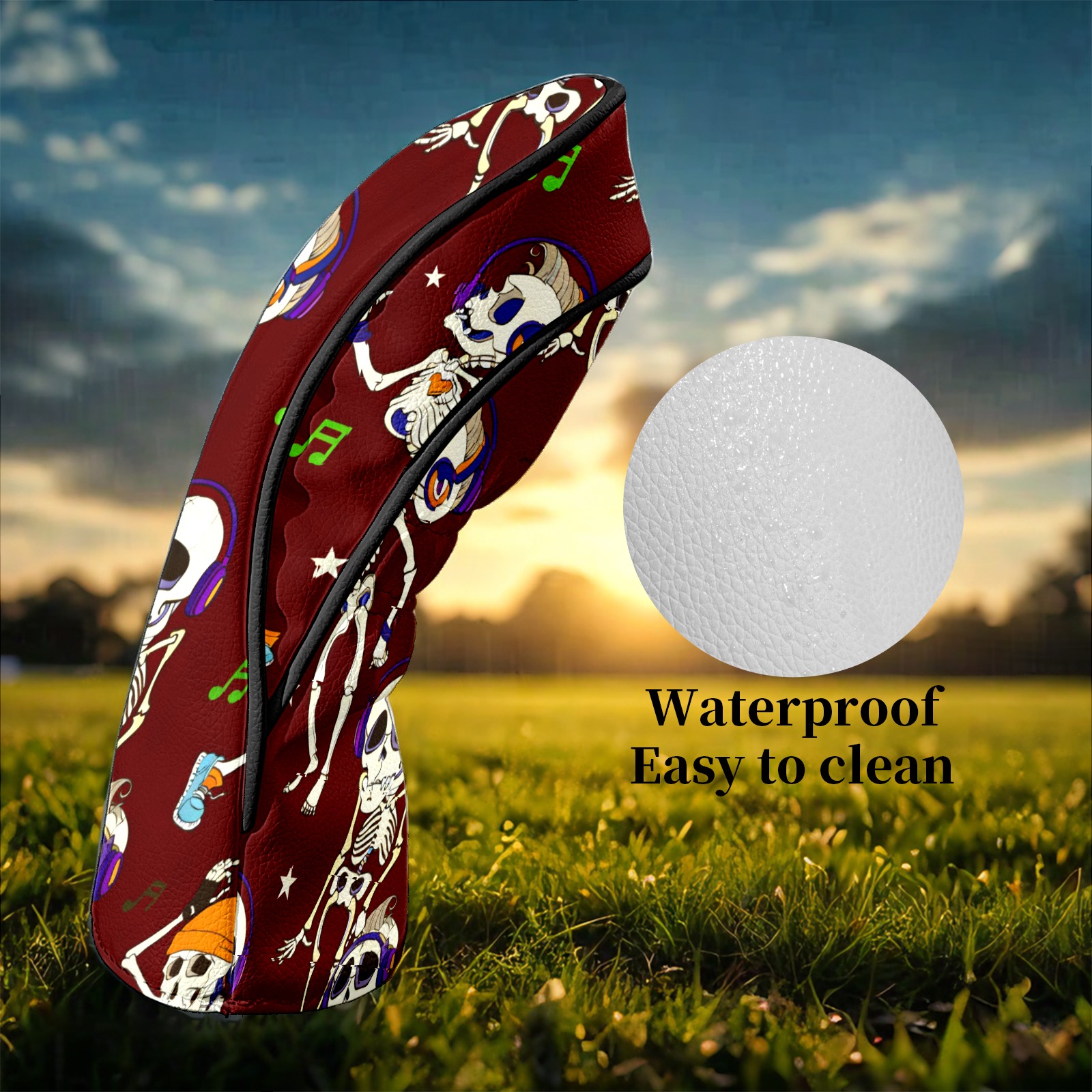 Counullo Golf Club Headcovers - Funny Skull Red Premium PU Leather with Plush Lining for Driver & Fairway Woods, No-Slip Fit for All Clubs, Novelty Gift for Men & Women