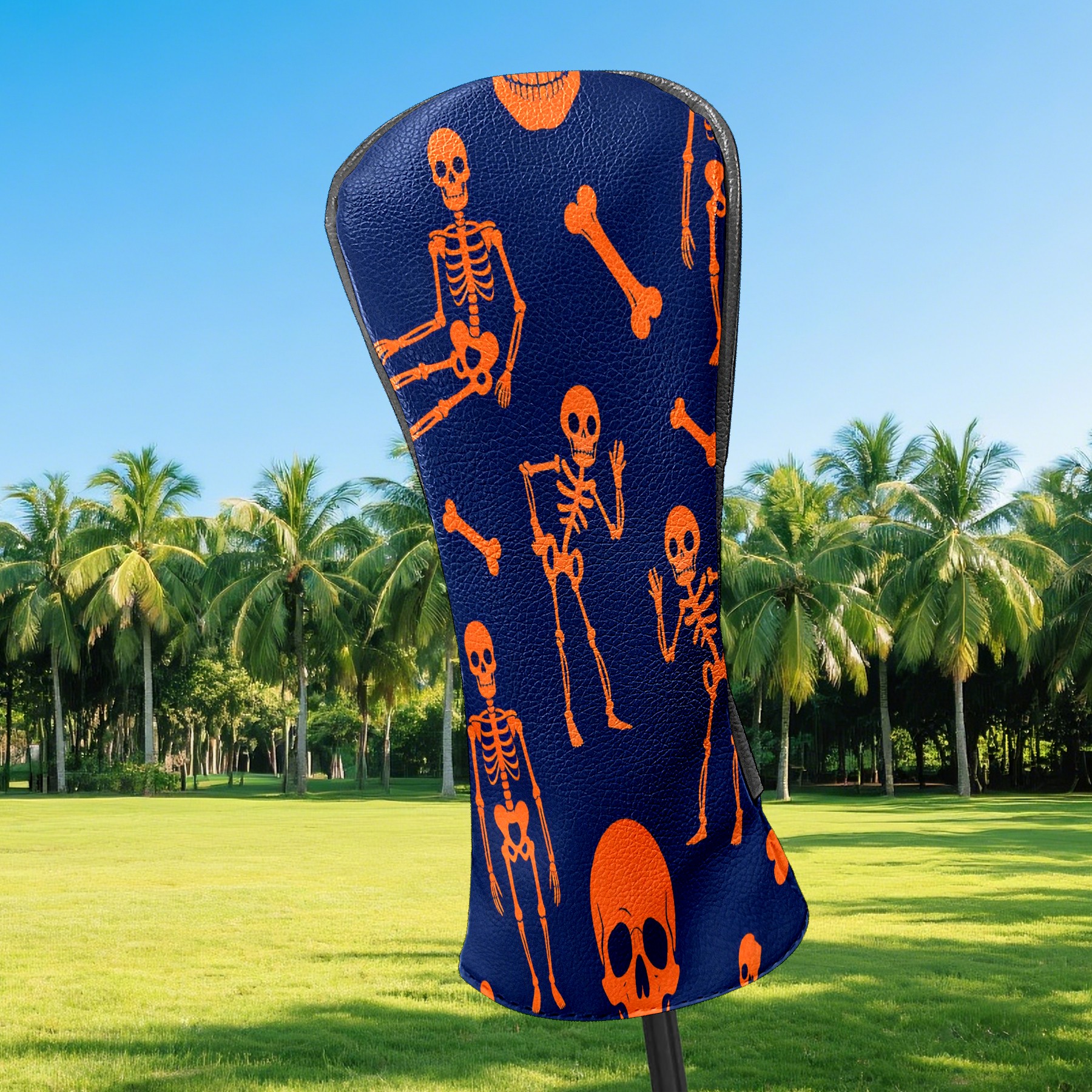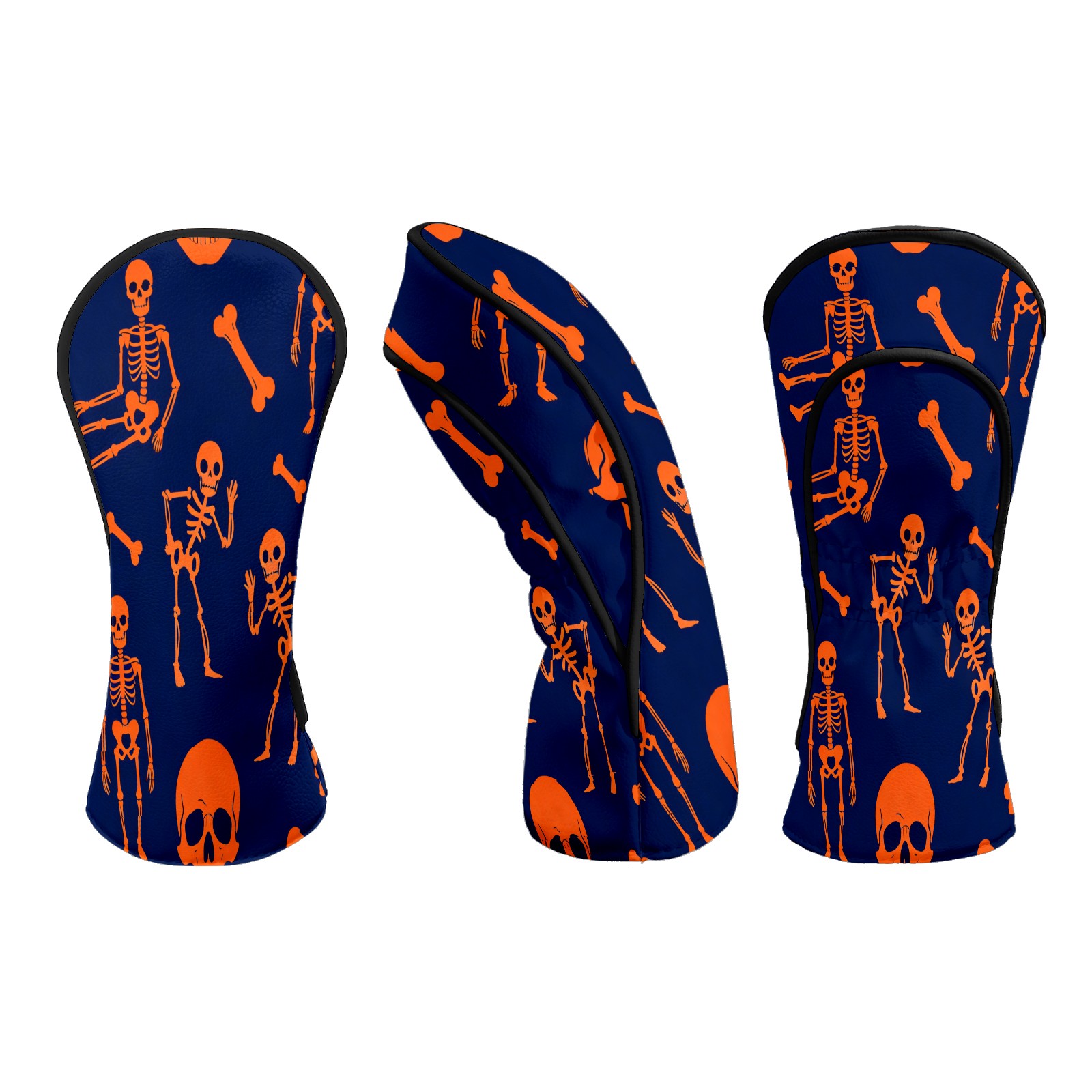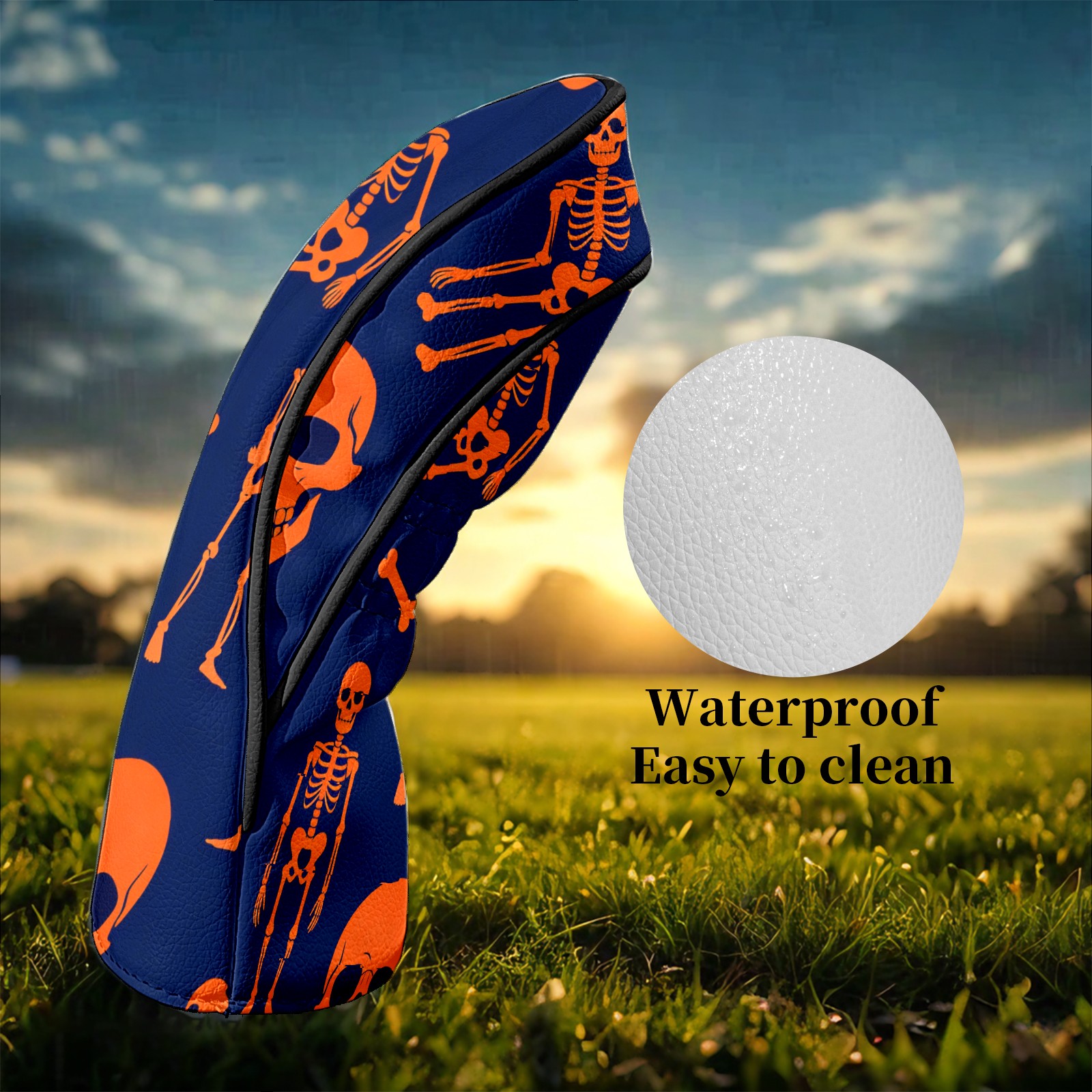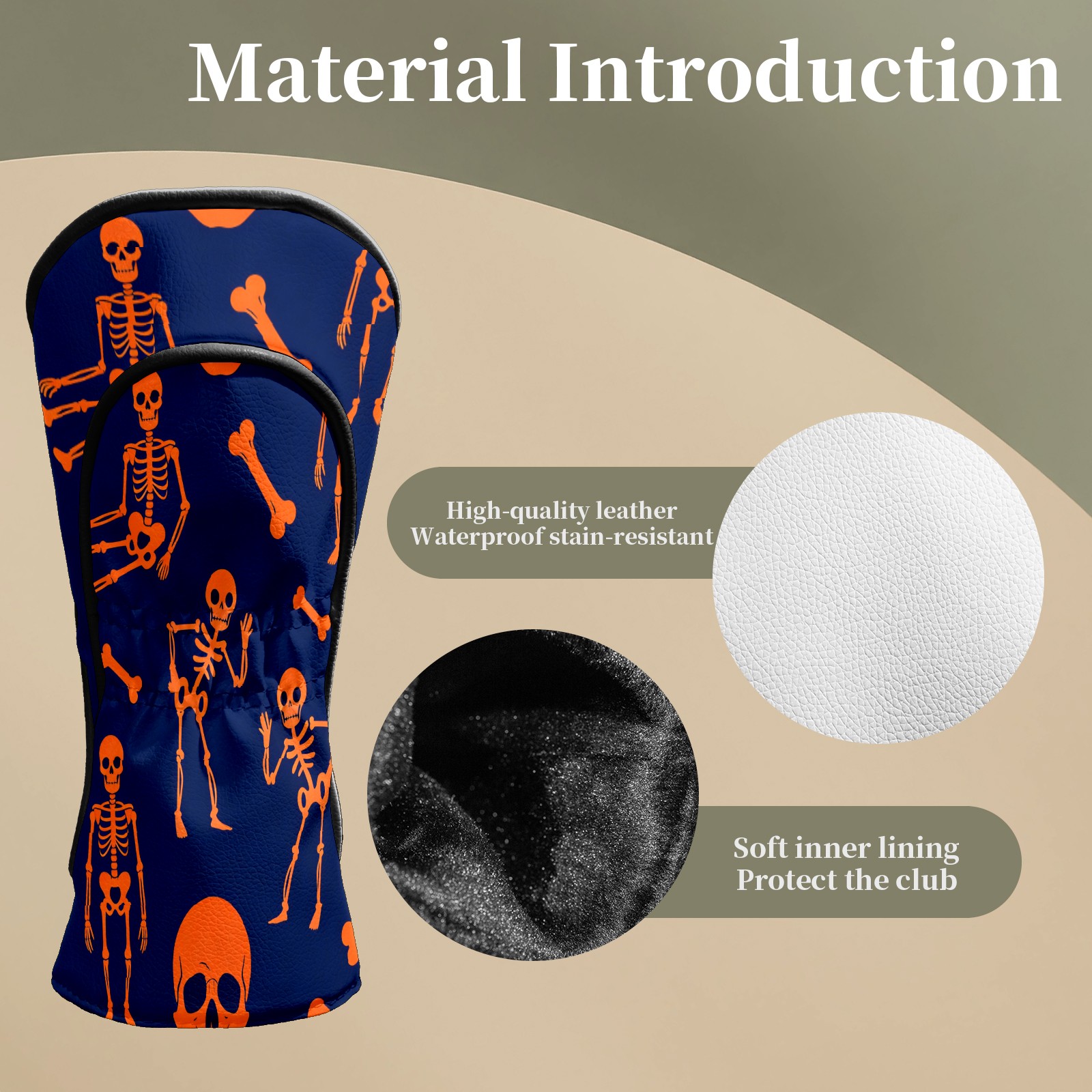 Counullo Golf Club Headcovers - Vintage Skull Blue Premium PU Leather with Plush Lining for Driver & Fairway Woods, No-Slip Fit for All Clubs, Novelty Gift for Men & Women