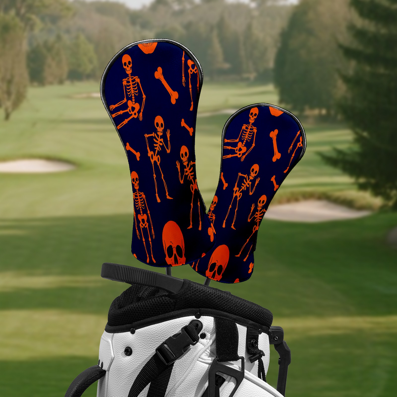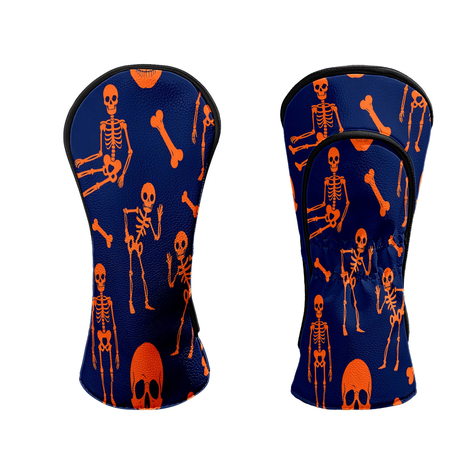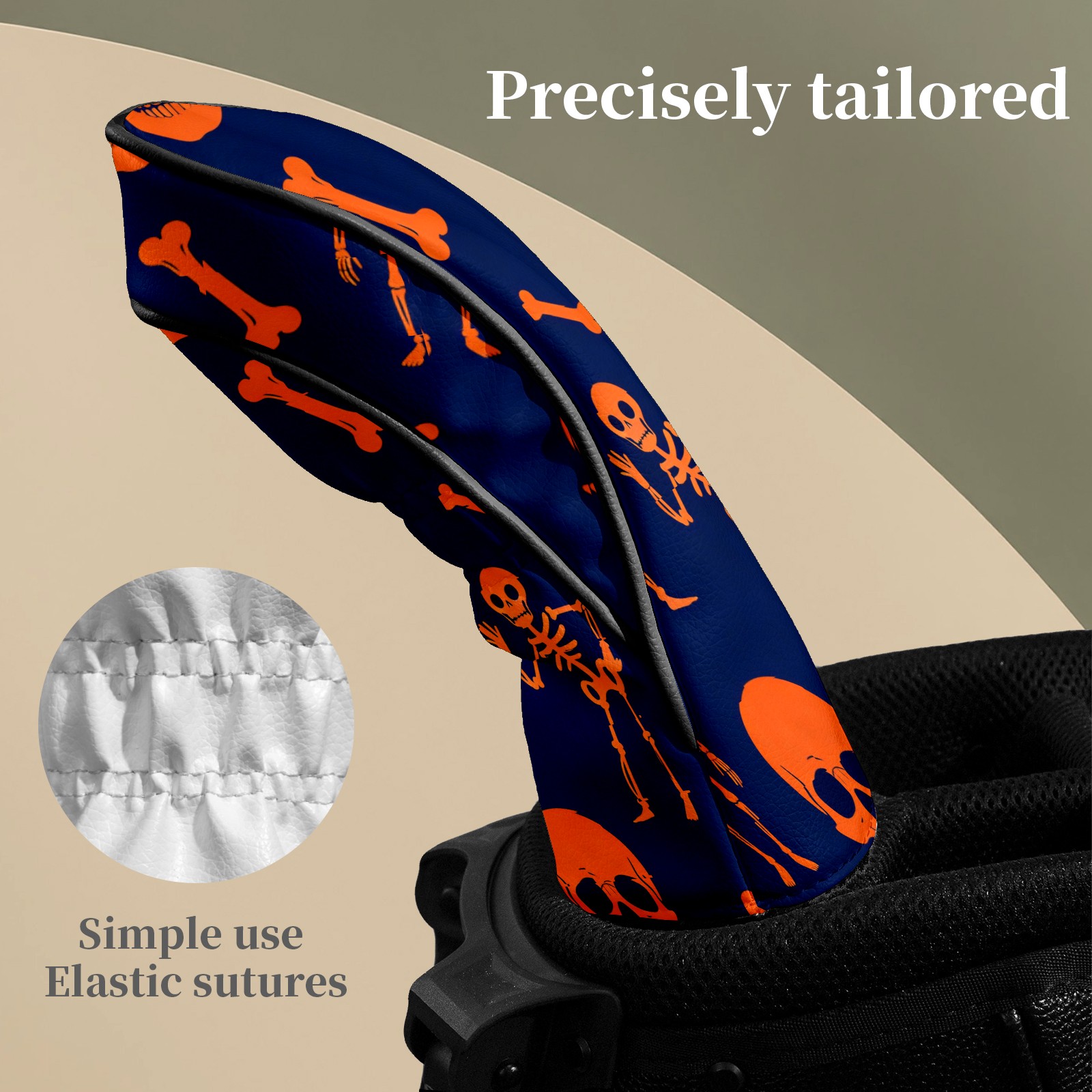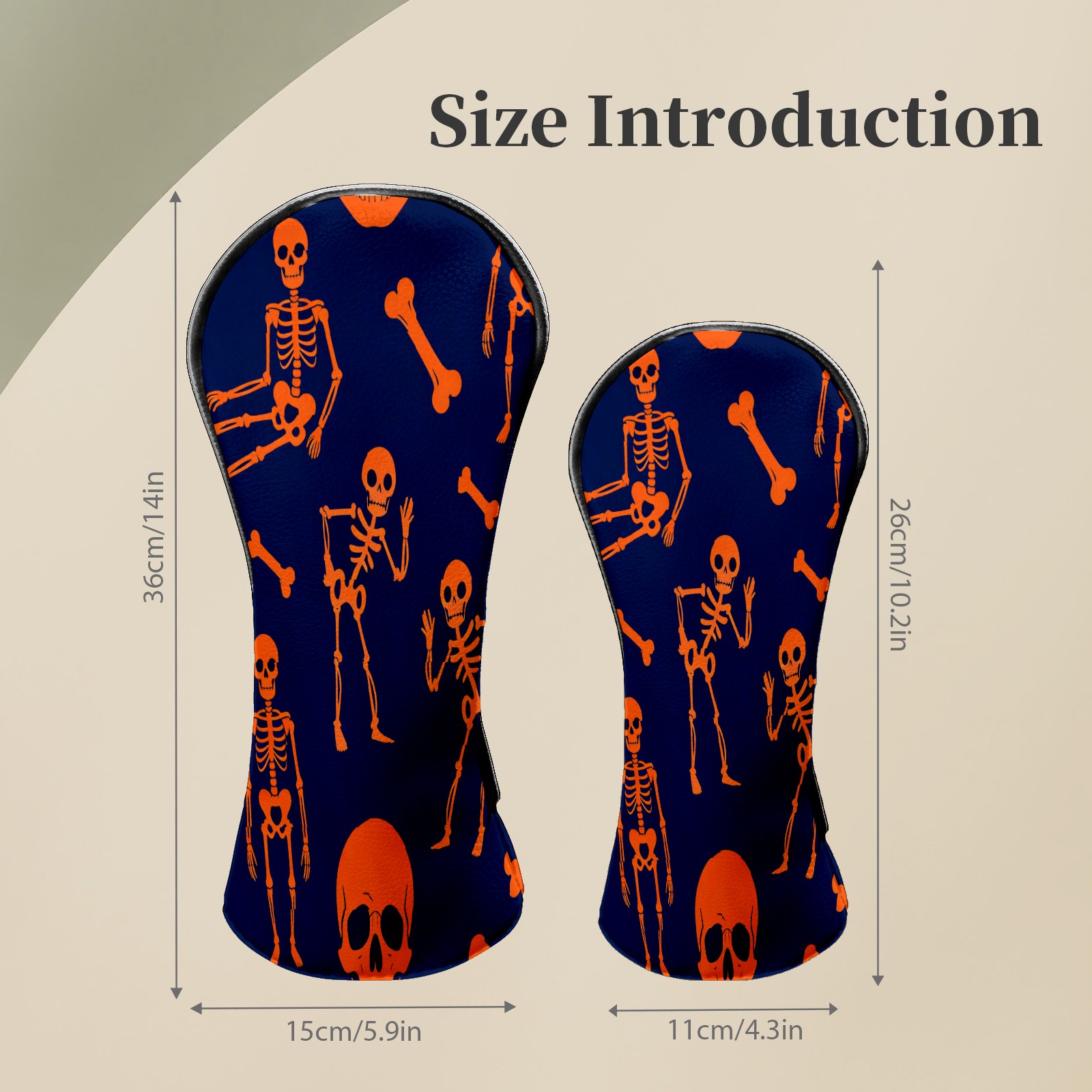 Counullo Golf Club Headcovers - Vintage Skull Blue Premium PU Leather with Plush Lining for Driver & Fairway Woods, No-Slip Fit for All Clubs, Novelty Gift for Men & Women