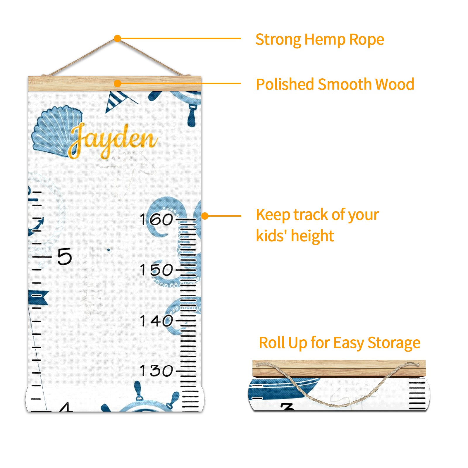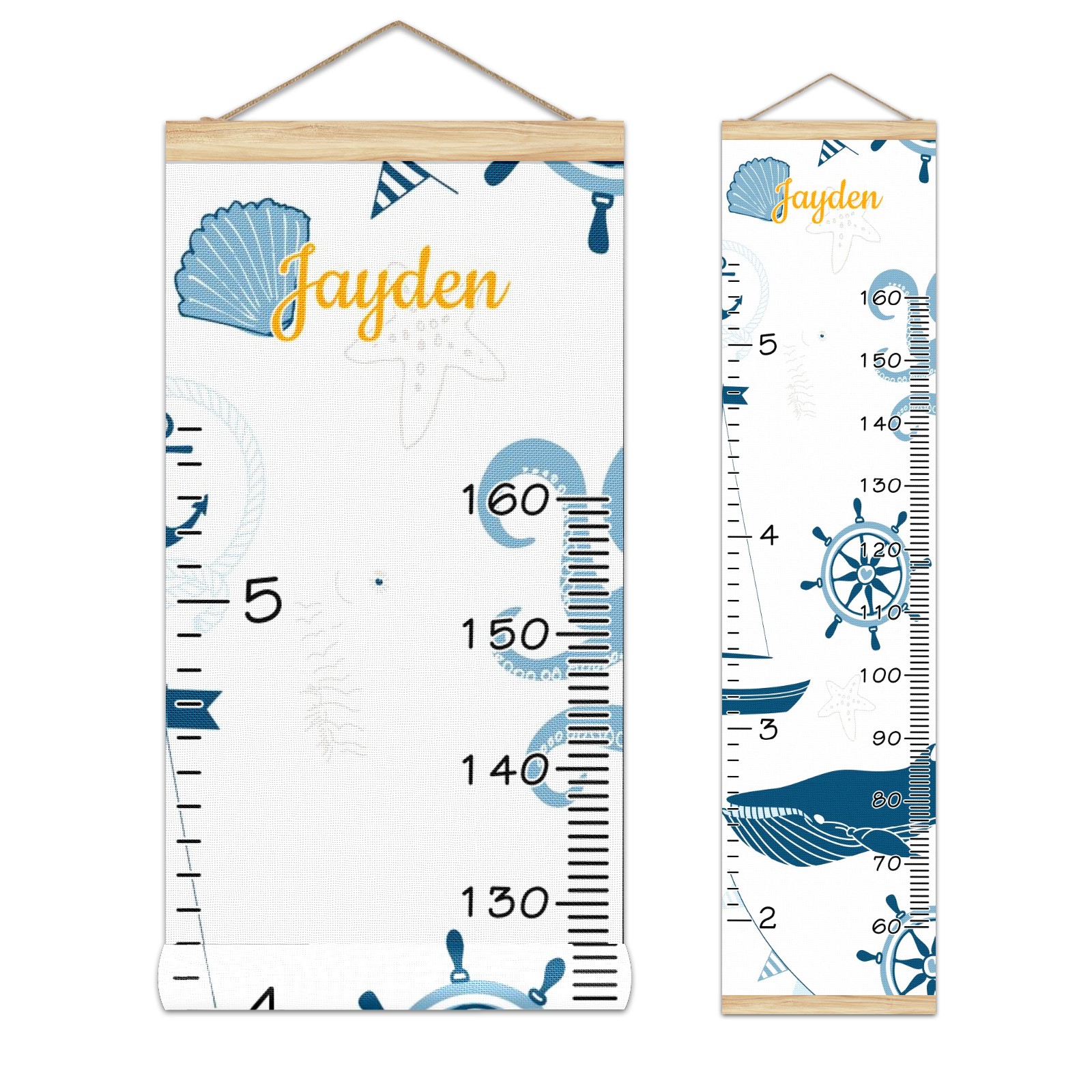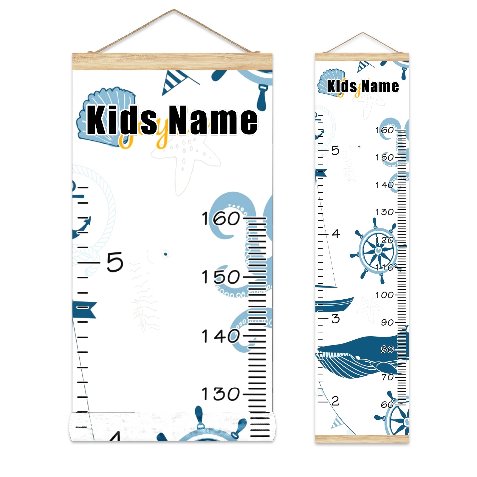 Personalized Kids Name Growth Chart Ruler for Wall Wood Frame Canvas Height Measure Chart 13.4x56 in Hanging Growth Chart Nautical Lighthouse Sailboat1.26 Boys Girls Room Decor