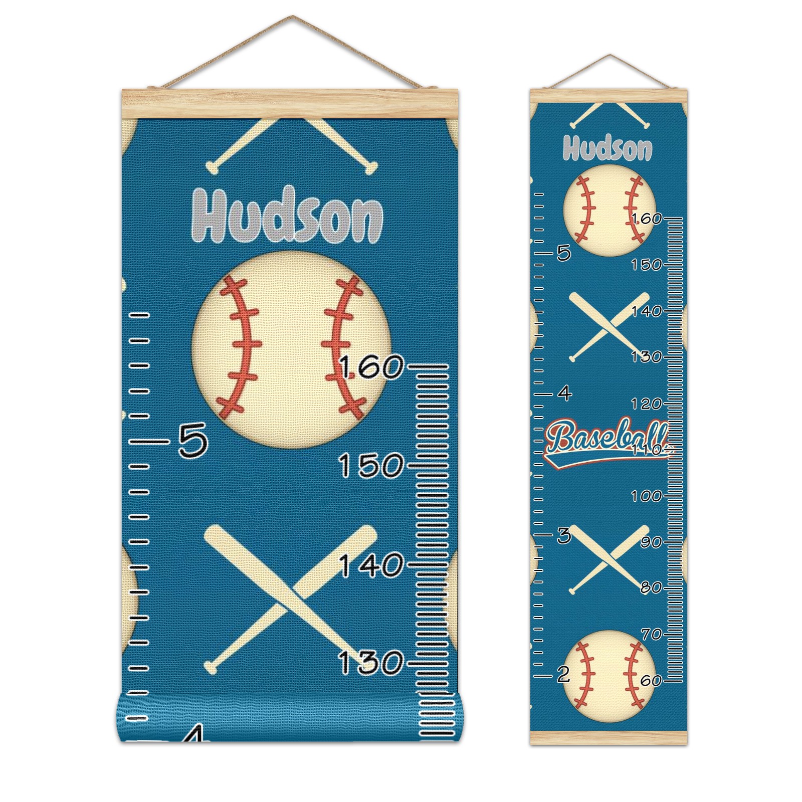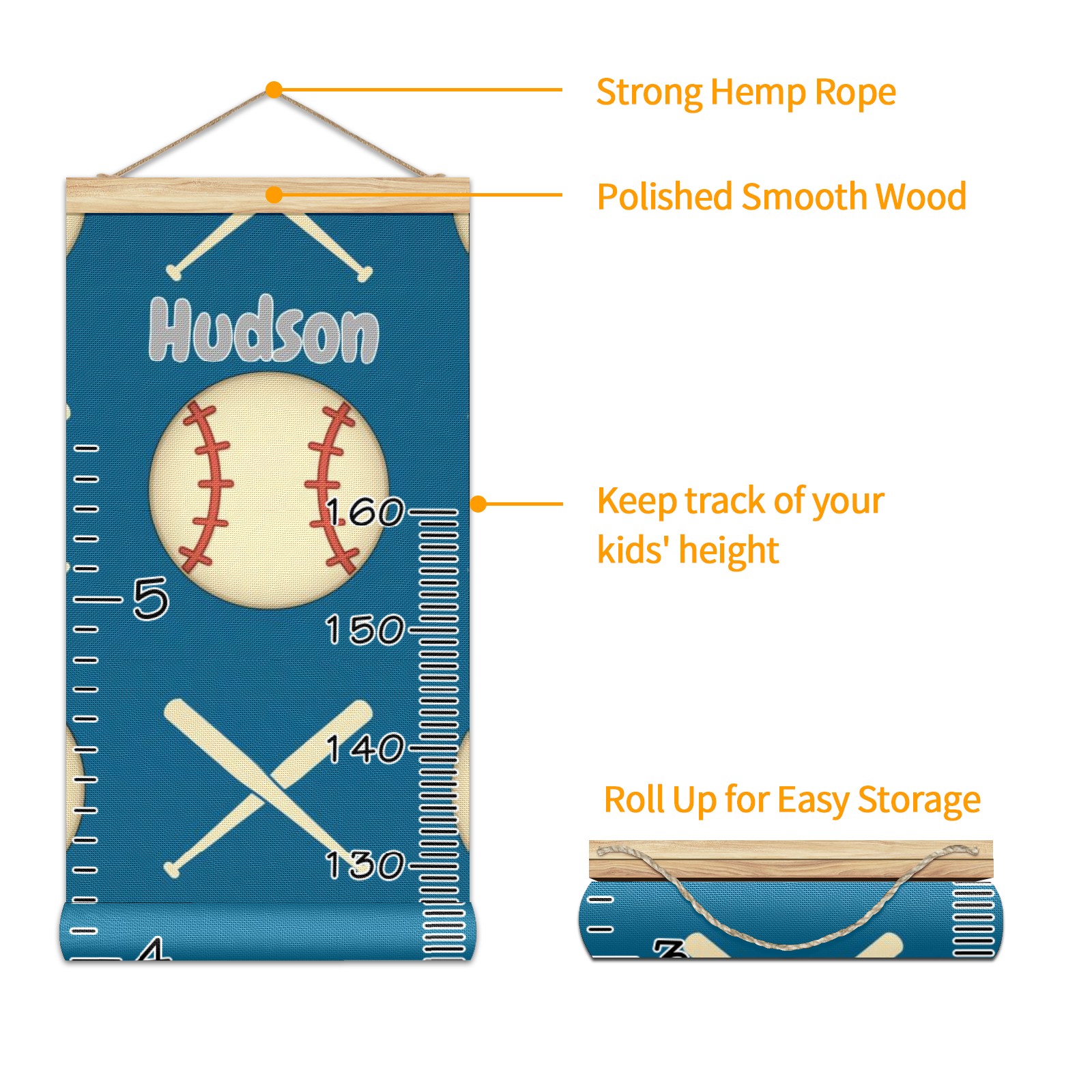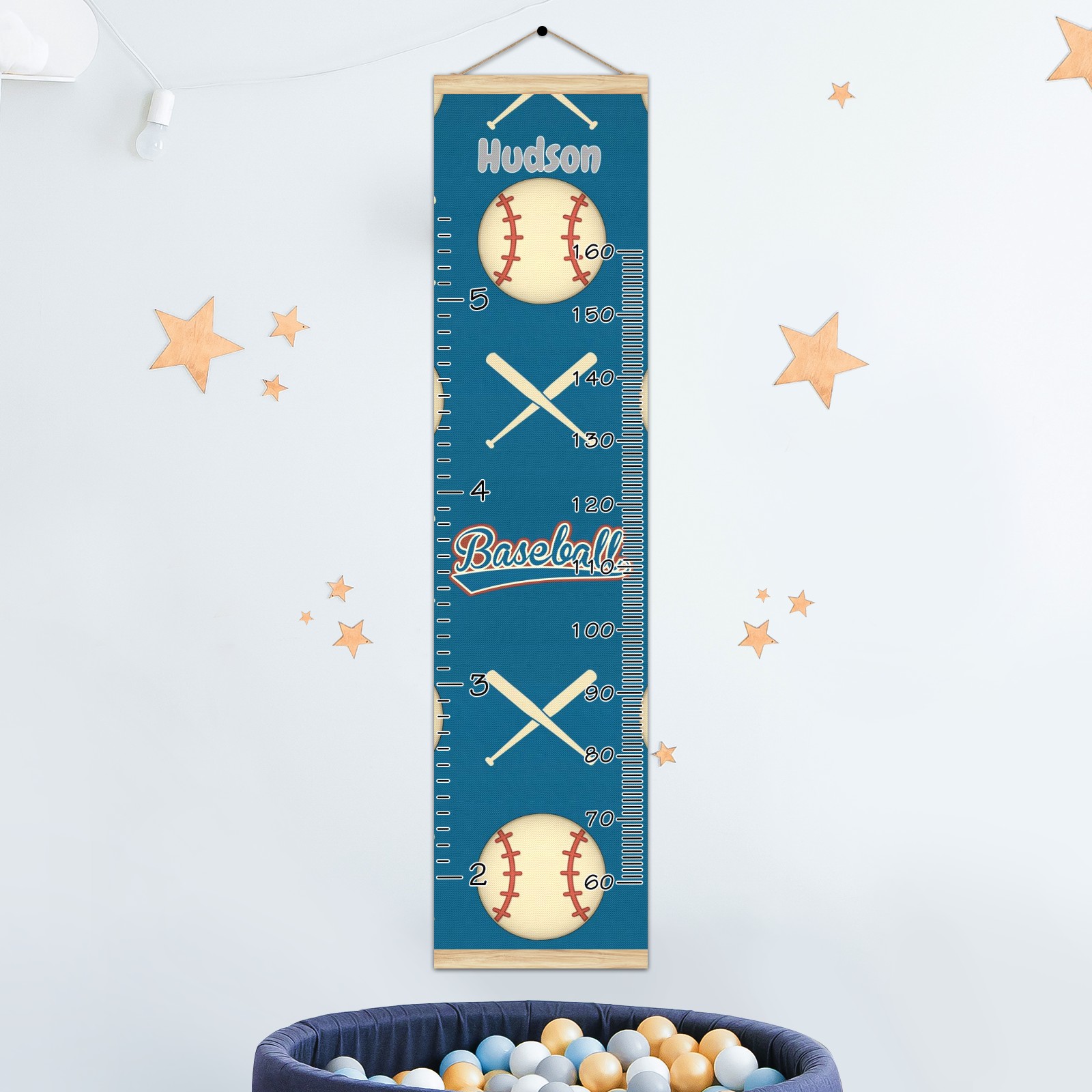 Personalized Kids Name Growth Chart Ruler for Wall Wood Frame Canvas Height Measure Chart 13.4x56 in Hanging Growth Chart Baseball And Baseball Bat Sport1.26 Boys Girls Room Decor