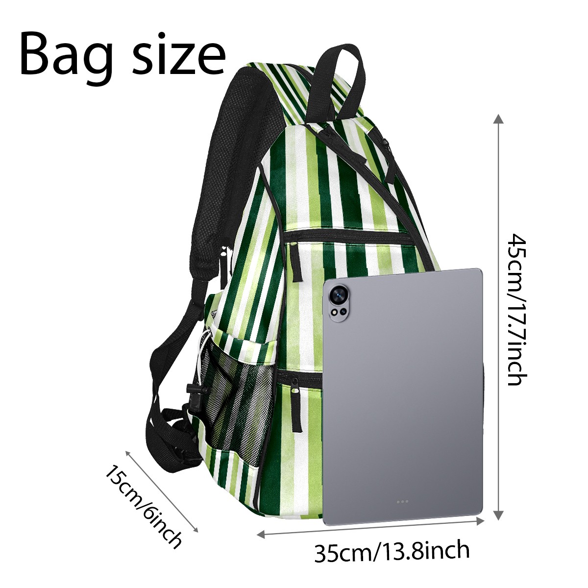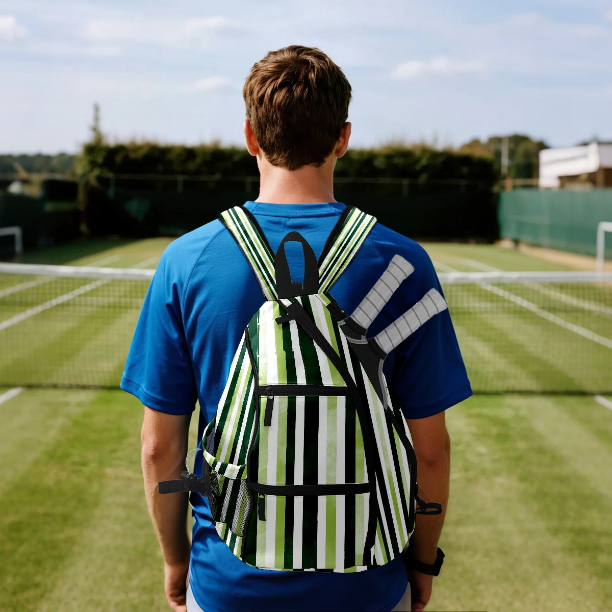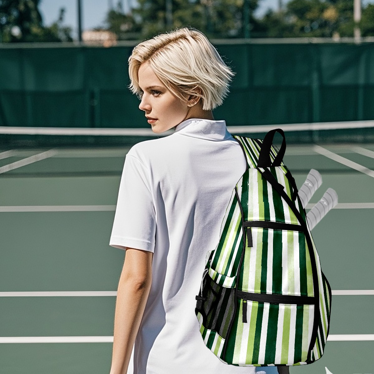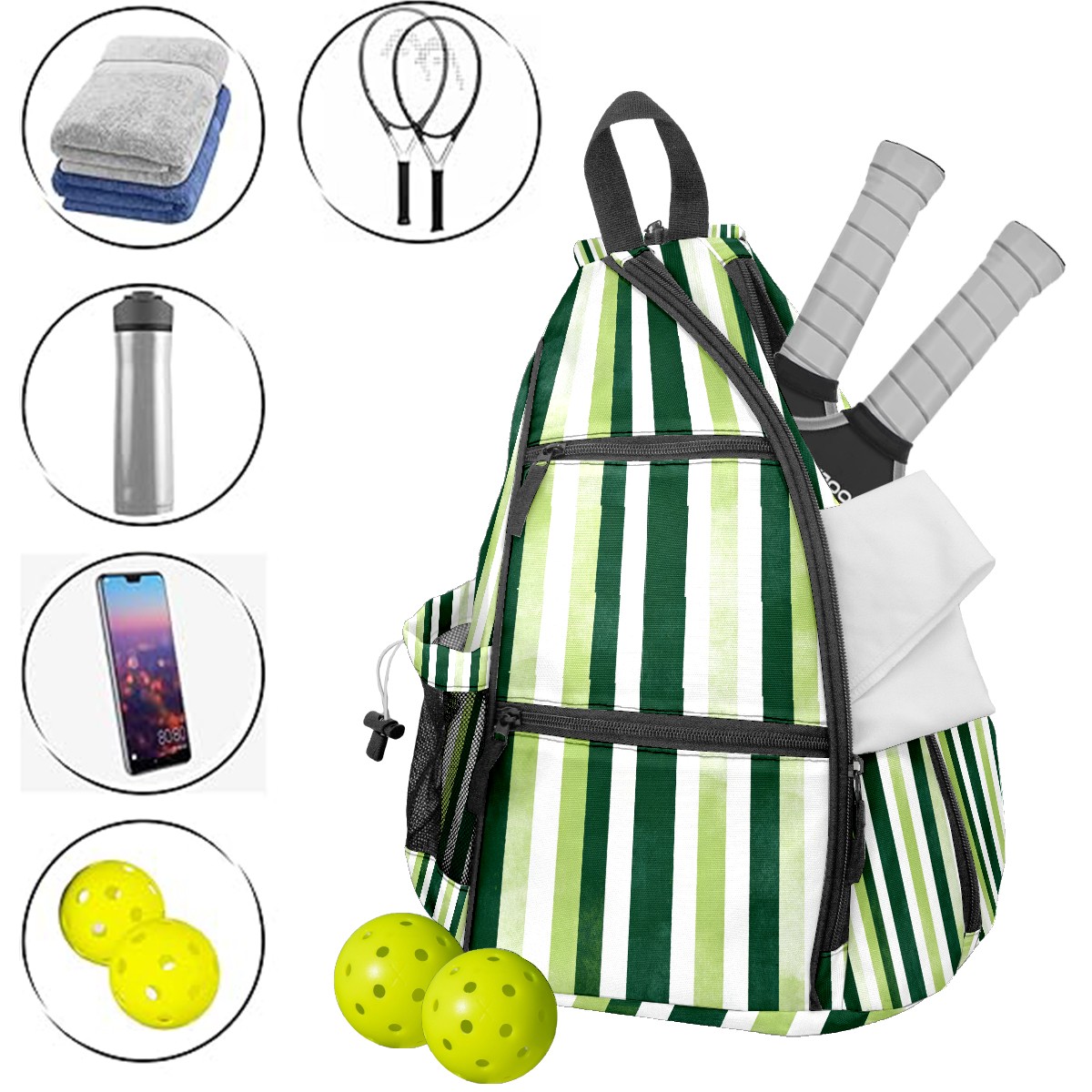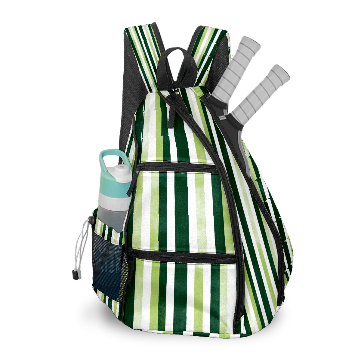 Pickleball Sling Bag for Women and Men - Backpack with Nylon Fabric/Woven Strap/Mesh Pocket/Fence Hook/Adjustable Bag Fresh Stripe Green