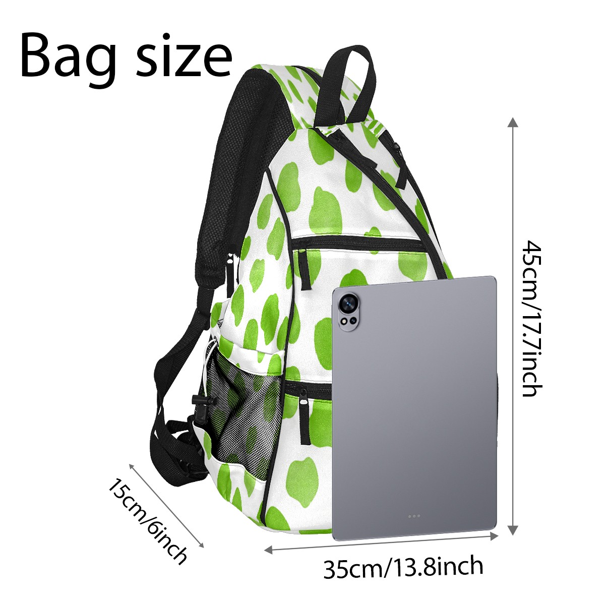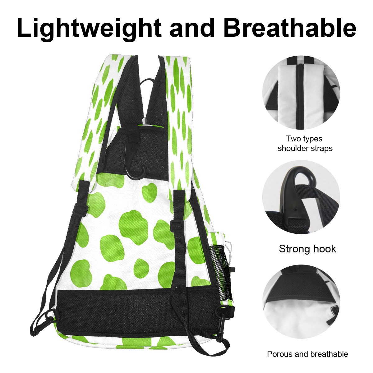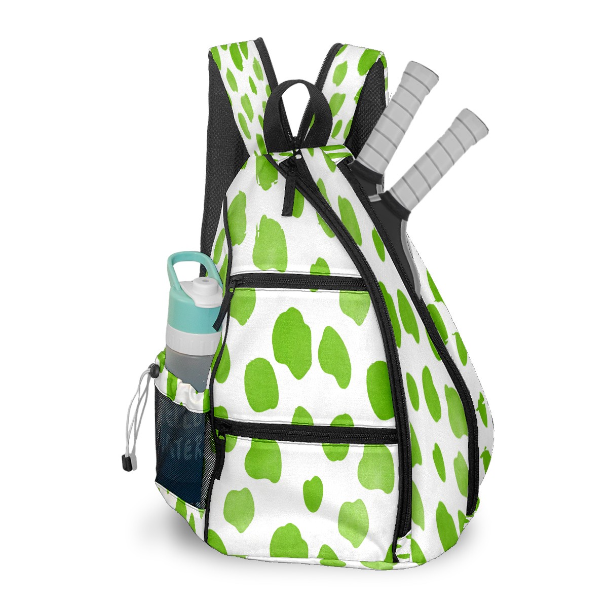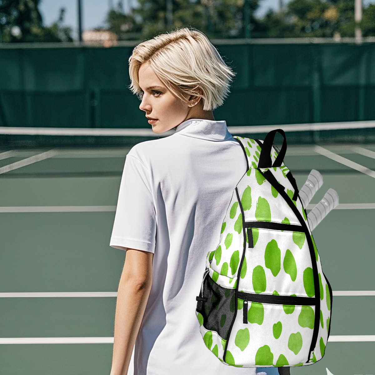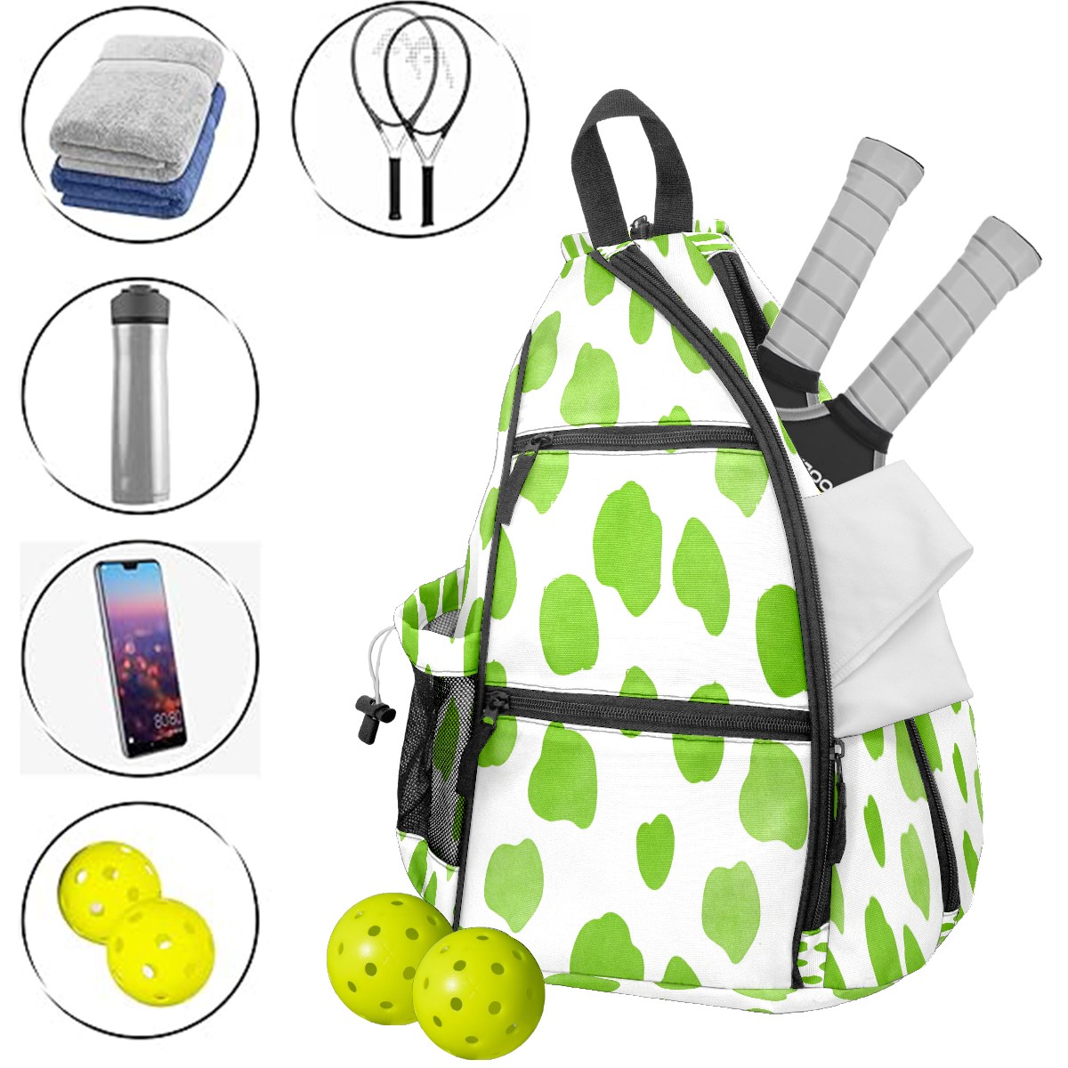 Pickleball Sling Bag for Women and Men - Backpack with Nylon Fabric/Woven Strap/Mesh Pocket/Fence Hook/Adjustable Bag Fresh Dot Green