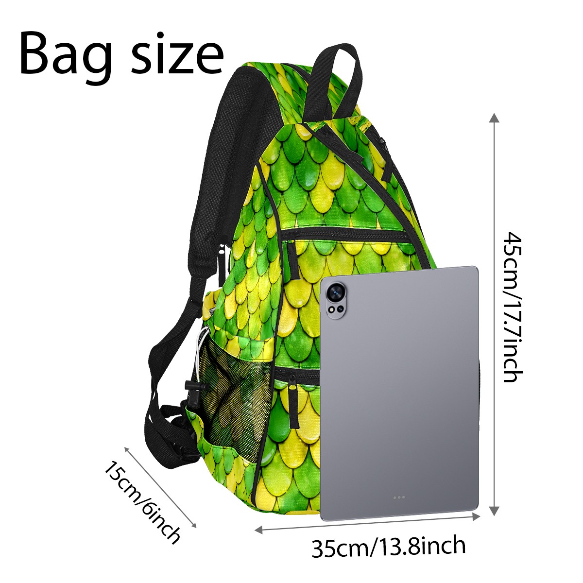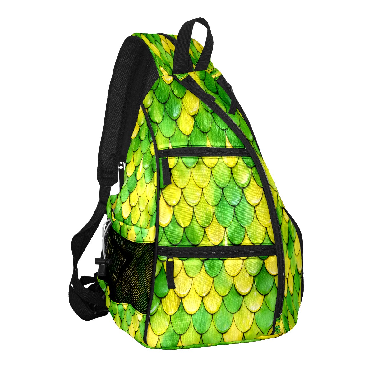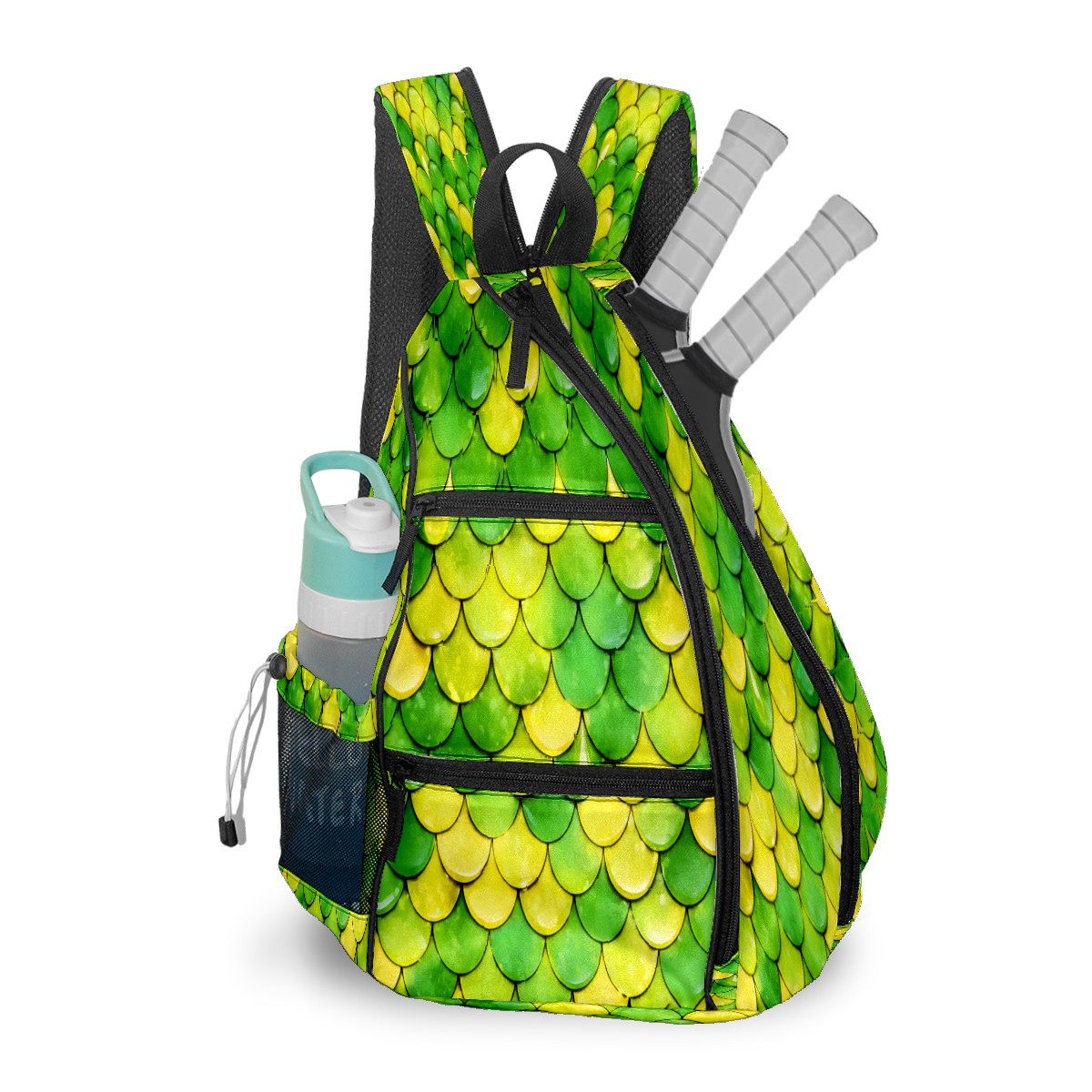 Pickleball Sling Bag for Women and Men - Backpack with Nylon Fabric/Woven Strap/Mesh Pocket/Fence Hook/Adjustable Bag Fish Scale Green