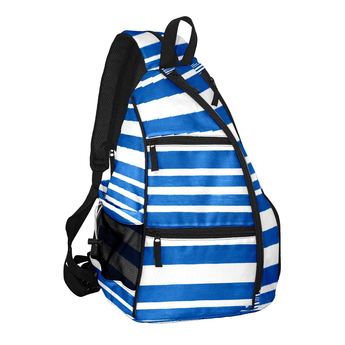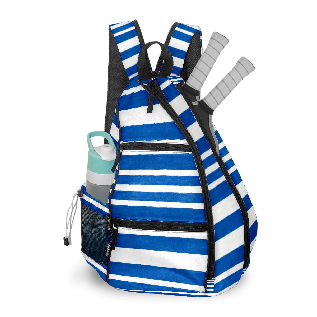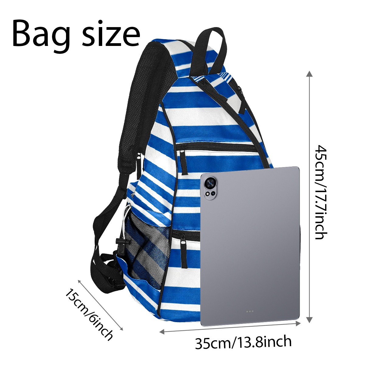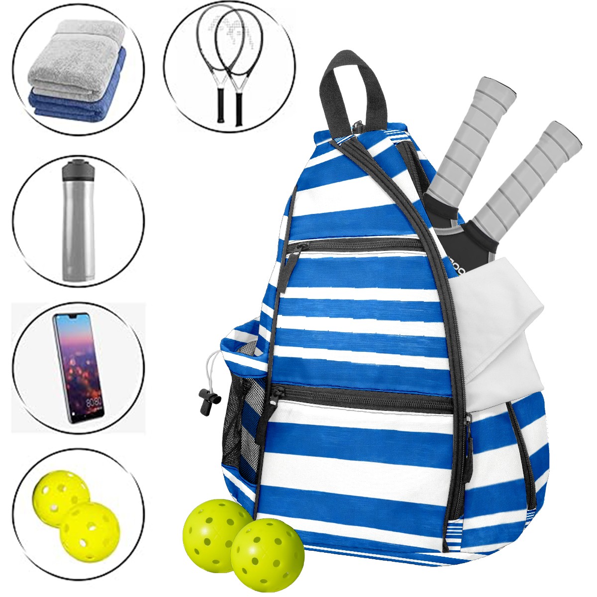 Pickleball Sling Bag for Women and Men - Backpack with Nylon Fabric/Woven Strap/Mesh Pocket/Fence Hook/Adjustable Bag Fresh Stripe Blue