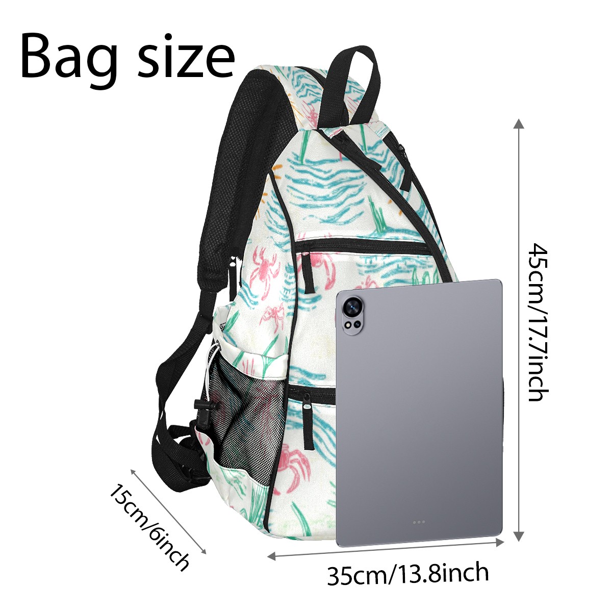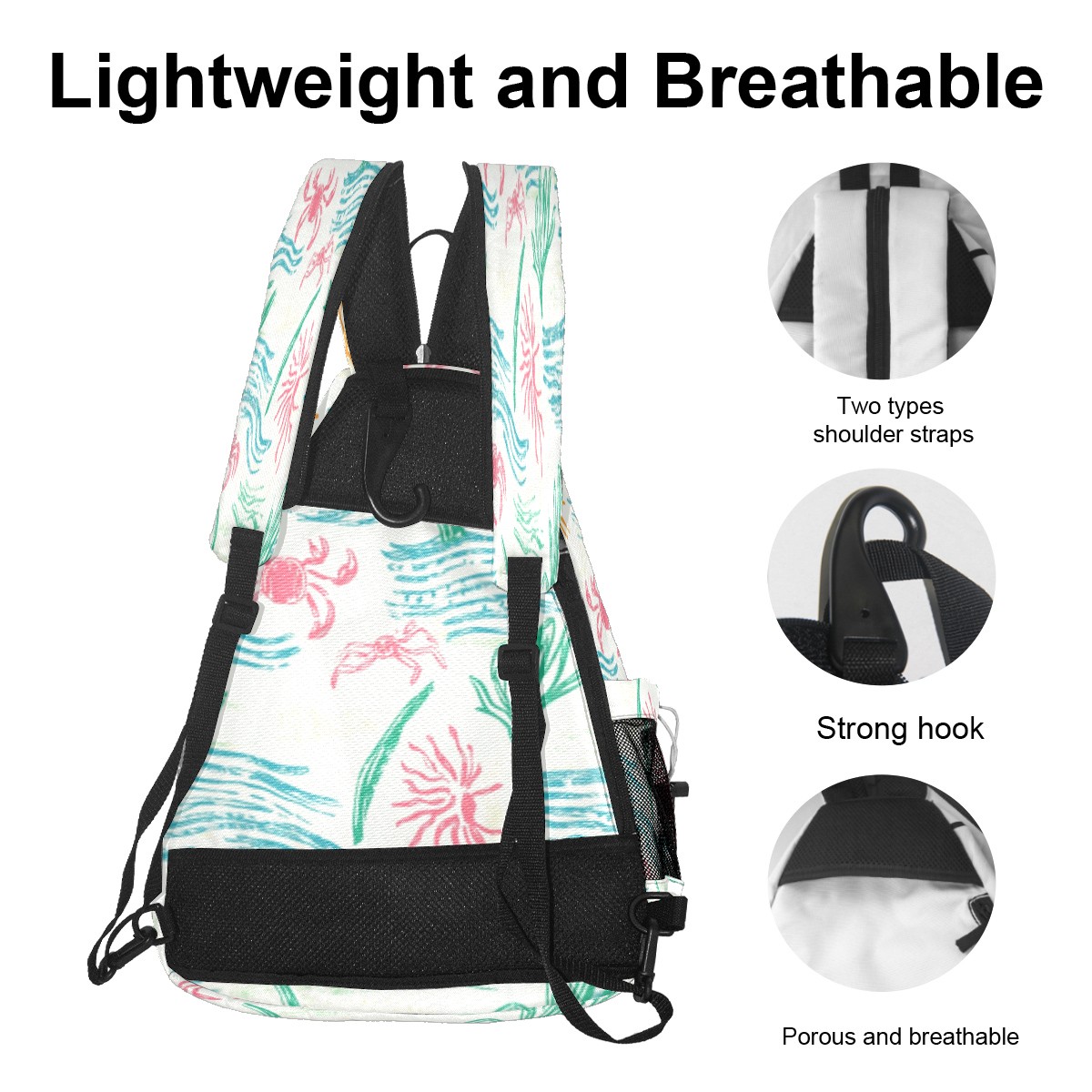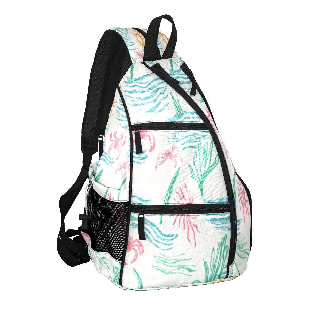 Pickleball Sling Bag for Women and Men - Backpack with Nylon Fabric/Woven Strap/Mesh Pocket/Fence Hook/Adjustable Bag Sunny Coastal Print Design