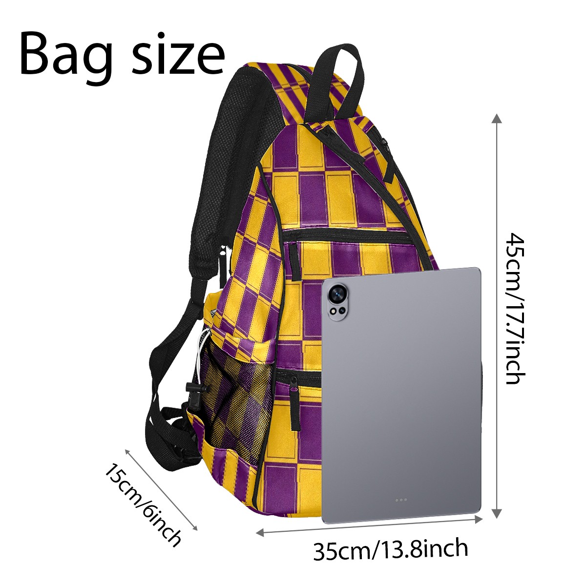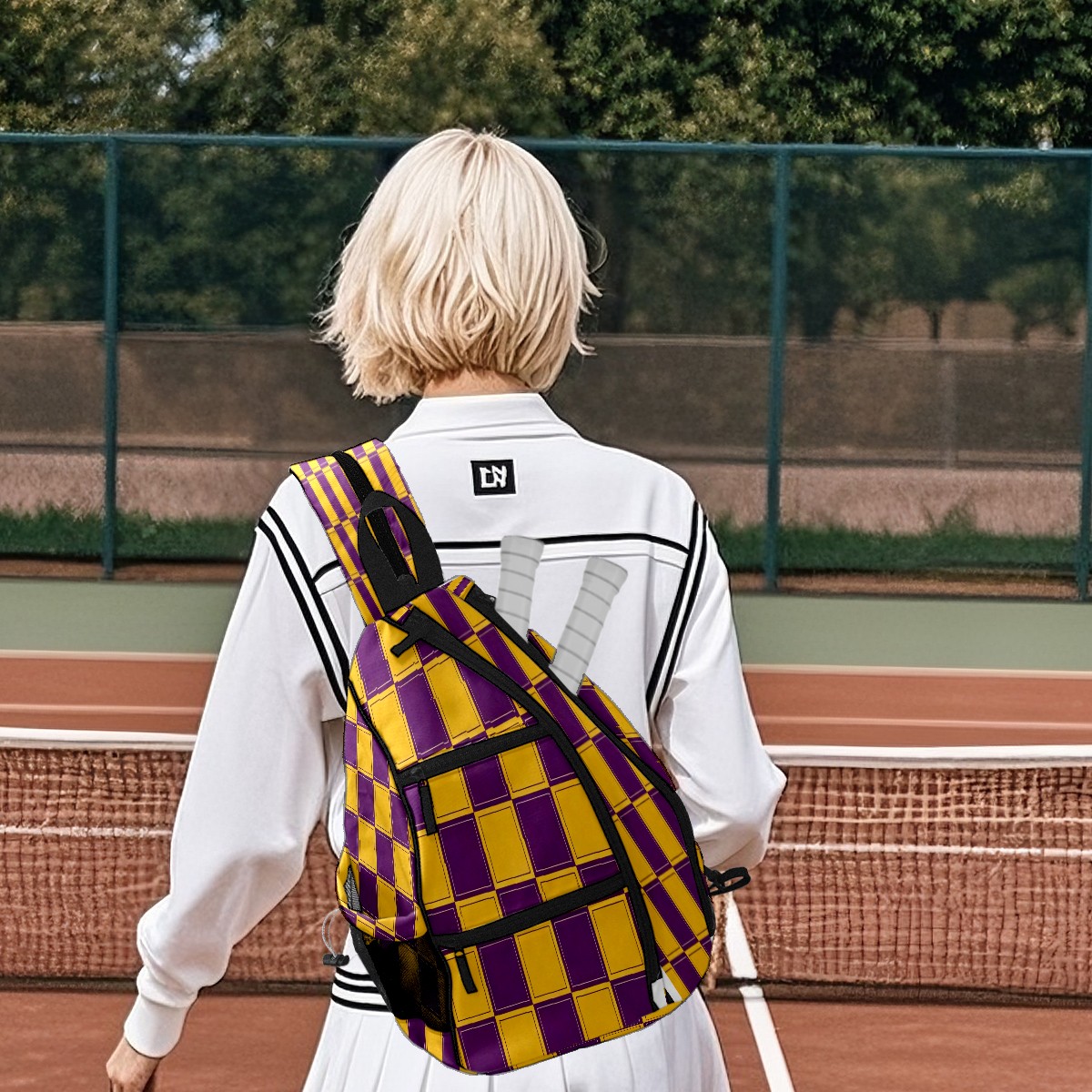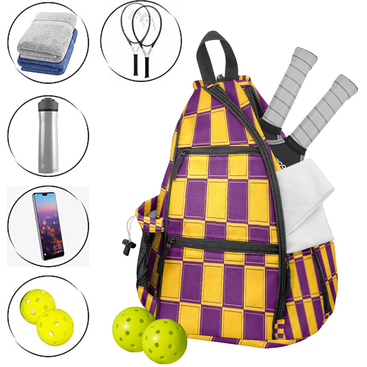 Pickleball Sling Bag for Women and Men - Backpack with Nylon Fabric/Woven Strap/Mesh Pocket/Fence Hook/Adjustable Bag Purple Yellow
