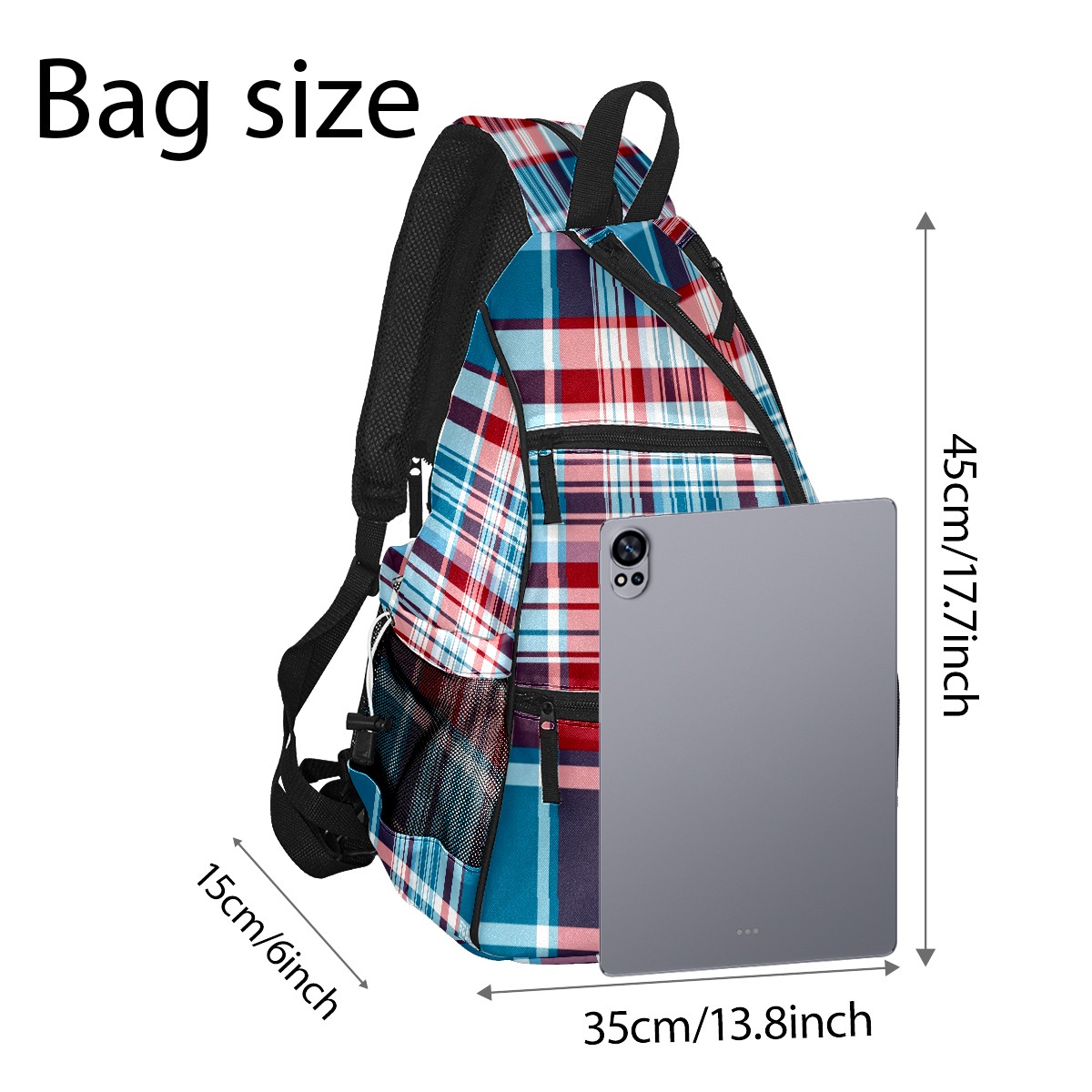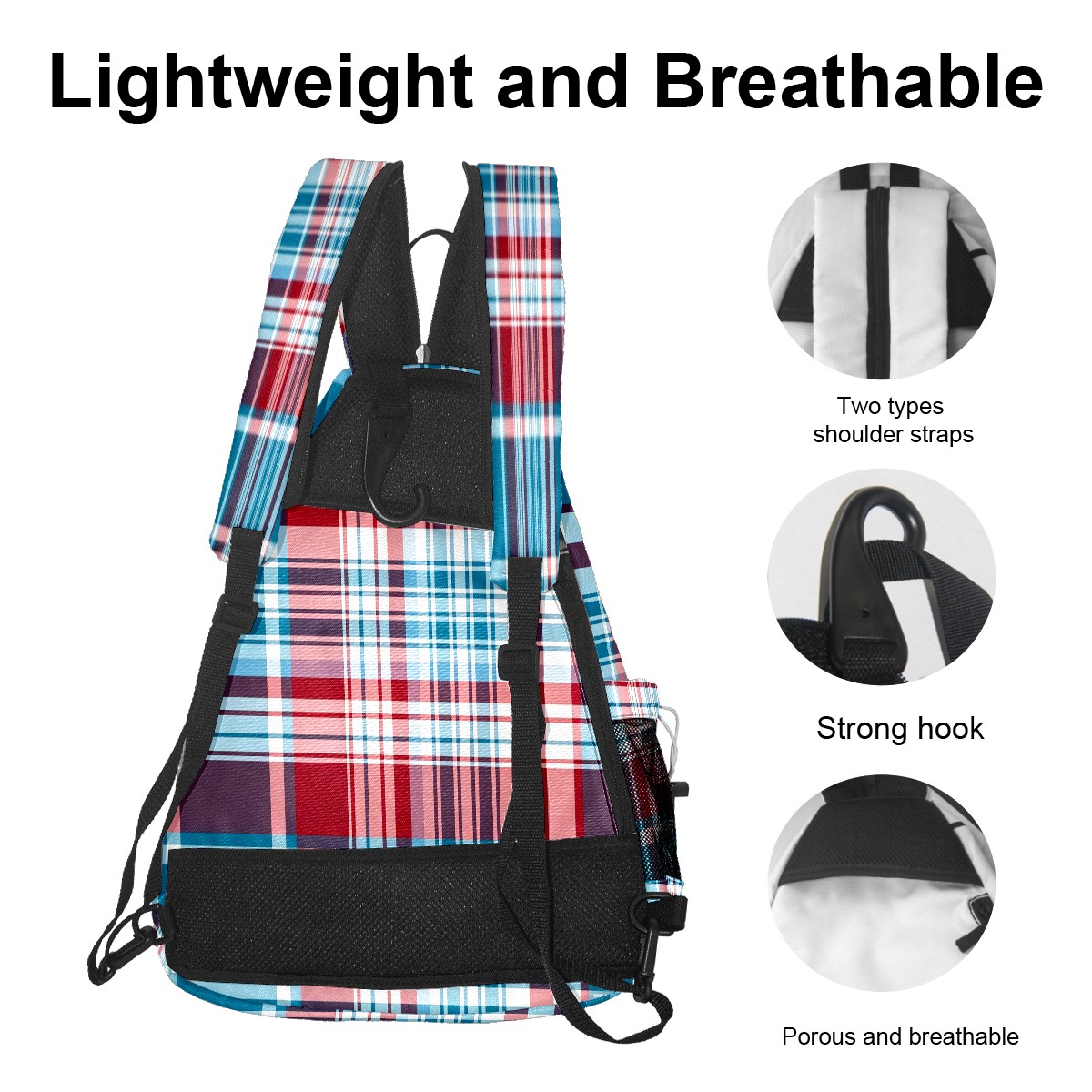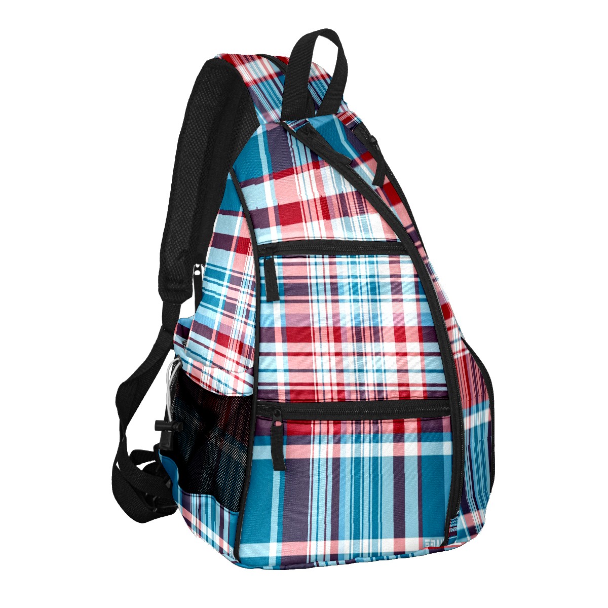 Pickleball Sling Bag for Women and Men - Backpack with Nylon Fabric/Woven Strap/Mesh Pocket/Fence Hook/Adjustable Bag Classic Plaid Blue