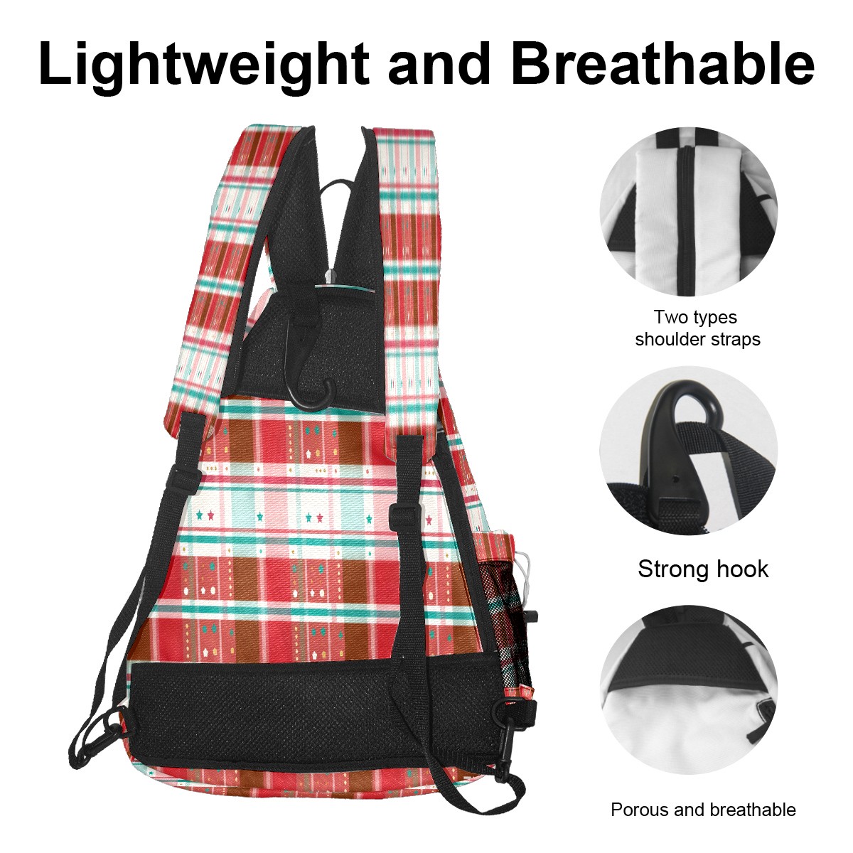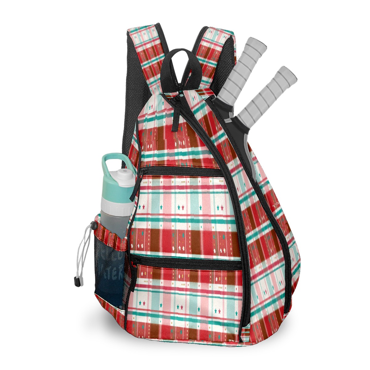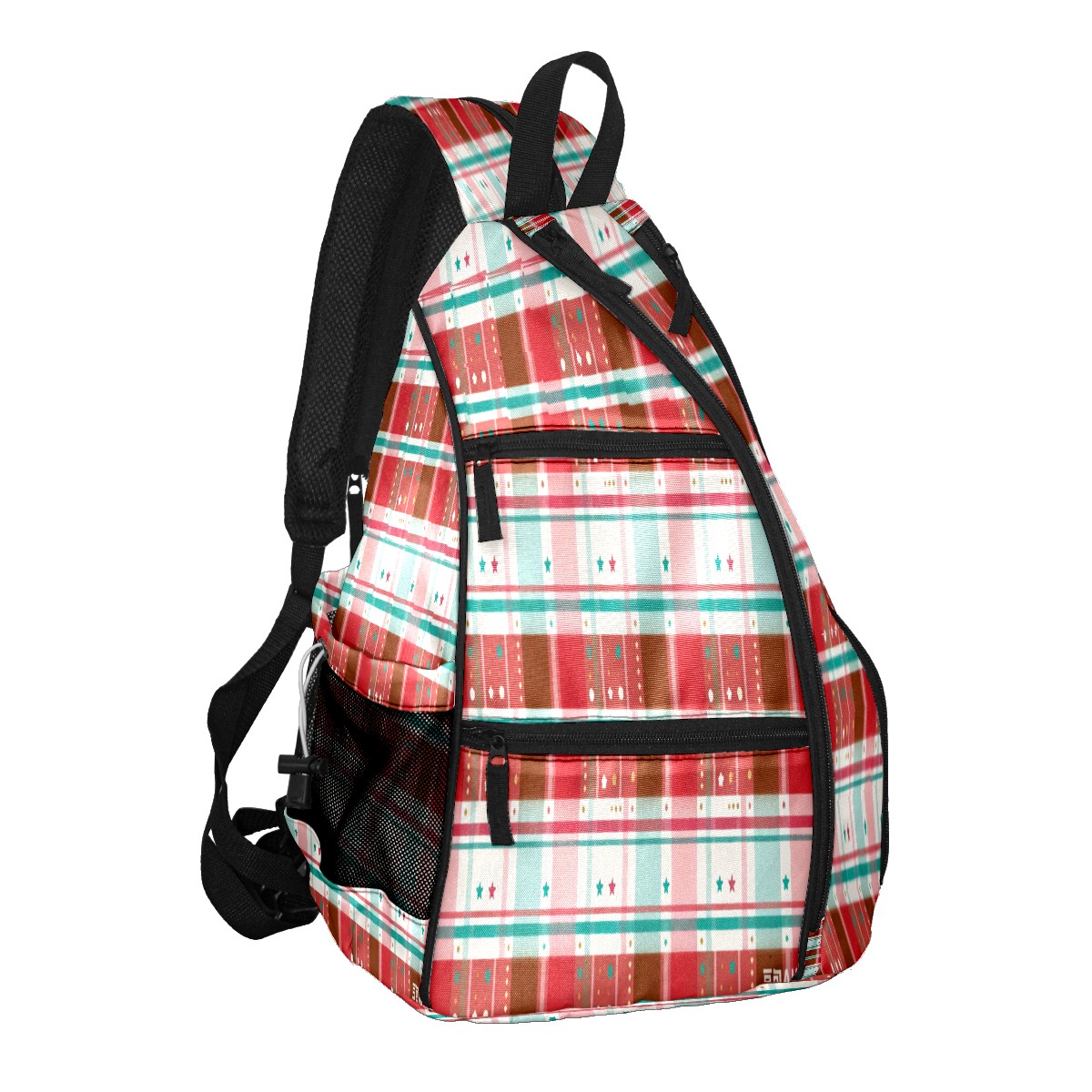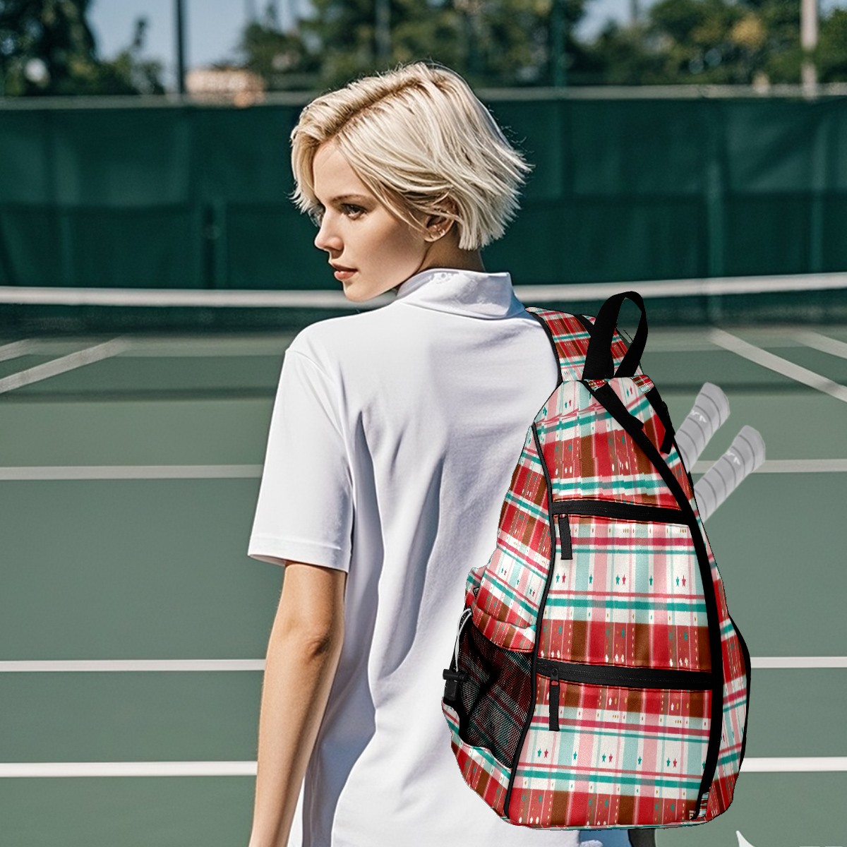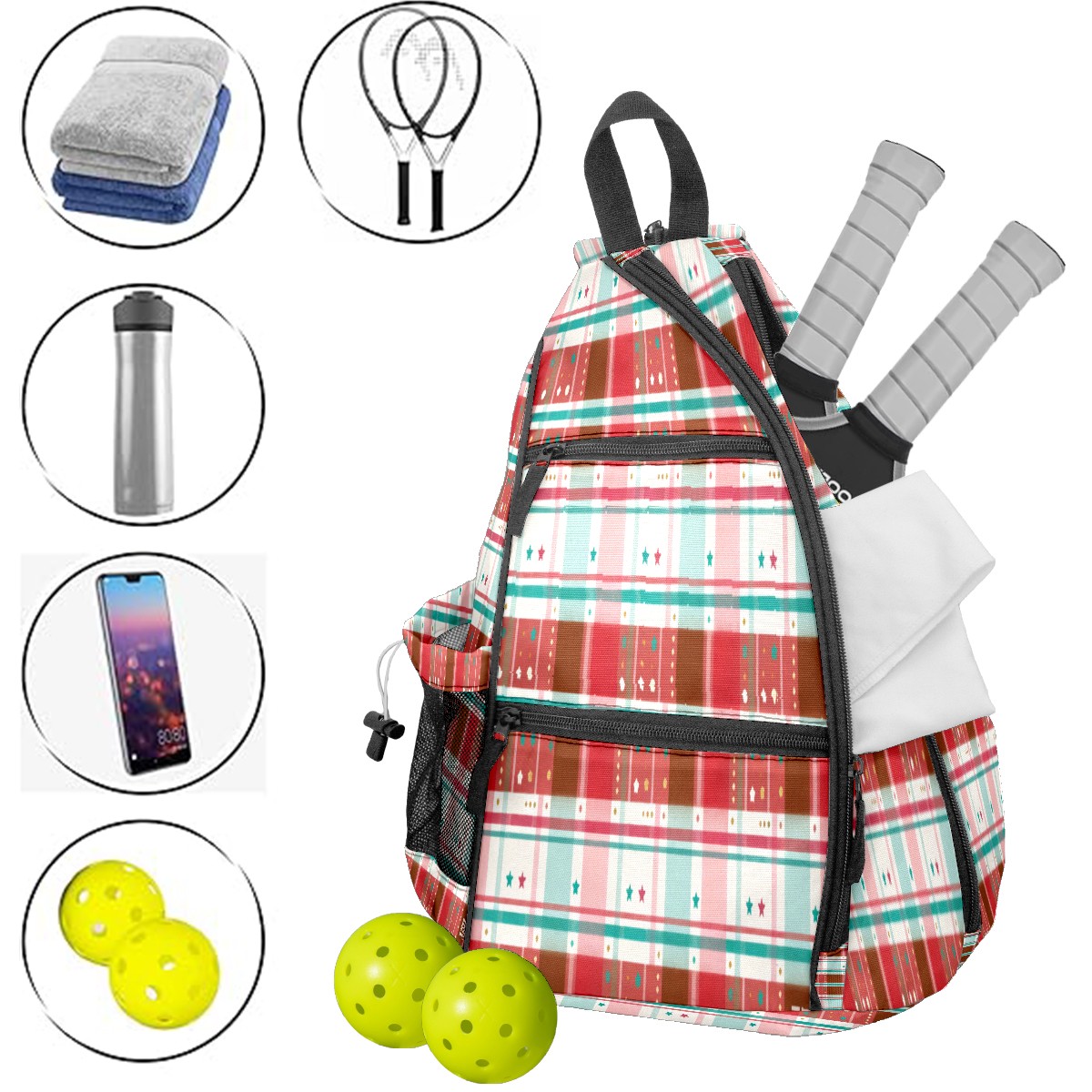 Pickleball Sling Bag for Women and Men - Backpack with Nylon Fabric/Woven Strap/Mesh Pocket/Fence Hook/Adjustable Bag Vintage Plaid Red