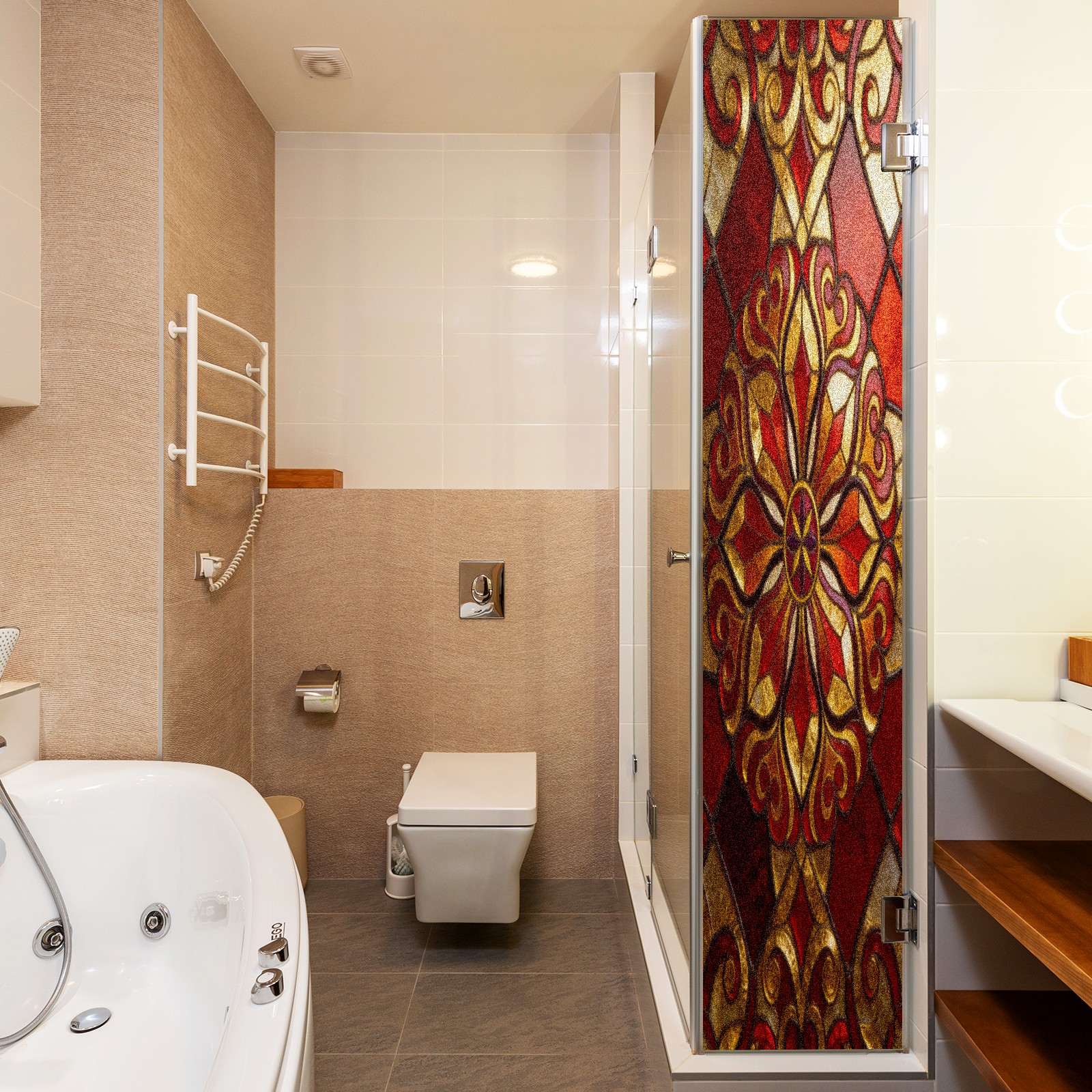 Counullo Frosted Glass Privacy Window Film, Brown Floral Non Adhesive Static Cling, Reusable PET Window Sticker for Bathroom Shower Door Bedroom Office Living Room (17.7x23.6in)