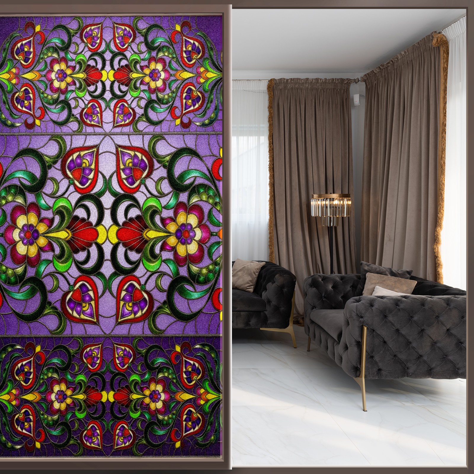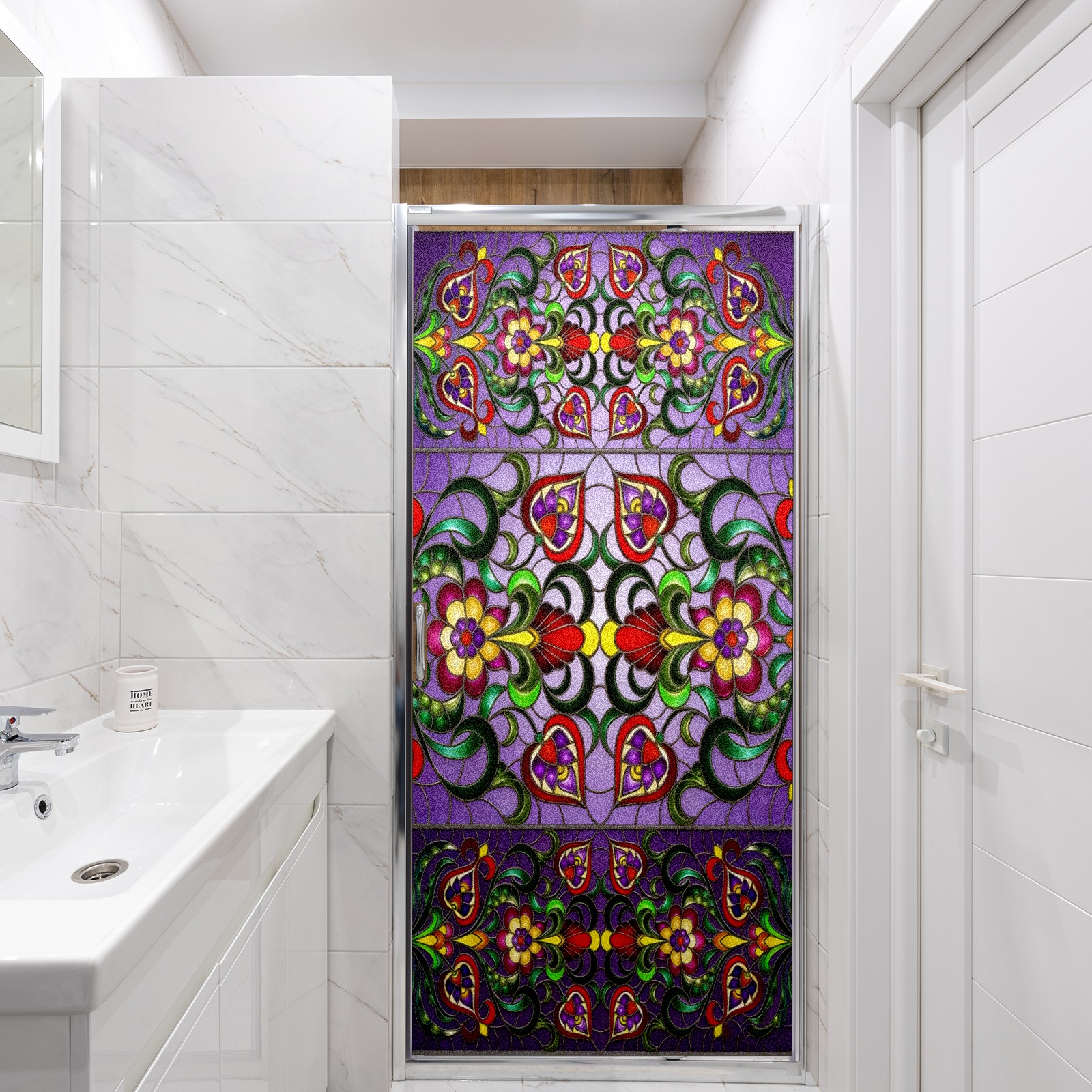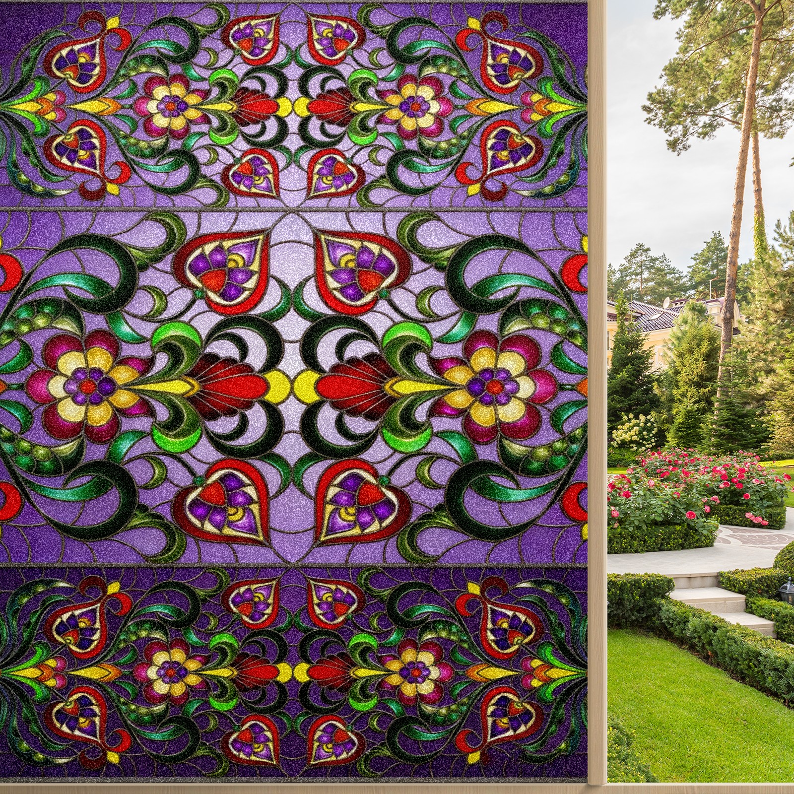 Counullo Frosted Glass Privacy Window Film, Purple Floral Non Adhesive Static Cling, Reusable PET Window Sticker for Bathroom Shower Door Bedroom Office Living Room (17.7x23.6in)