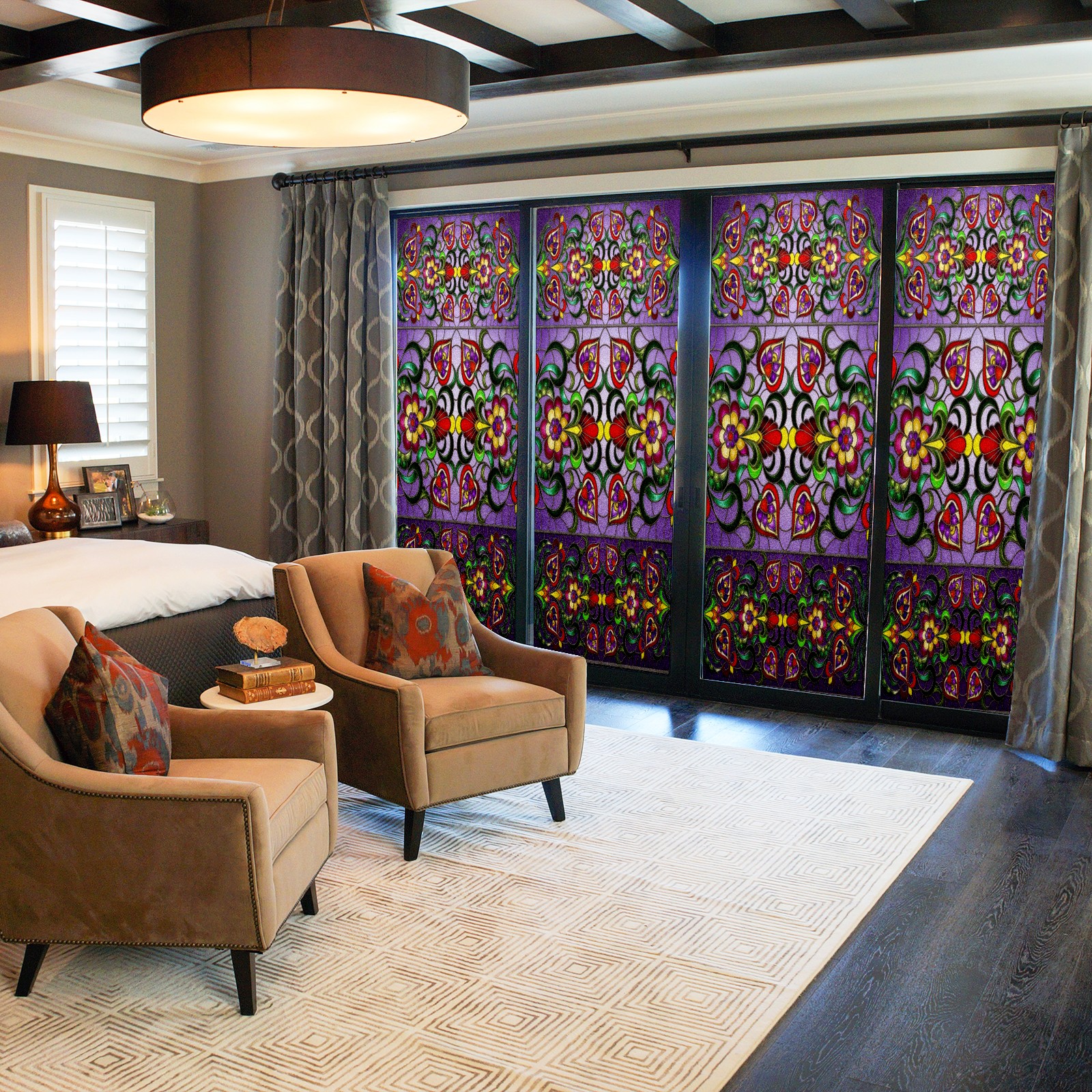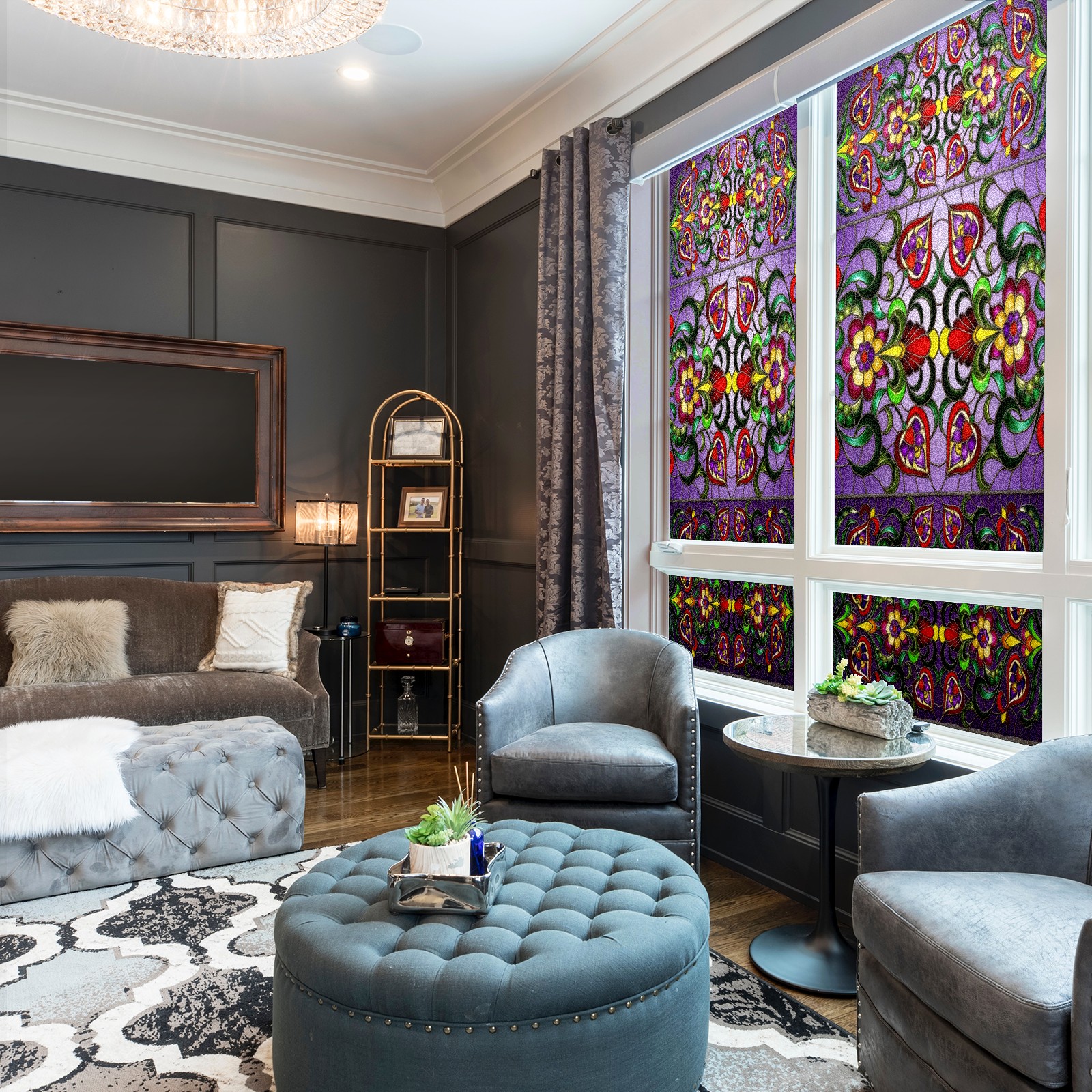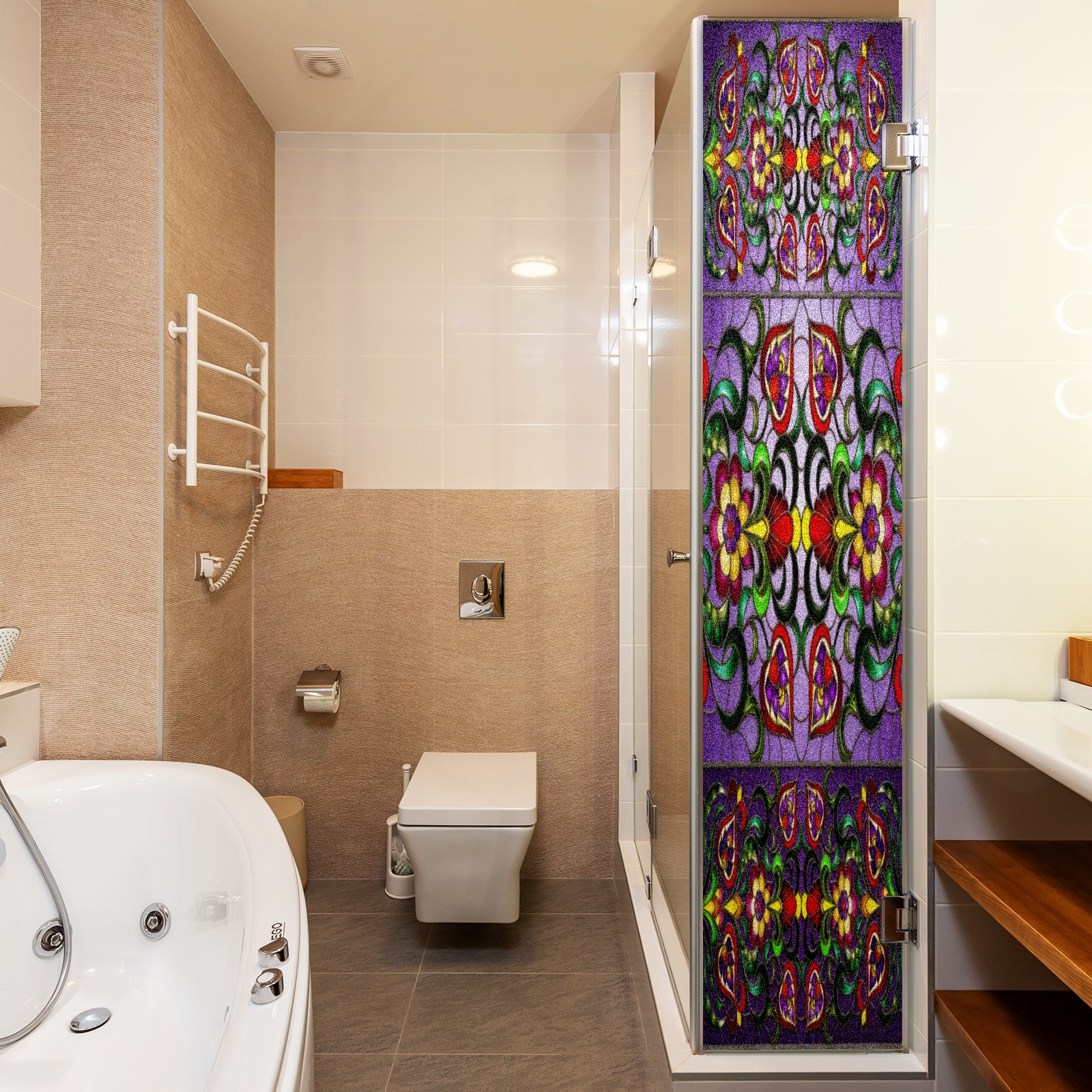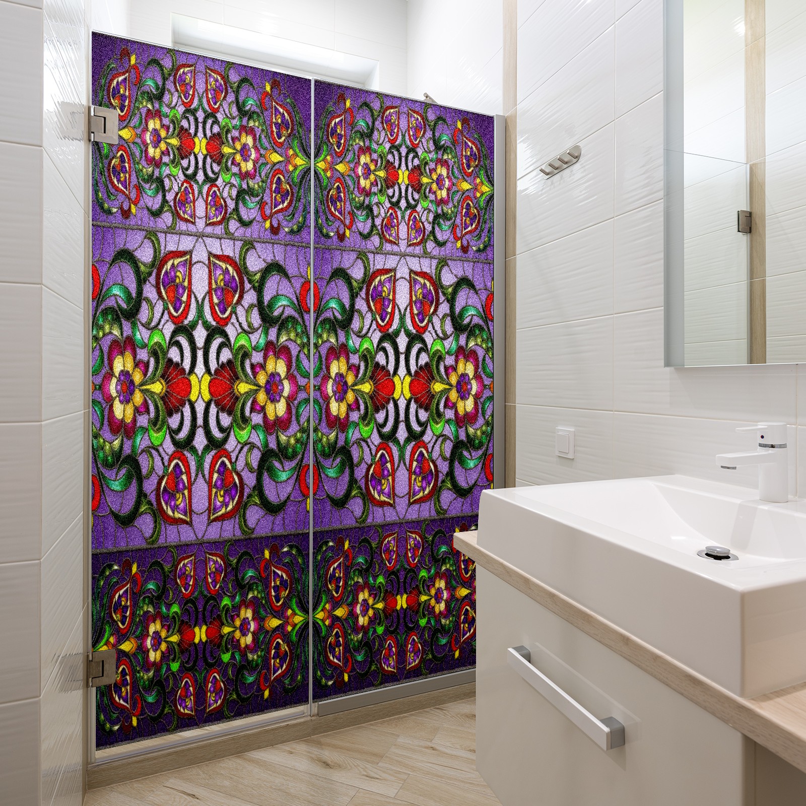 Counullo Frosted Glass Privacy Window Film, Purple Floral Non Adhesive Static Cling, Reusable PET Window Sticker for Bathroom Shower Door Bedroom Office Living Room (17.7x23.6in)