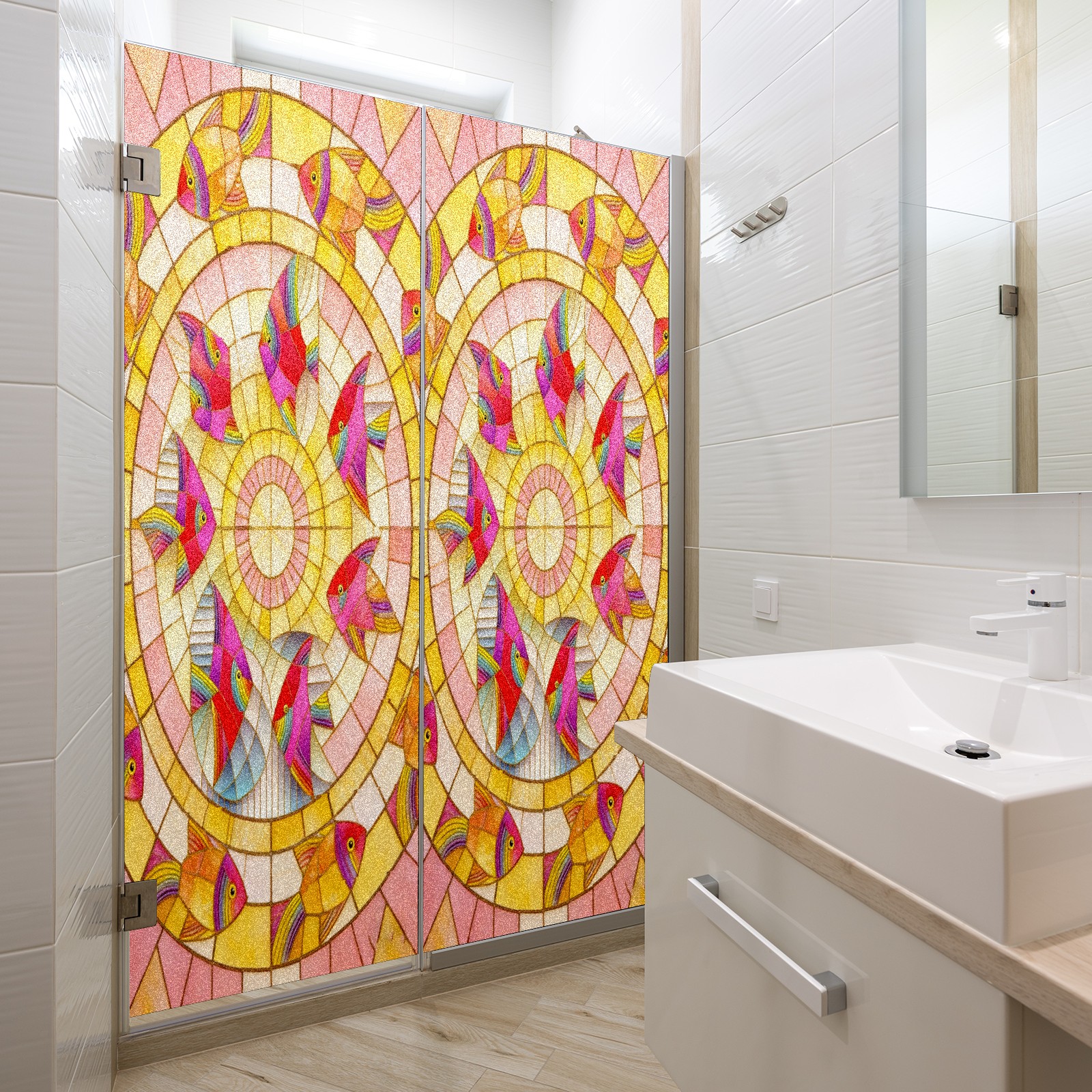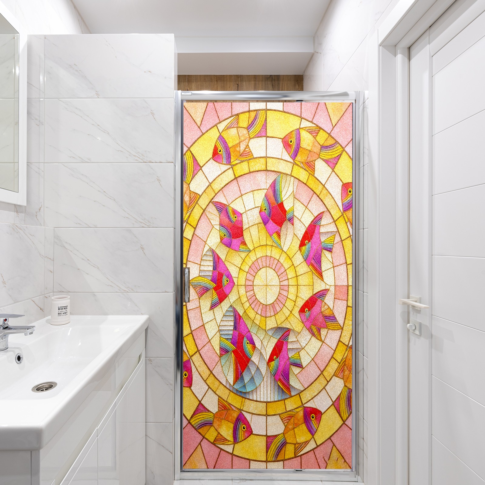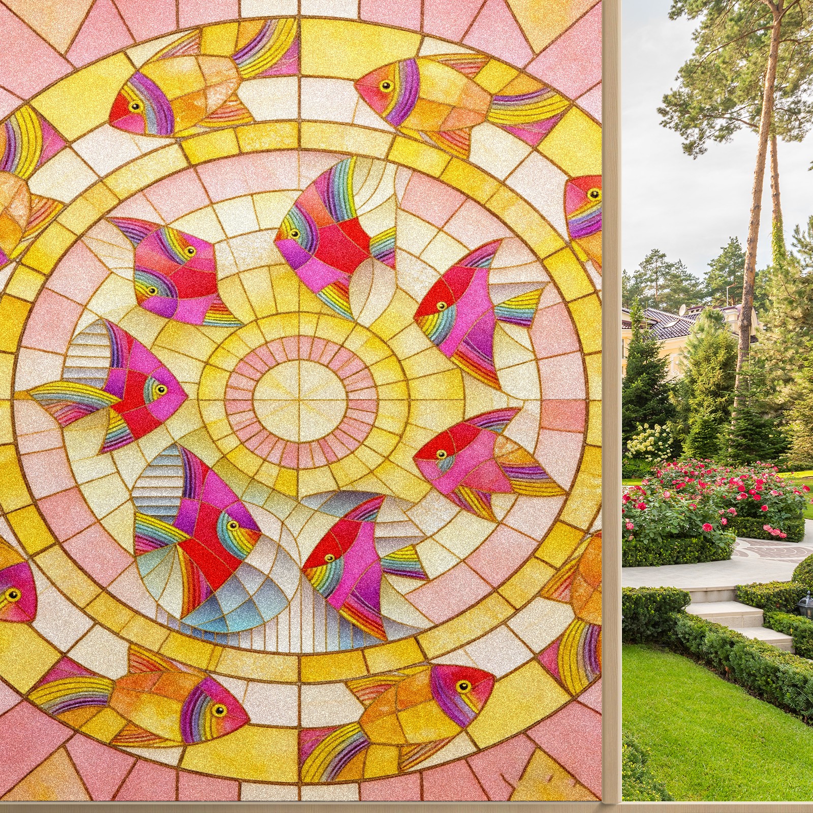 Counullo Frosted Glass Privacy Window Film, Dreamy Multi Non Adhesive Static Cling, Reusable PET Window Sticker for Bathroom Shower Door Bedroom Office Living Room (17.7x23.6in)
