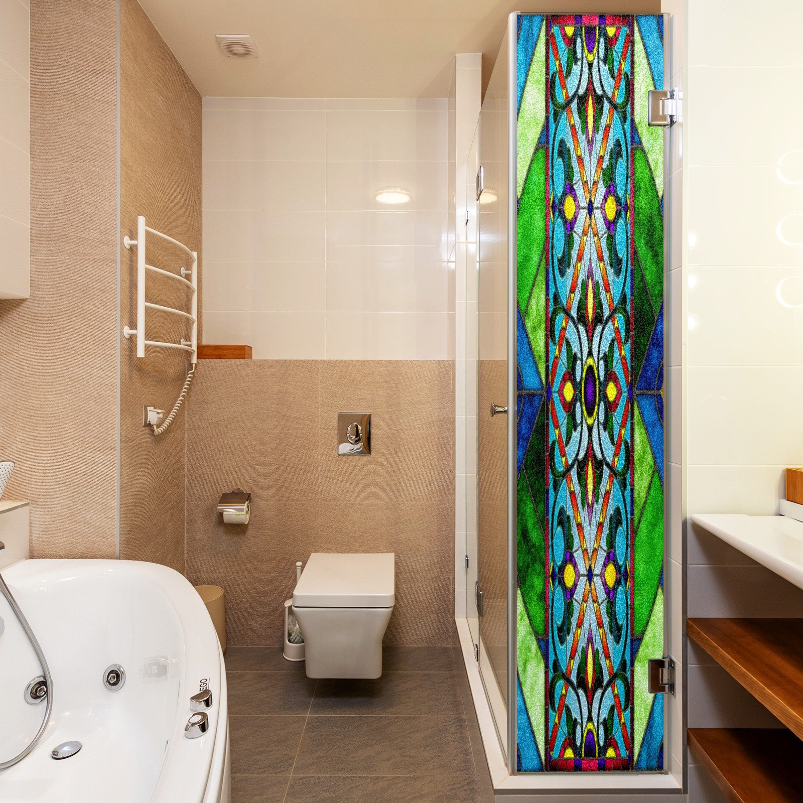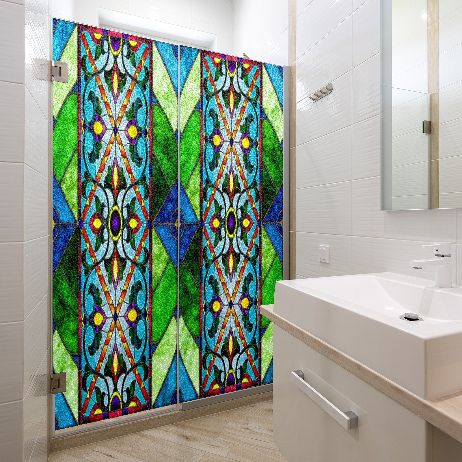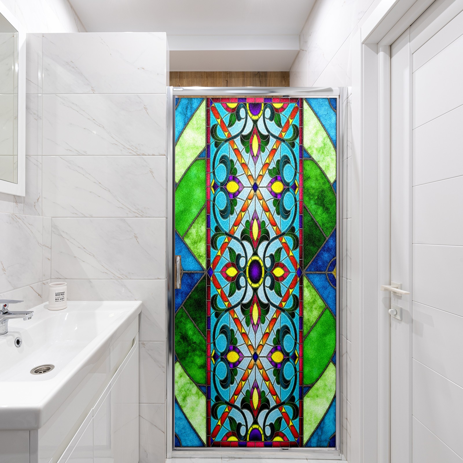 Counullo Frosted Glass Privacy Window Film, Fresh Floral Green Non Adhesive Static Cling, Reusable PET Window Sticker for Bathroom Shower Door Bedroom Office Living Room (17.7x23.6in)