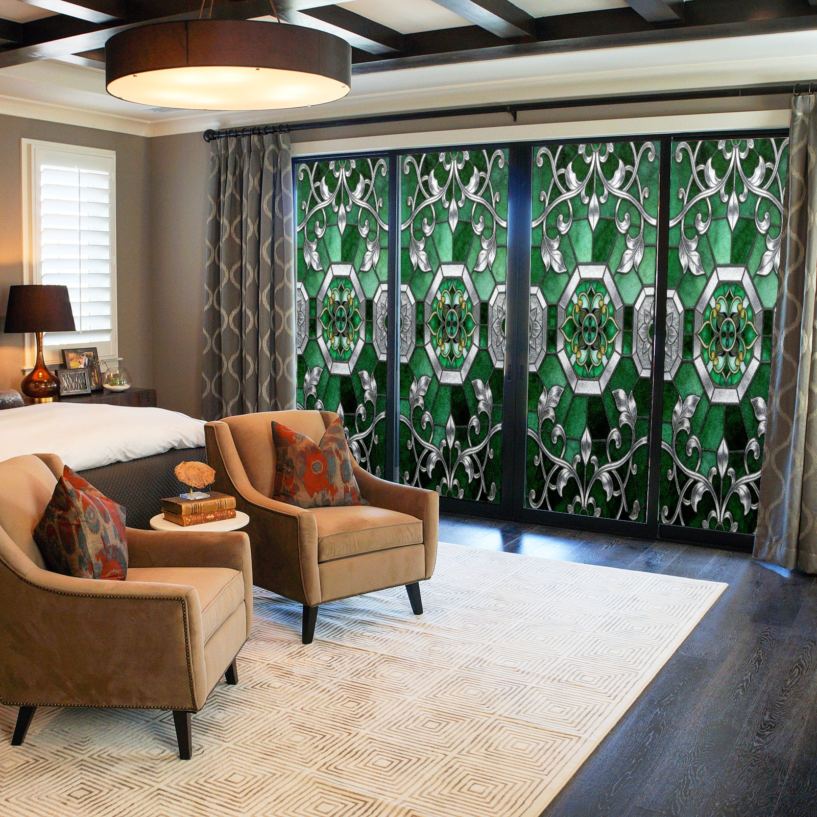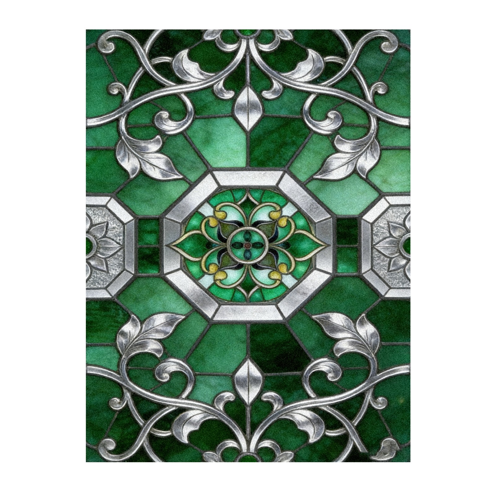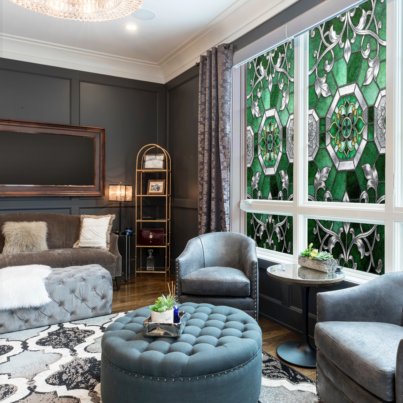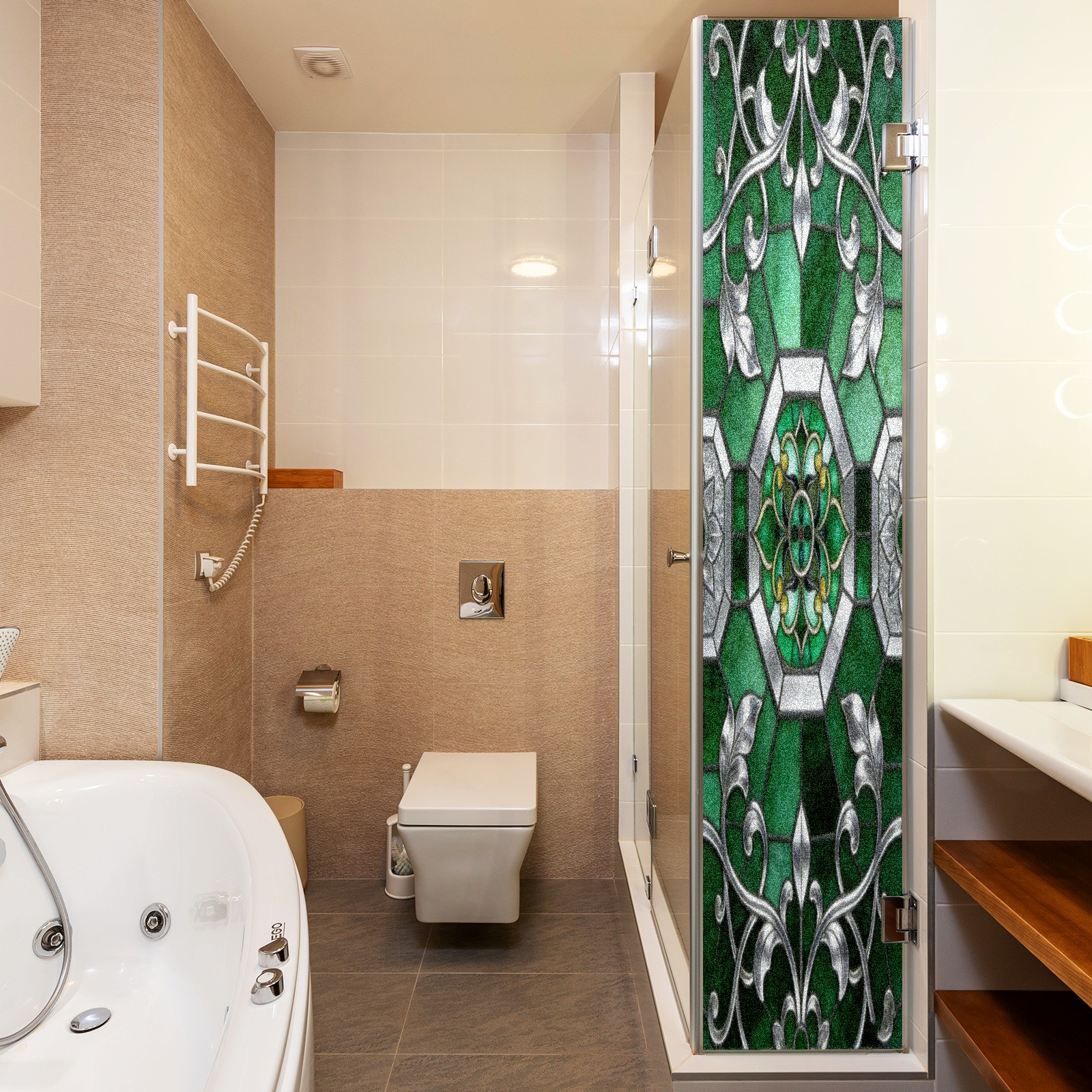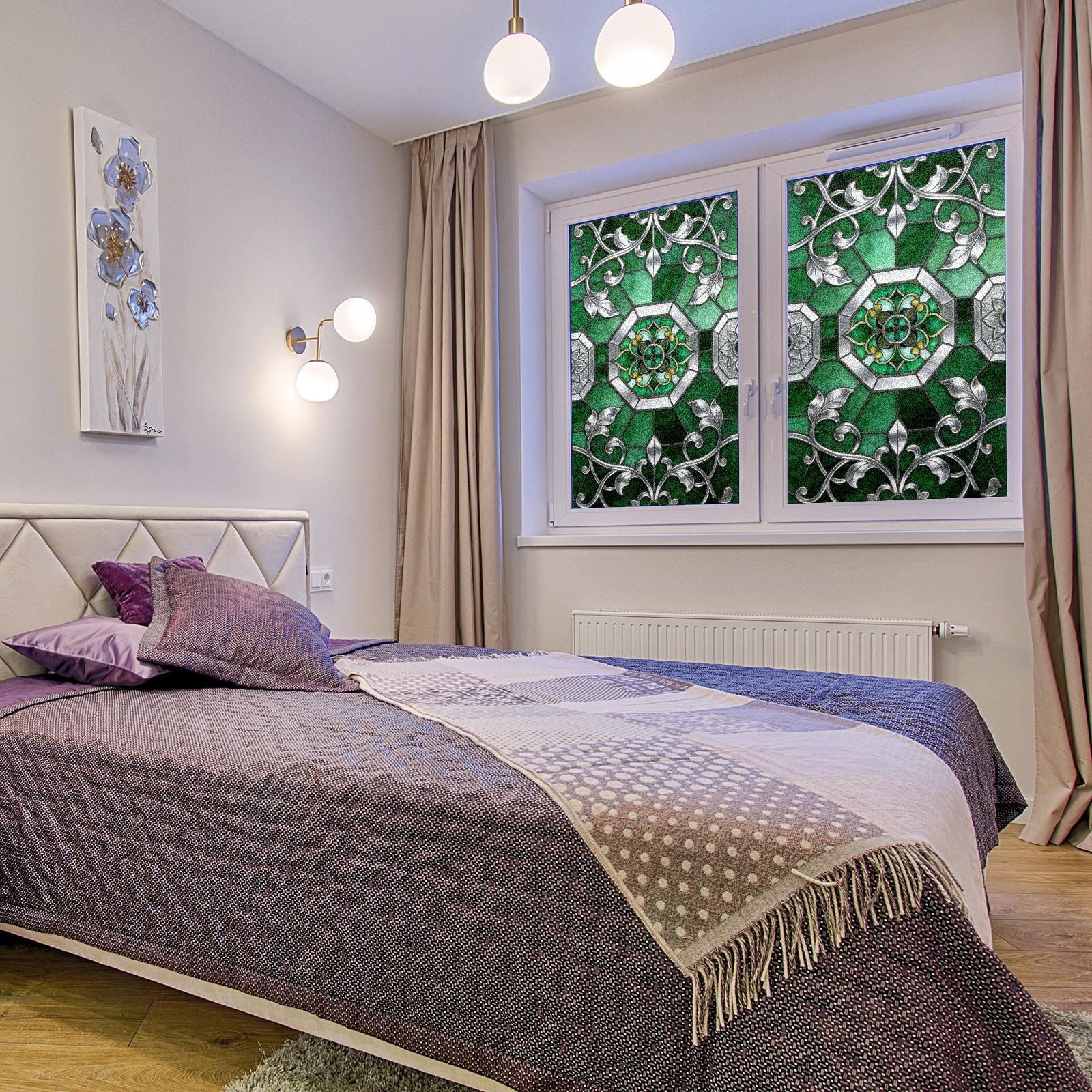 Counullo Frosted Glass Privacy Window Film, Quiet Floral Green Non Adhesive Static Cling, Reusable PET Window Sticker for Bathroom Shower Door Bedroom Office Living Room (17.7x23.6in)