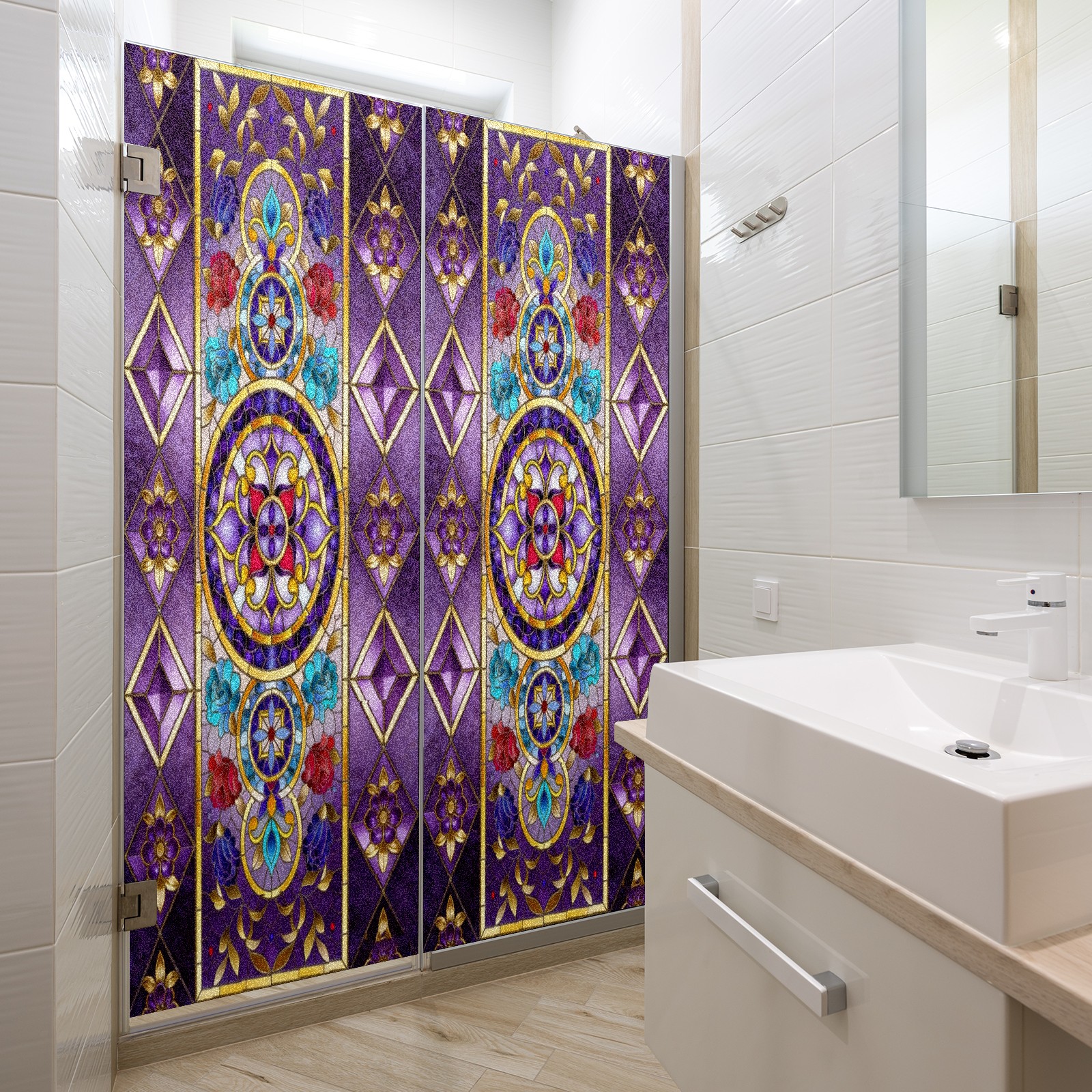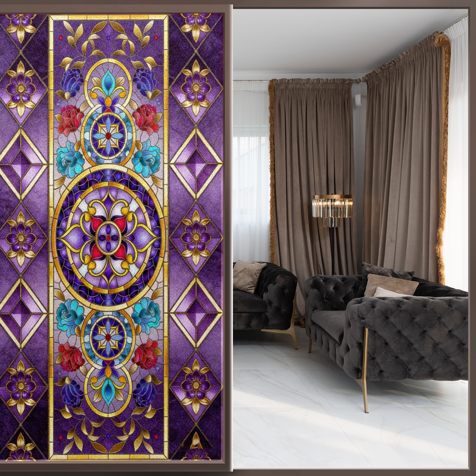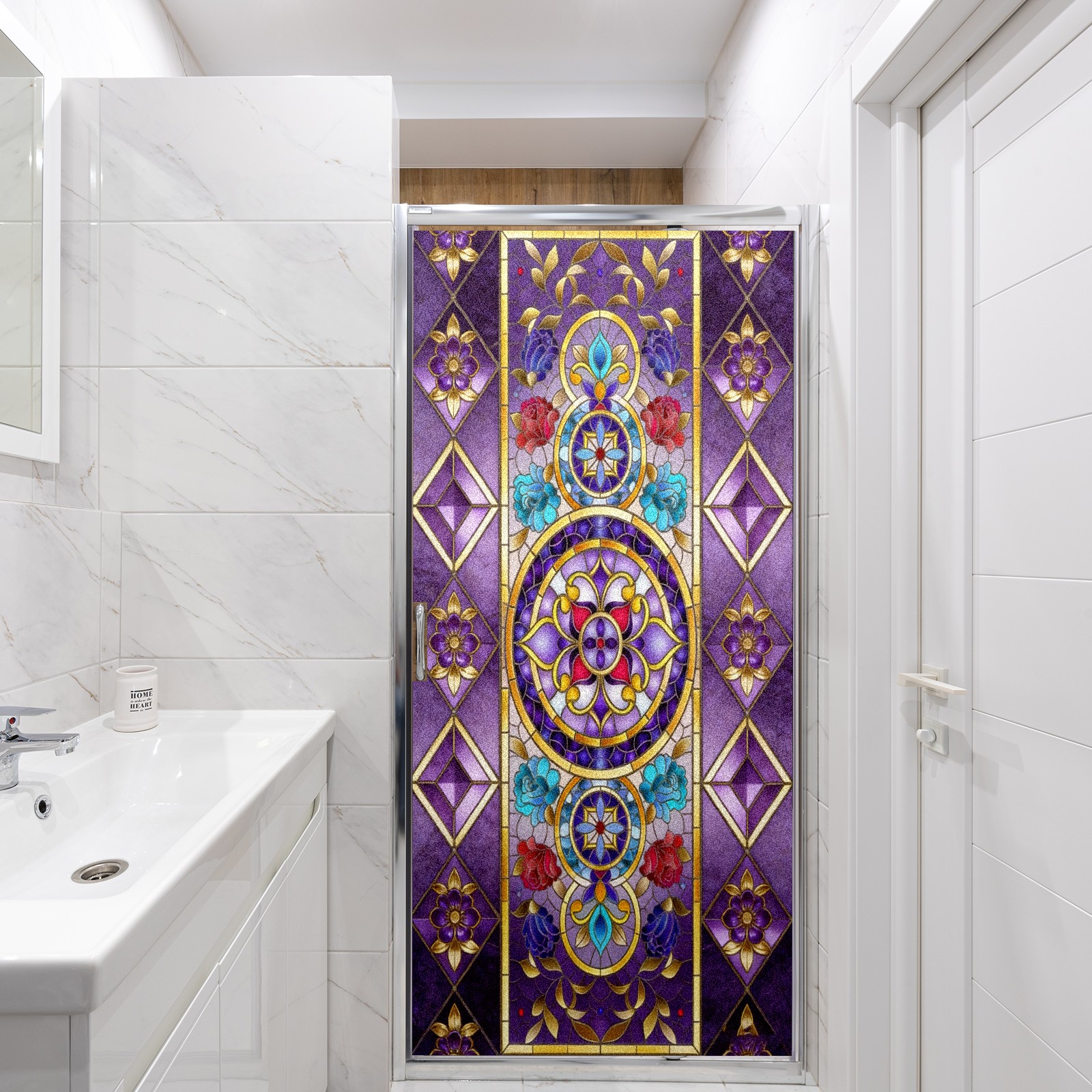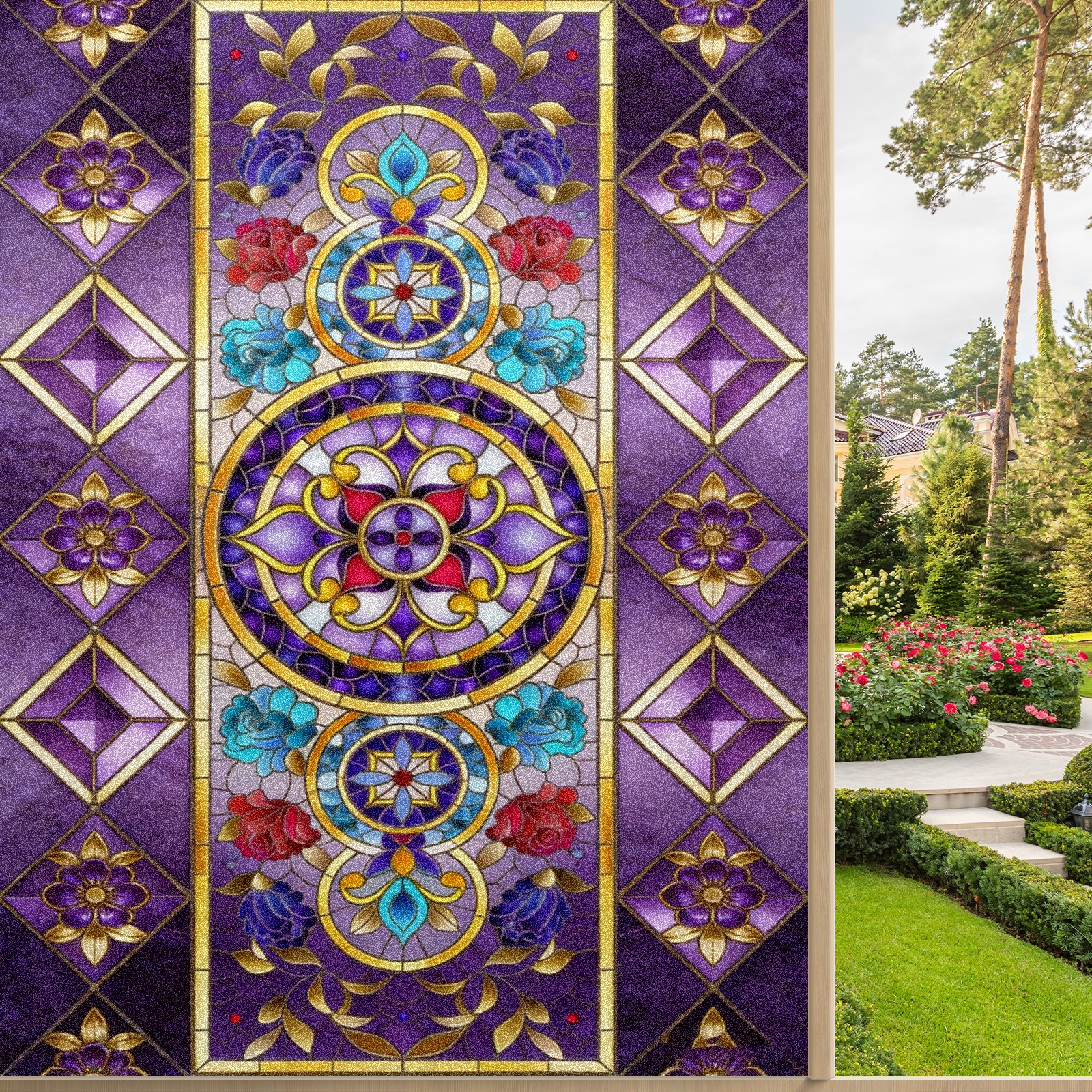 Counullo Frosted Glass Privacy Window Film, Exquisite Floral Purple Non Adhesive Static Cling, Reusable PET Window Sticker for Bathroom Shower Door Bedroom Office Living Room (17.7x23.6in)