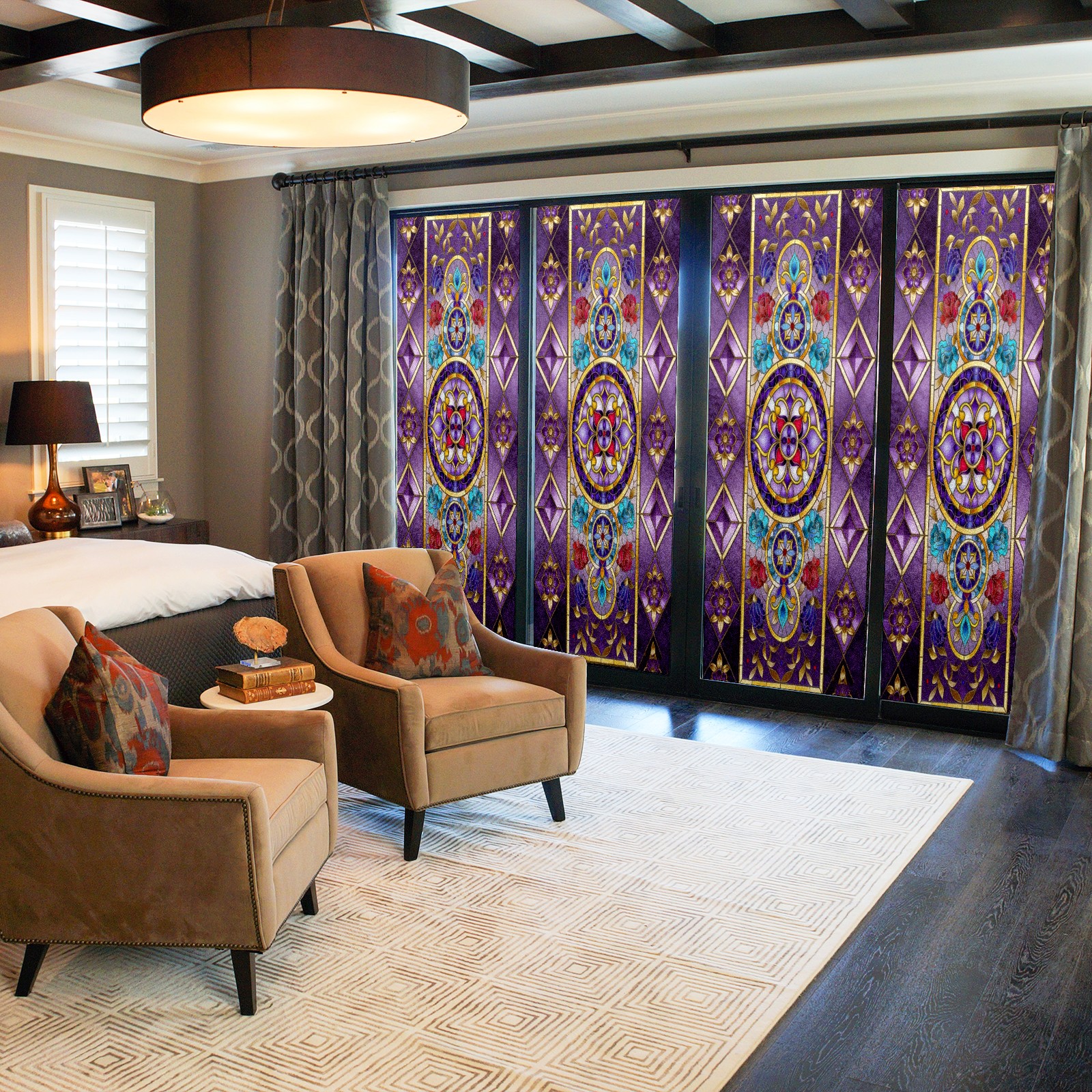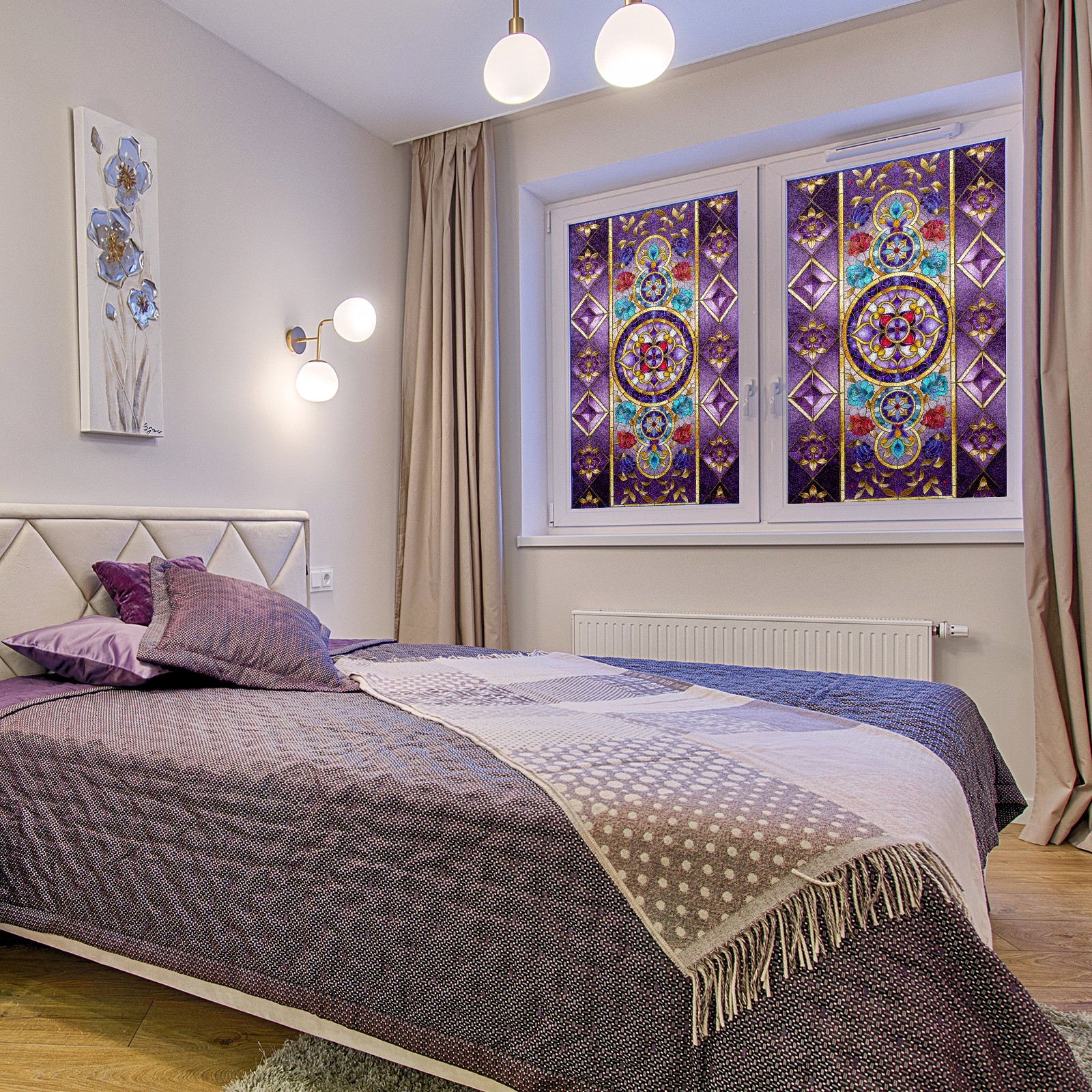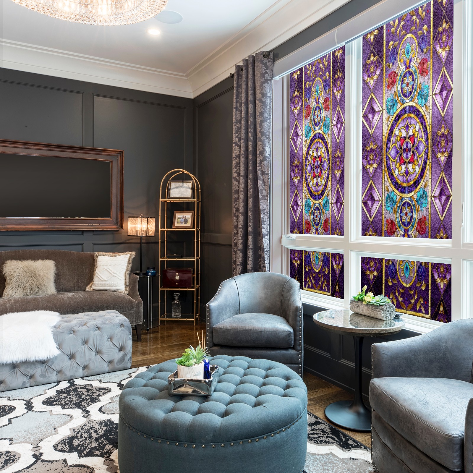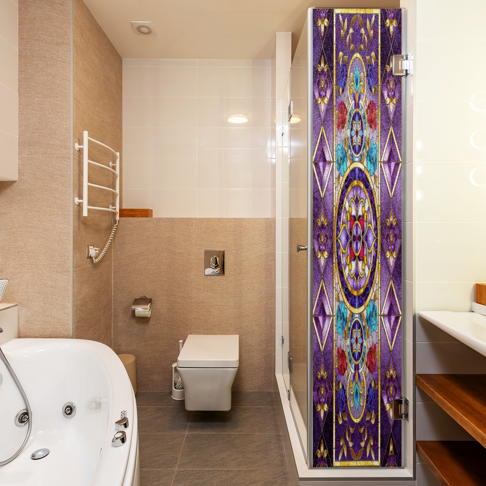 Counullo Frosted Glass Privacy Window Film, Exquisite Floral Purple Non Adhesive Static Cling, Reusable PET Window Sticker for Bathroom Shower Door Bedroom Office Living Room (17.7x23.6in)
