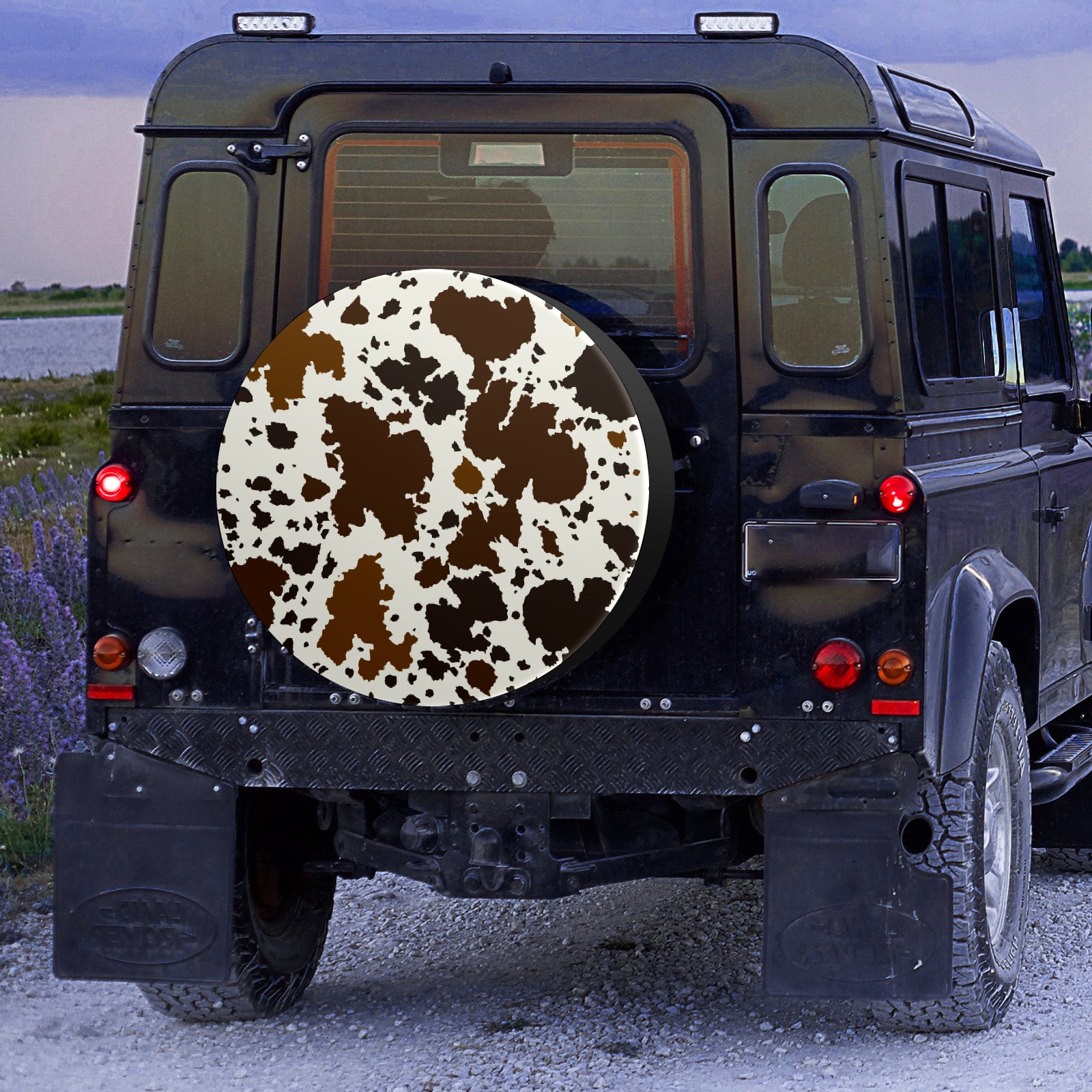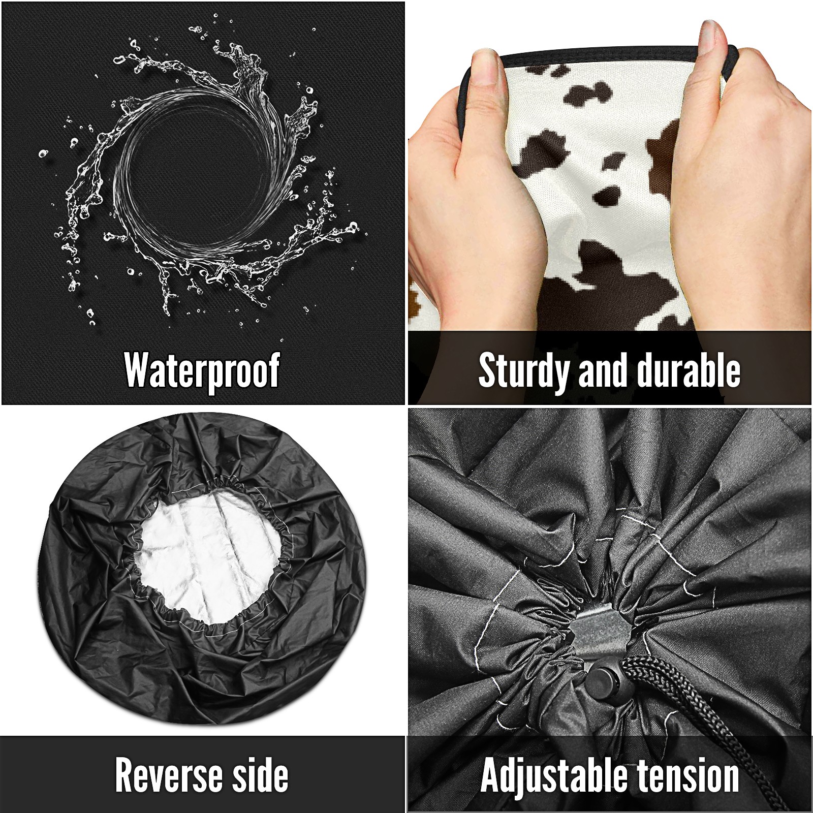Универсальные водонепроницаемые чехлы для шин - односторонние полипропиленовые защитные колпаки для колес с регулируемой тесьмой, подходят для Western Brown Black Cow Print