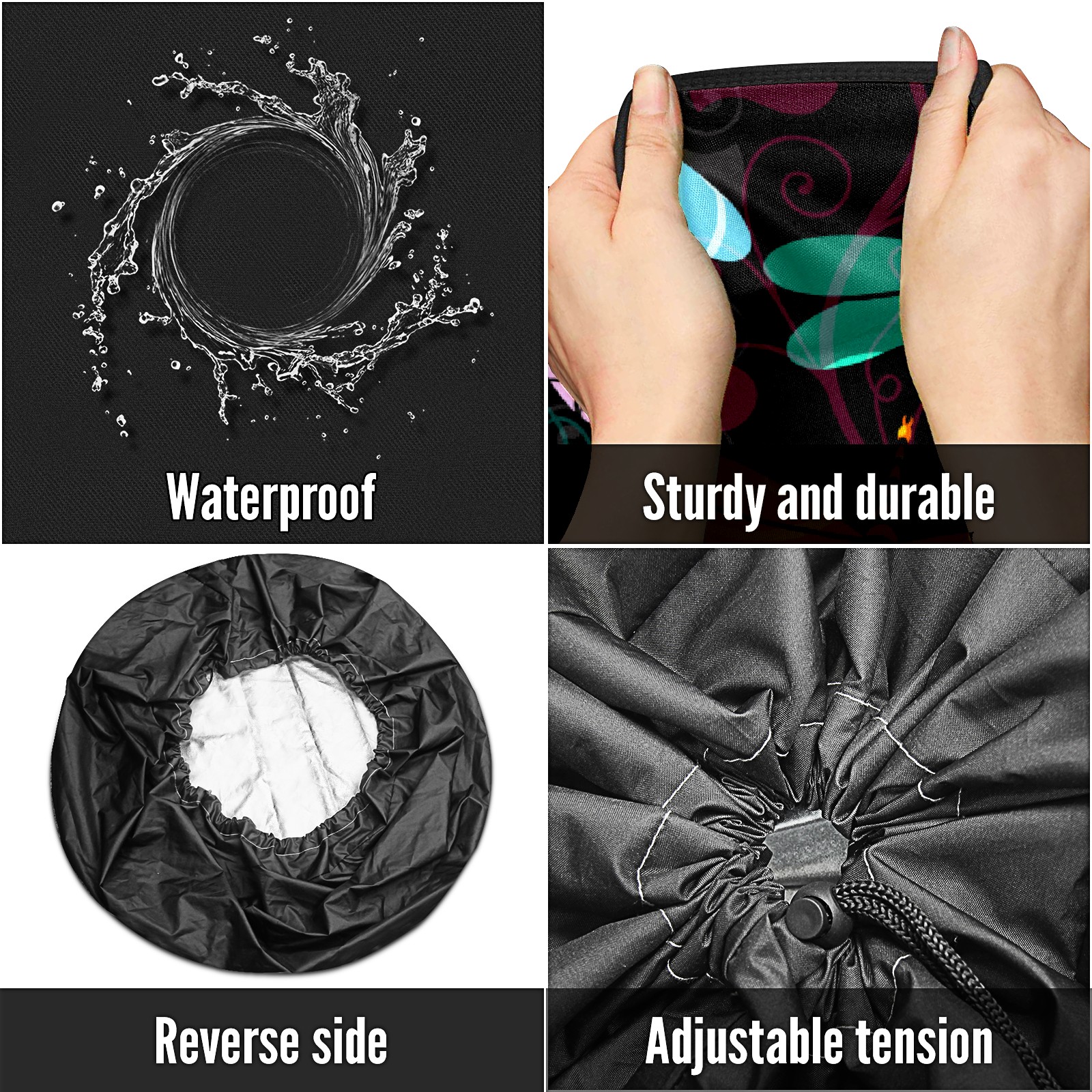 • Улучшите внешний вид вашего автомобиля и защитите шины с помощью этих универсальных водонепроницаемых чехлов для шин. Изготовленные из прочного полиэстера, они имеют водоотталкивающее покрытие, которое сохраняет шины чистыми и сухими в любых погодных условиях. Регулируемый нейлоновый шнурок обеспечивает плотное прилегание на различных размерах колес, делая установку быстрой и легкой. Односторонняя печать добавляет стильный акцент, а черные боковые панели предлагают элегантный, универсальный дизайн, который подходит для любого автомобиля. Идеально подходит для автомобилей, джипов, RVs, SUVs и многое другое, эти чехлы идеальны как для повседневного использования, так и для хранения. Лёгкие и складные, они легко хранятся, когда не нужны. Держите запасные шины в отличном состоянии и улучшите внешний вид вашего автомобиля с этими практичными и стильными чехлами. защитные колпаки для колес.