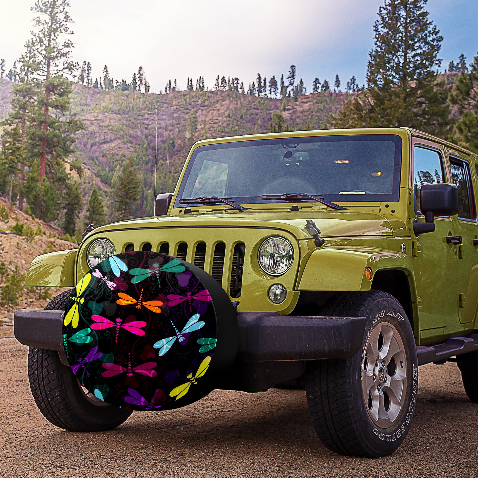 Универсальные водонепроницаемые чехлы для шин - односторонние полипропиленовые защитные колпаки для колес с регулируемой тесьмой, подходят для Colorful Insect Dragonfly Pattern