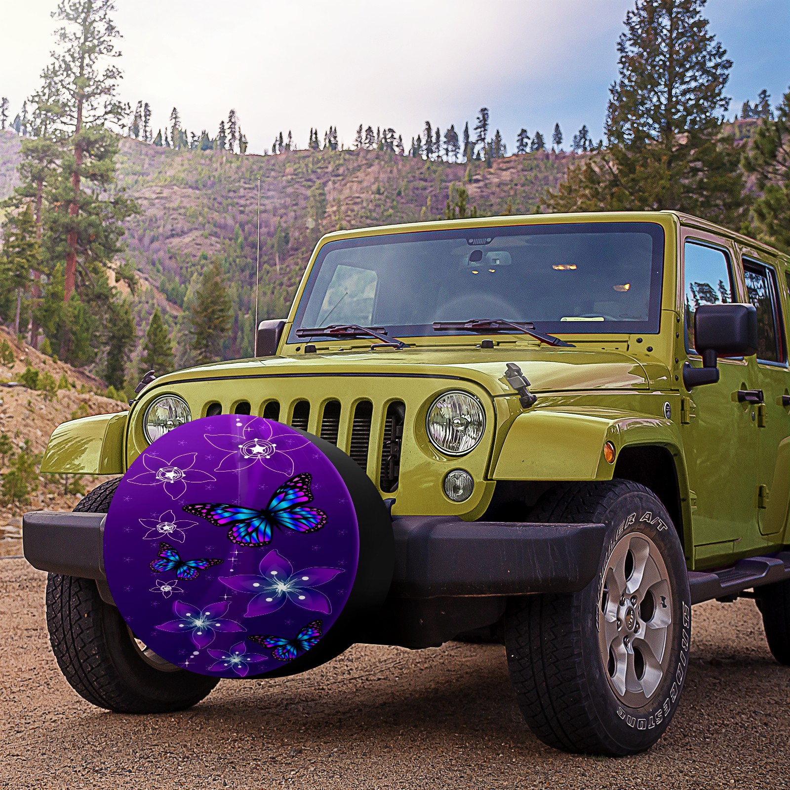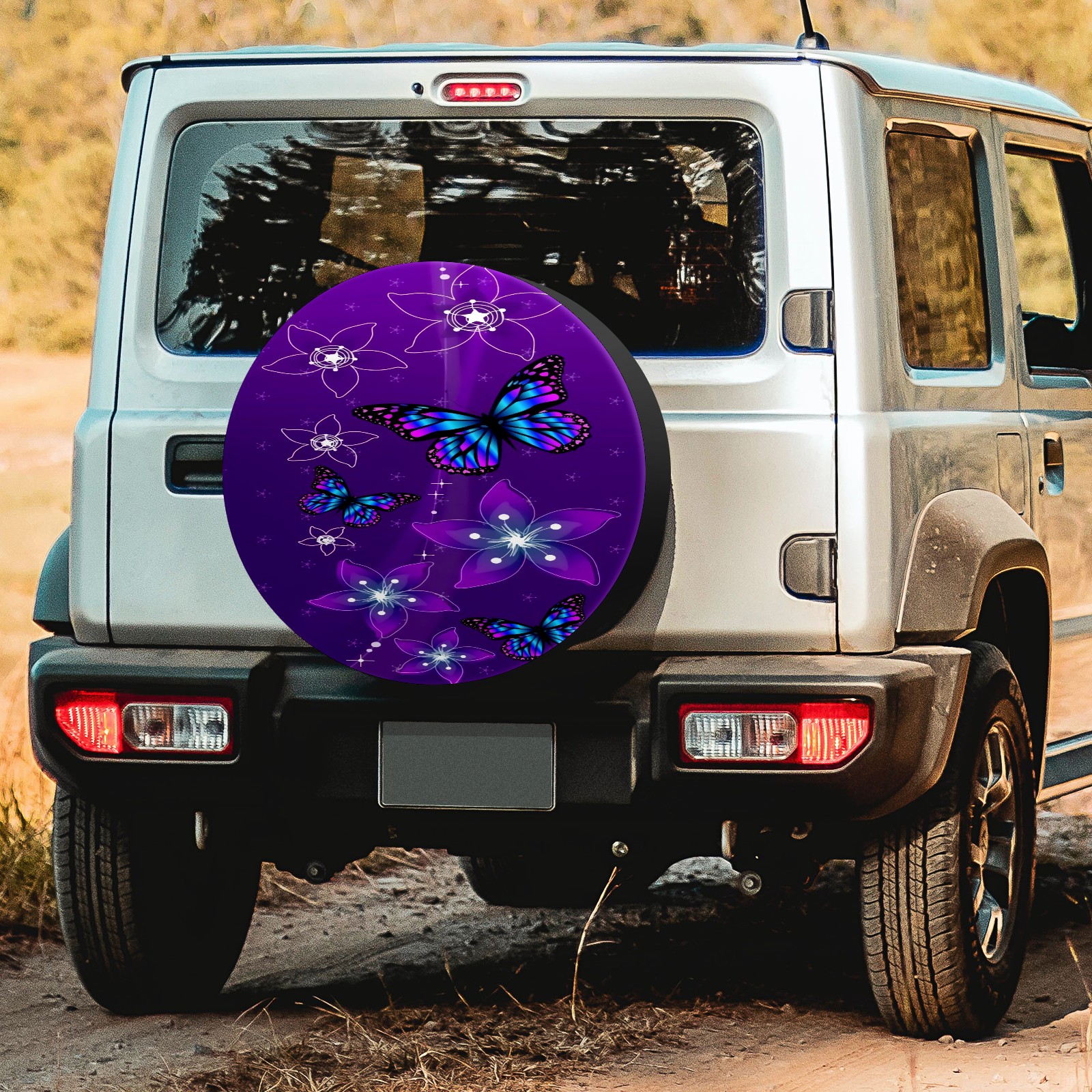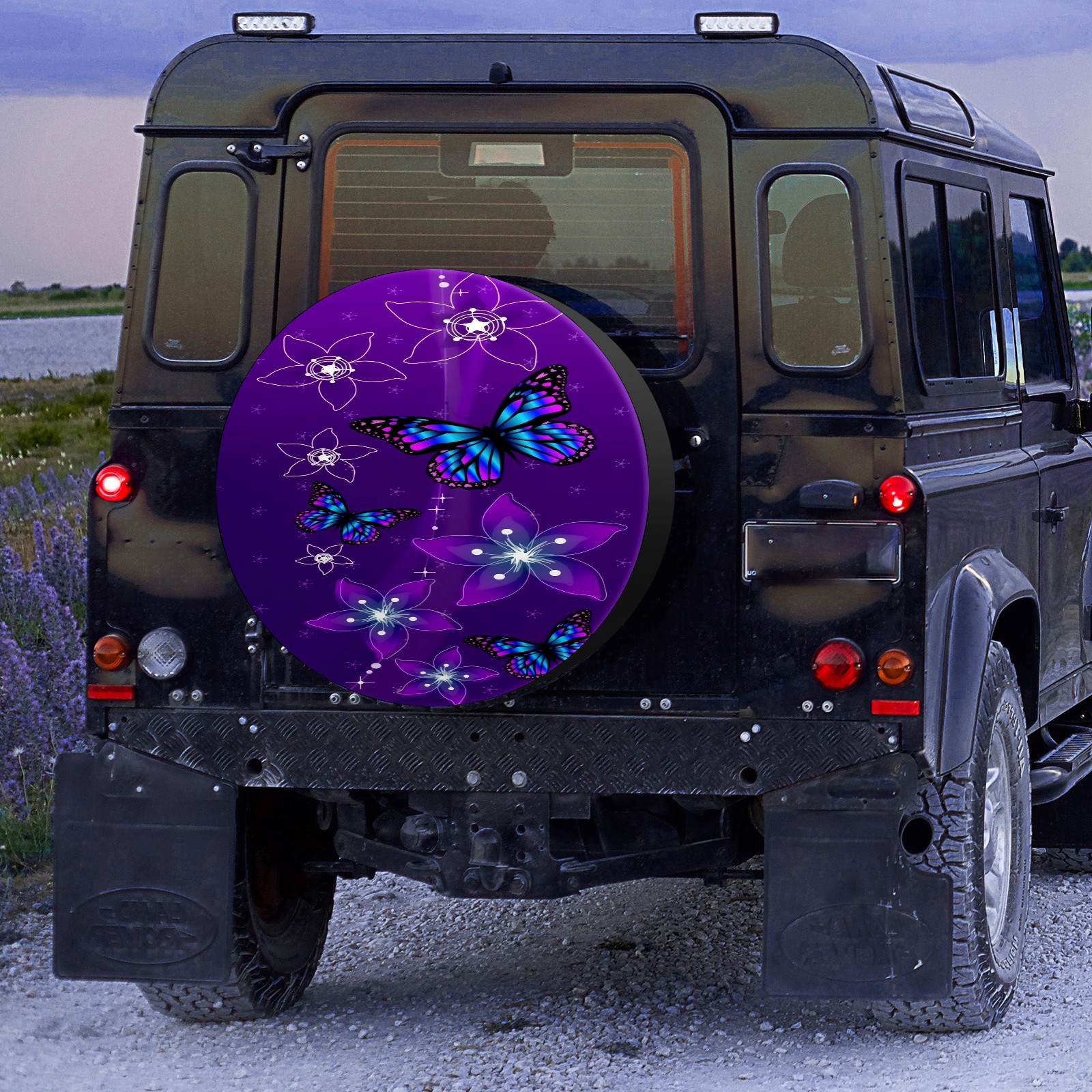 Универсальные водонепроницаемые чехлы для шин - односторонние полипропиленовые защитные колпаки для колес с регулируемой тесьмой, подходят для Blue Butterfly Floral