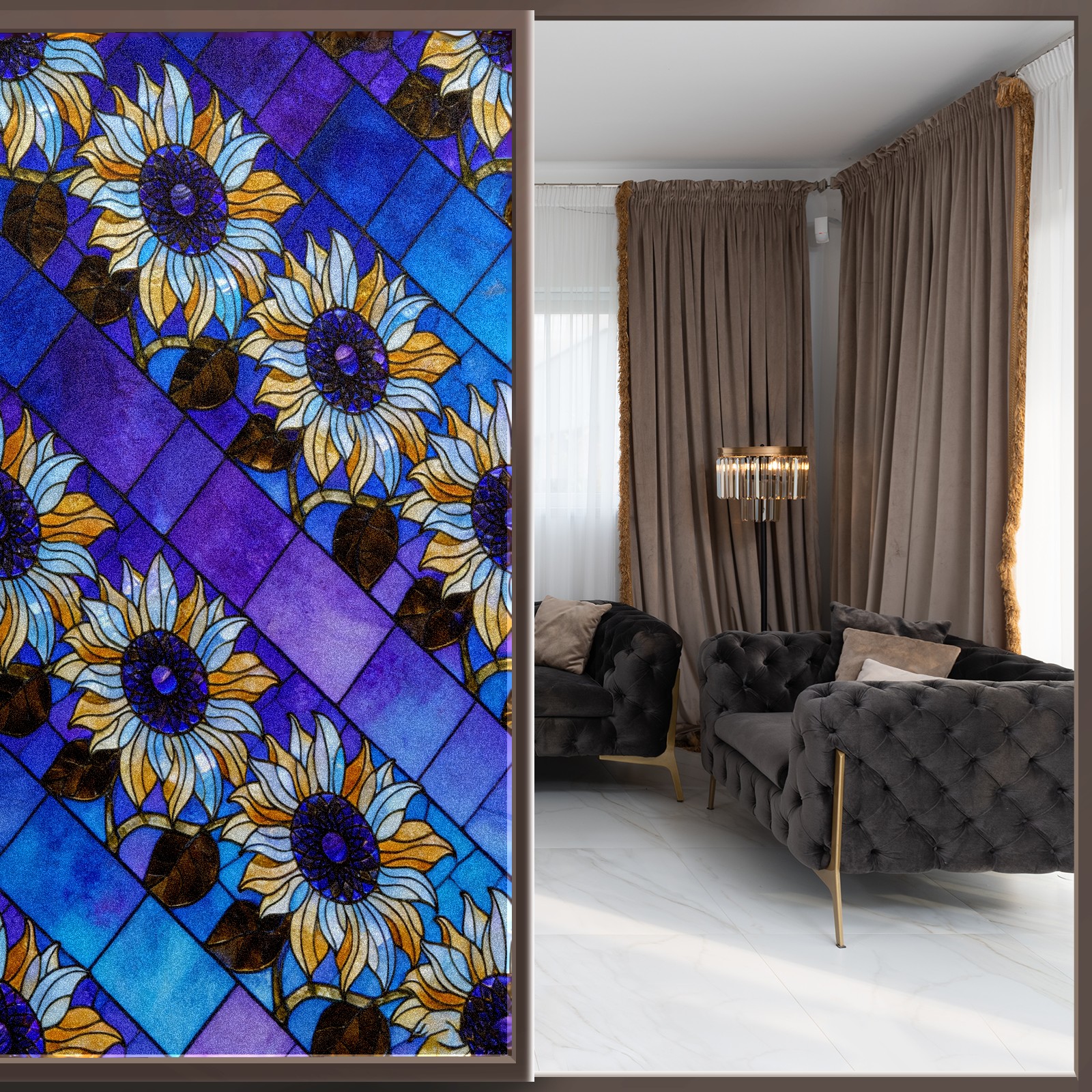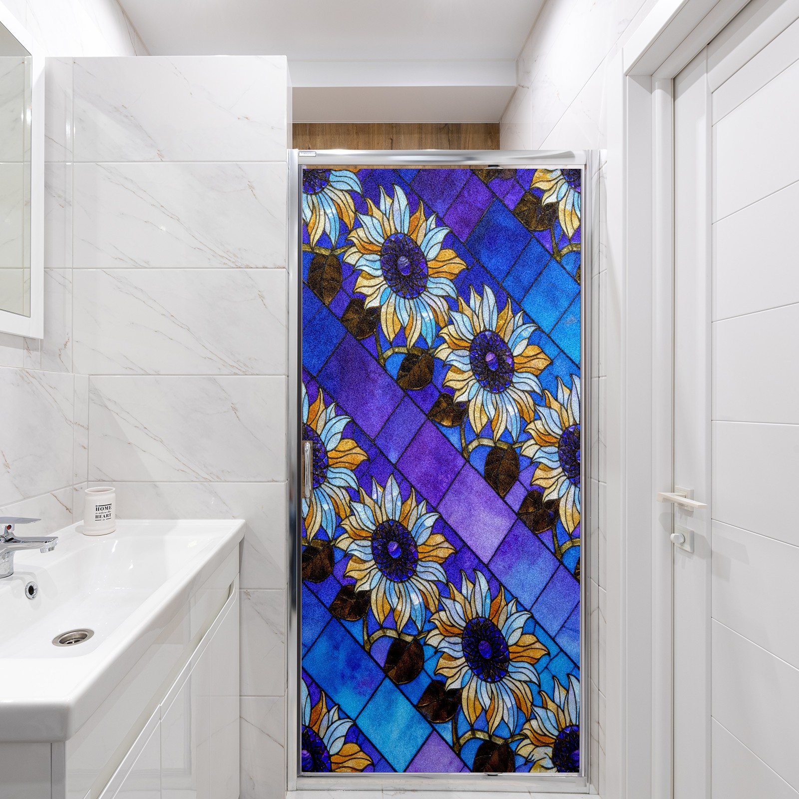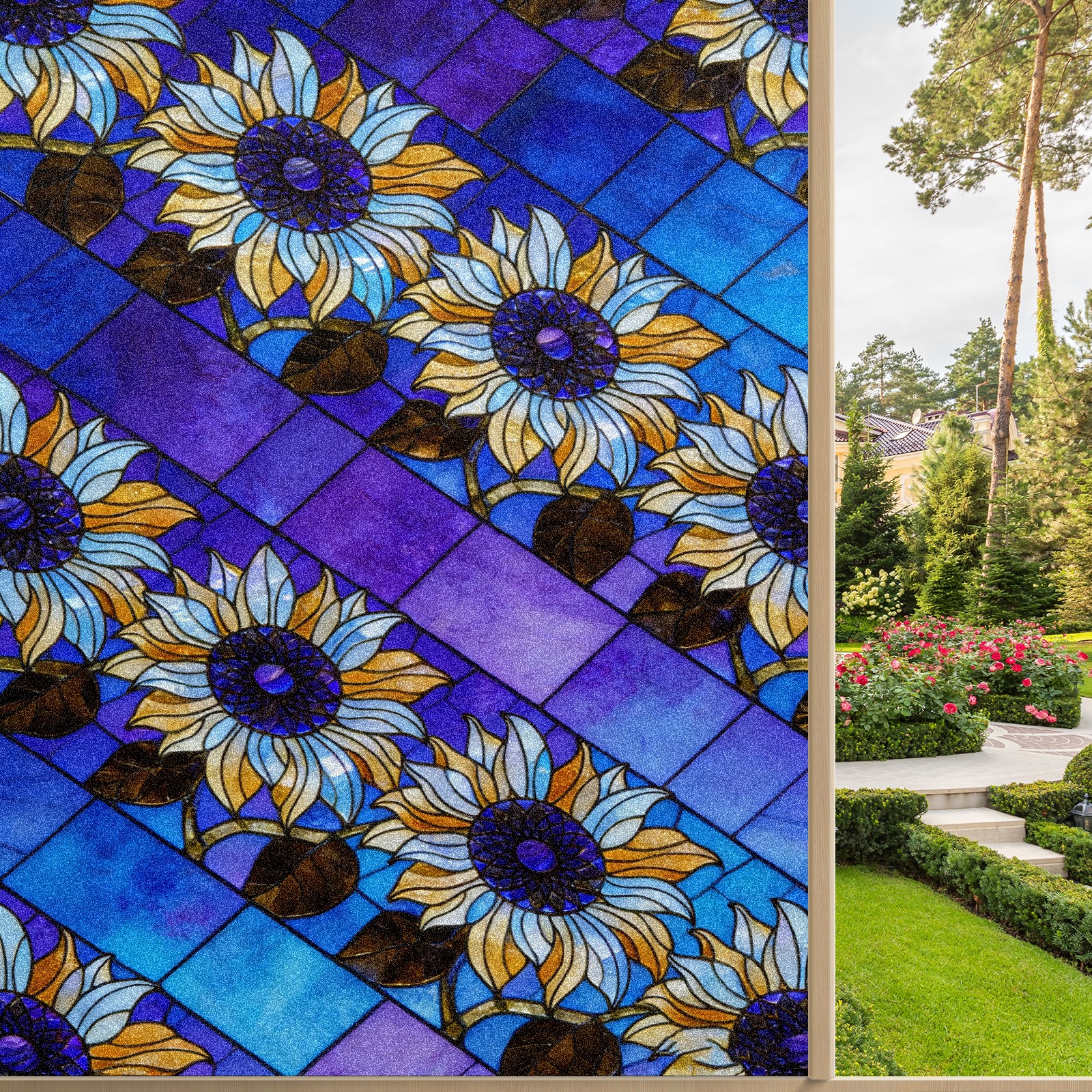 Counullo Frosted Glass Privacy Window Film, Dreamy Sunflower Blue Non Adhesive Static Cling, Reusable PET Window Sticker for Bathroom Shower Door Bedroom Office Living Room (17.7x23.6in)