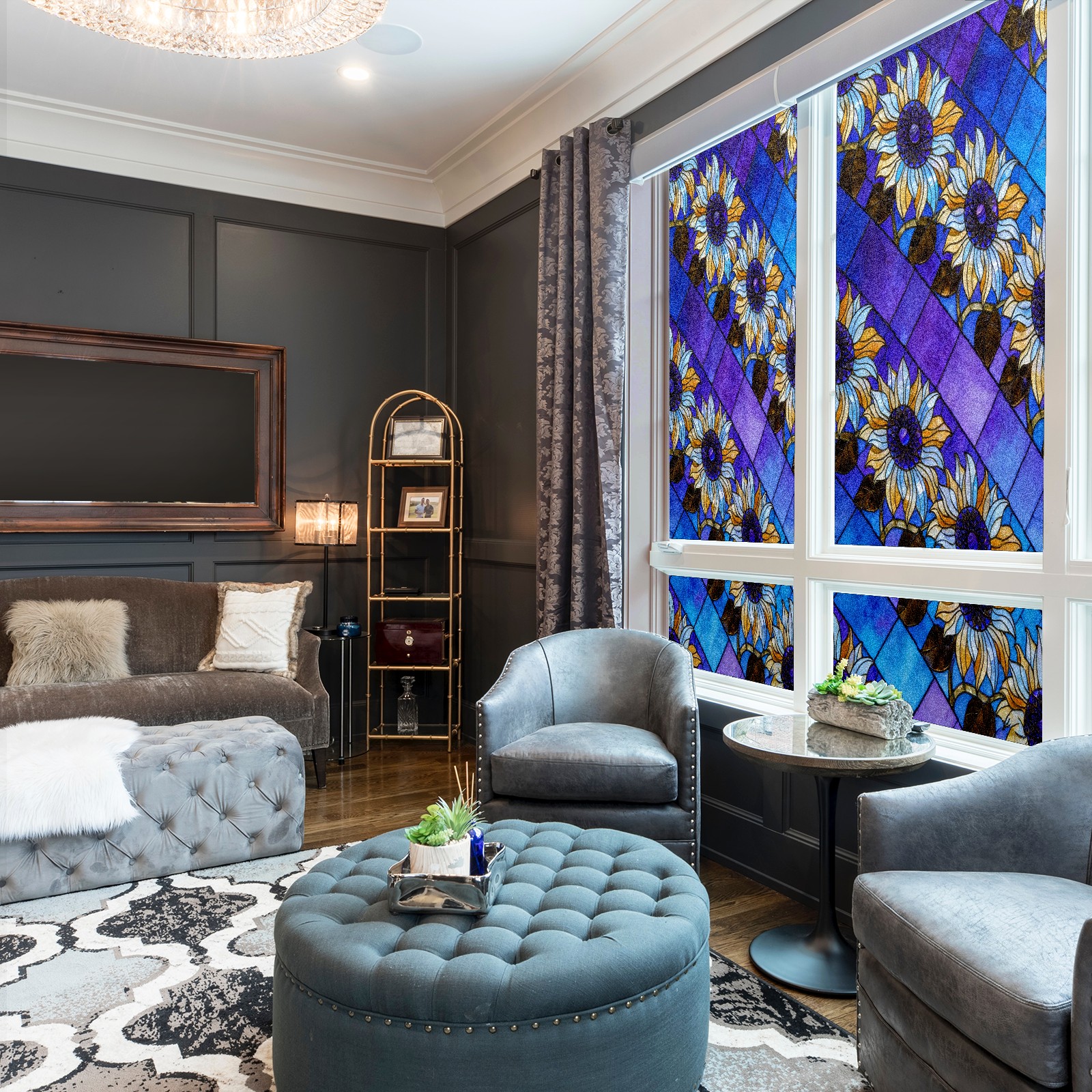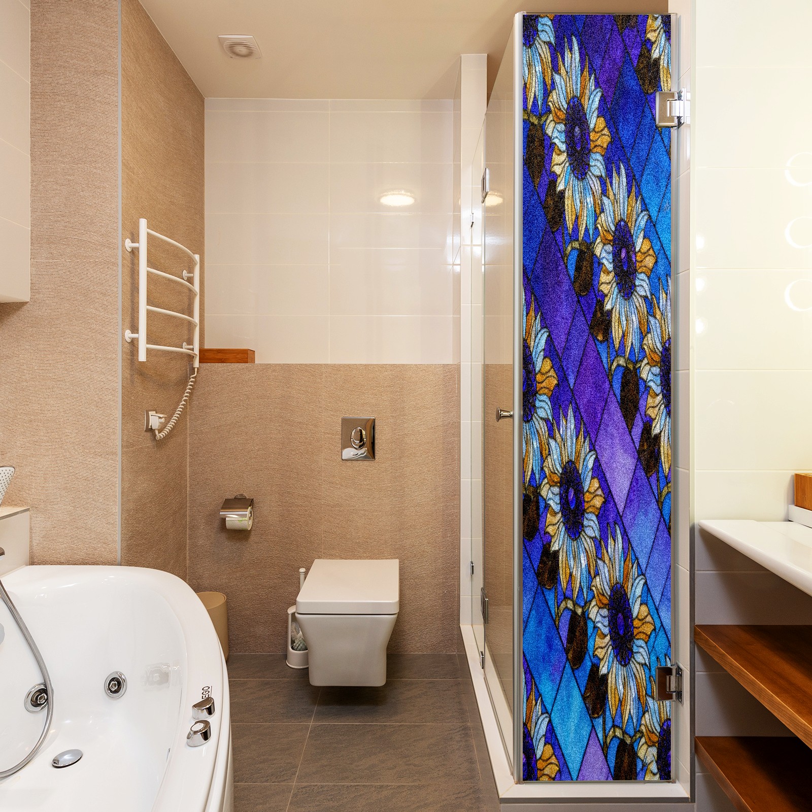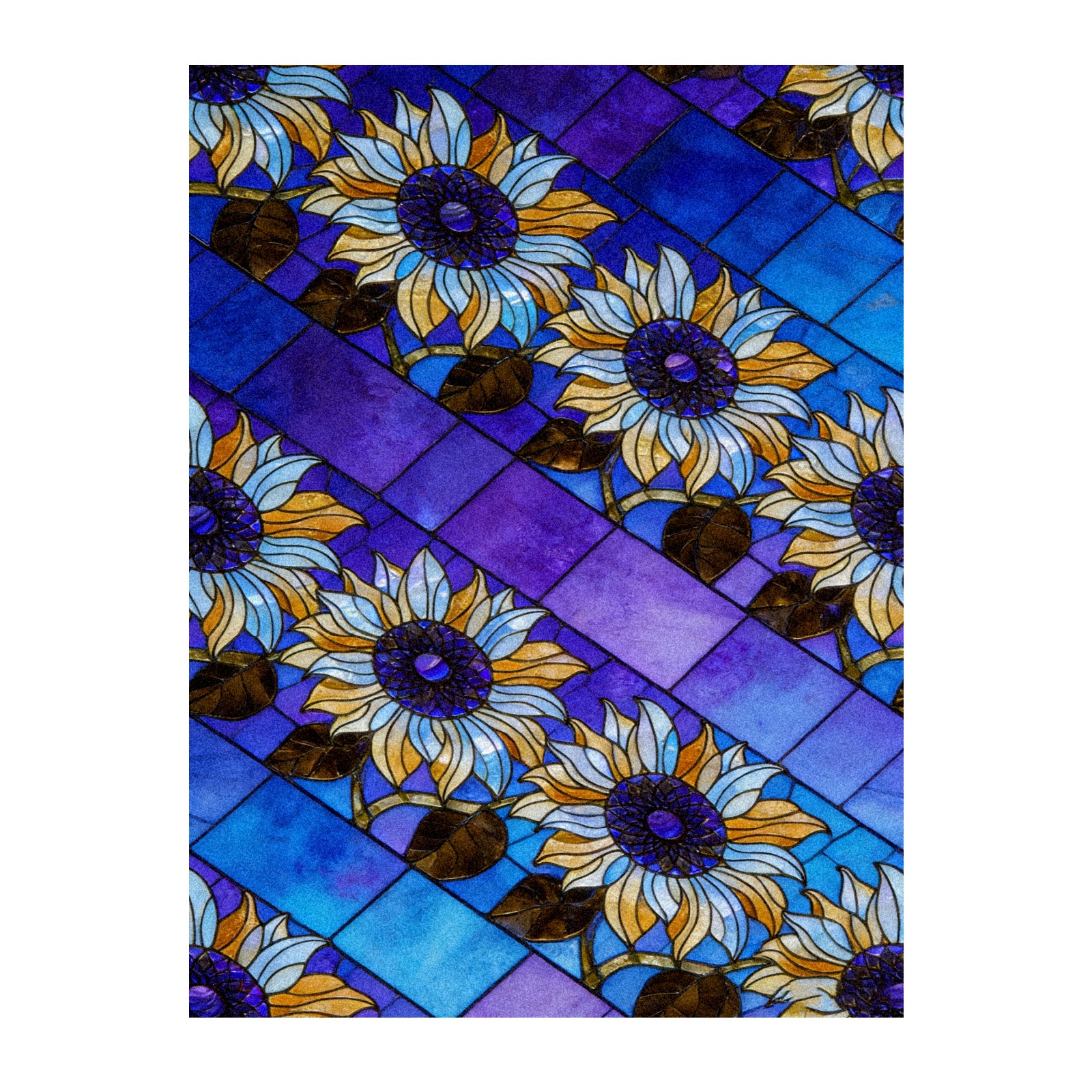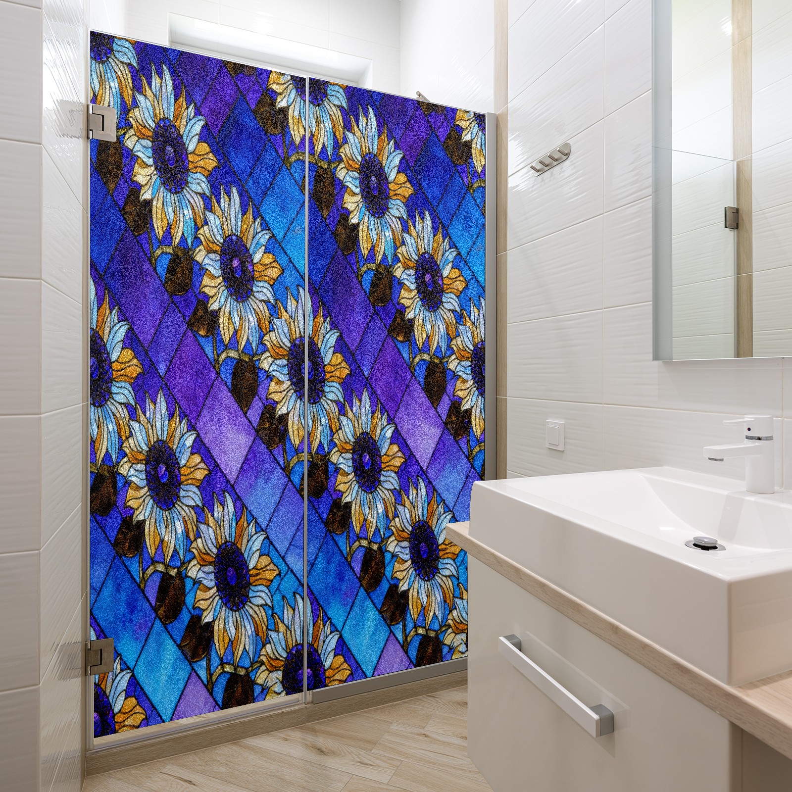 Counullo Frosted Glass Privacy Window Film, Dreamy Sunflower Blue Non Adhesive Static Cling, Reusable PET Window Sticker for Bathroom Shower Door Bedroom Office Living Room (17.7x23.6in)