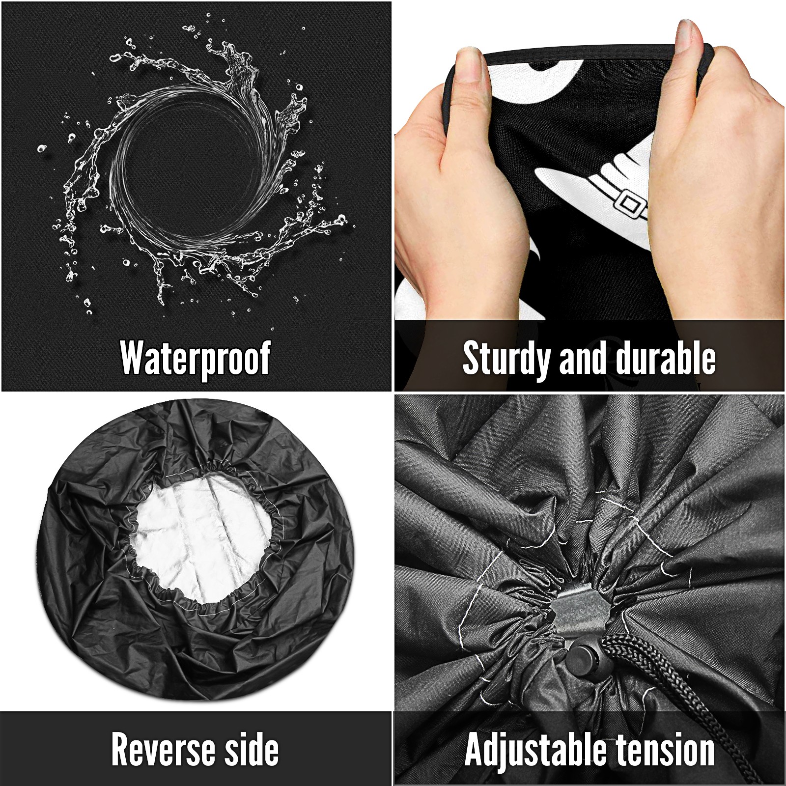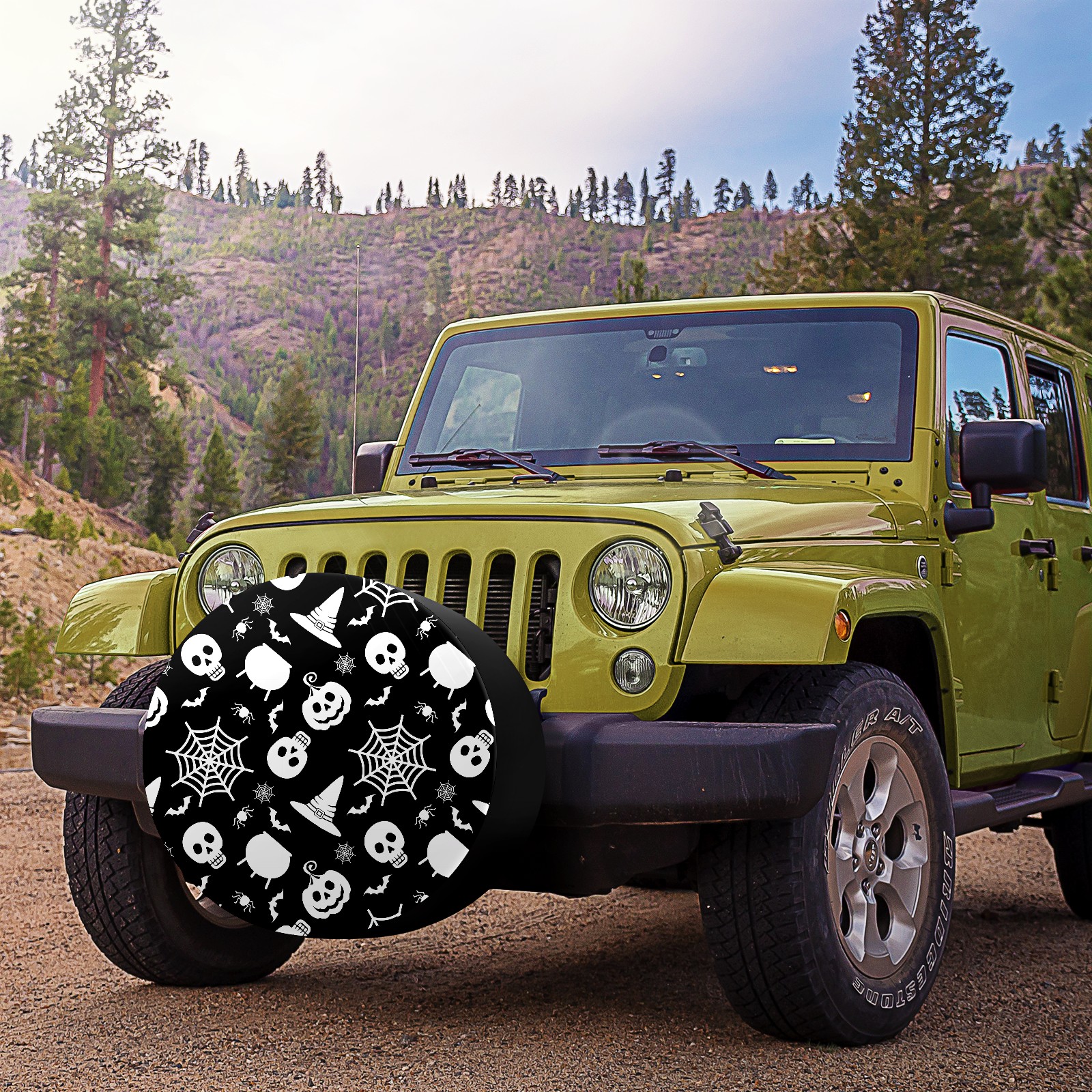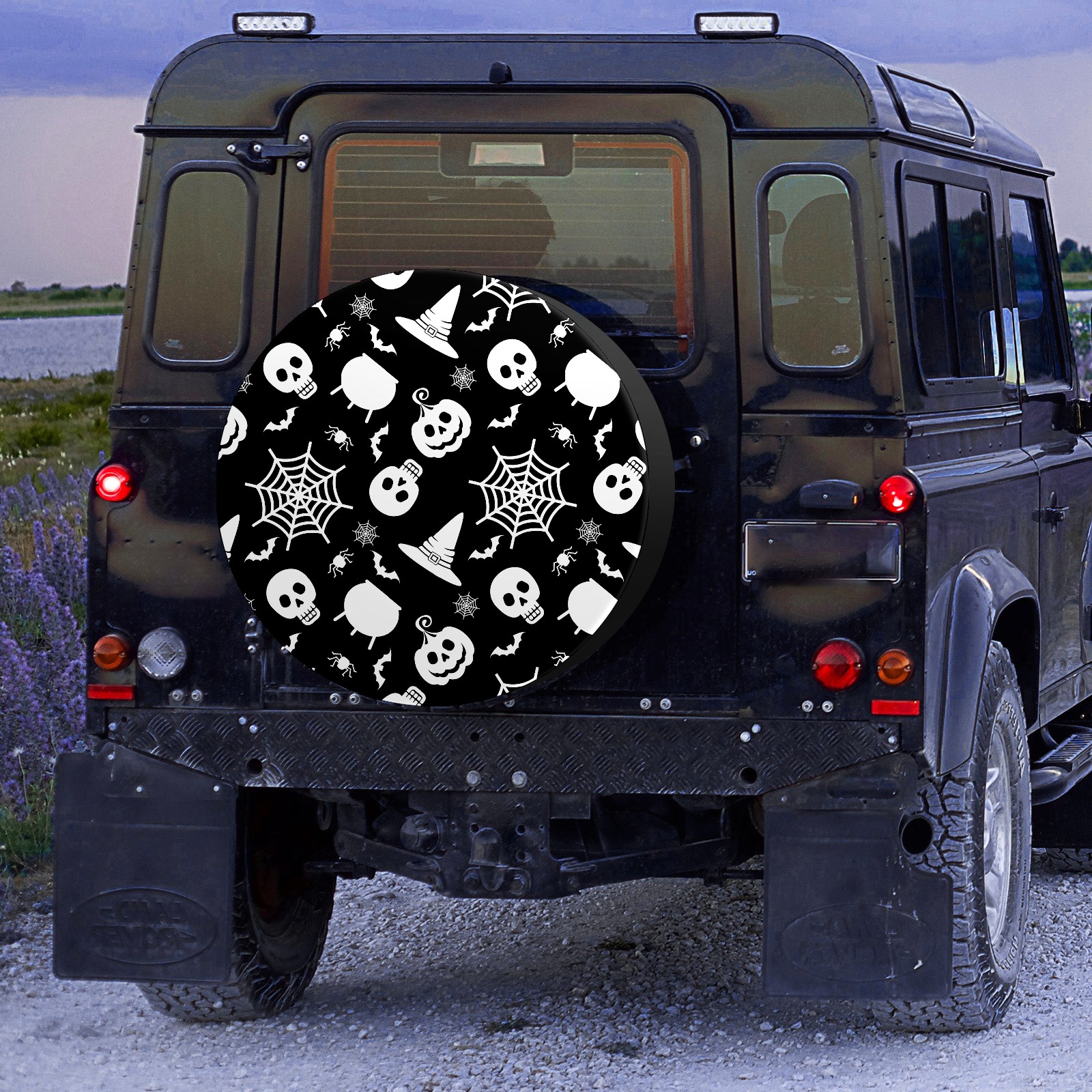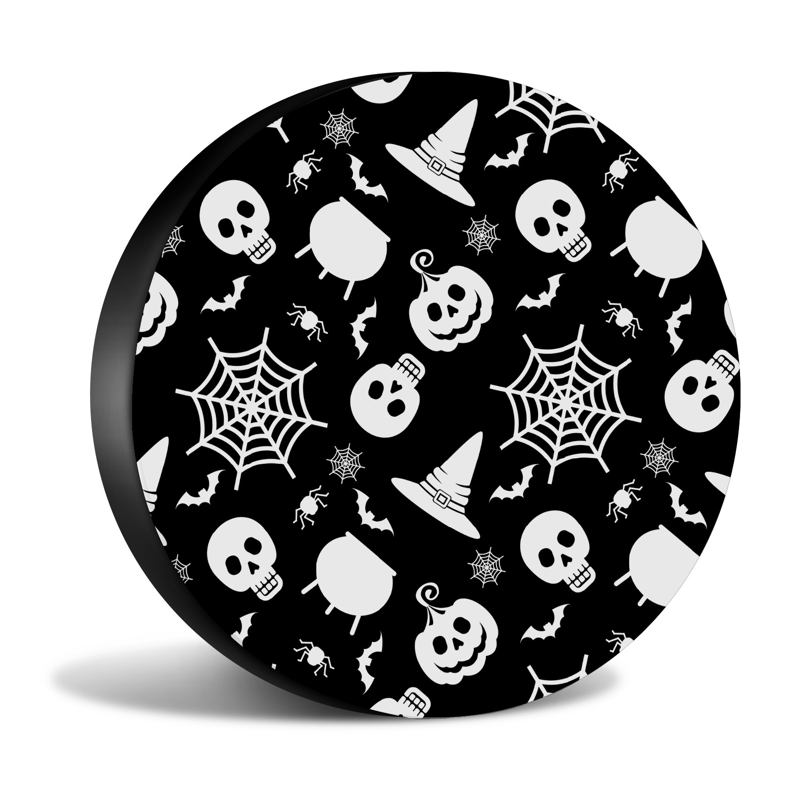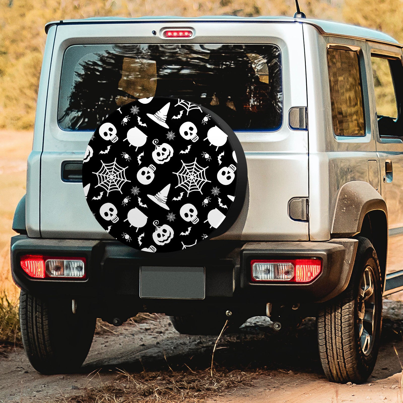 Универсальные водонепроницаемые чехлы для шин - односторонние полипропиленовые защитные колпаки для колес с регулируемой тесьмой, подходят для Halloween Pumpkin Cobweb Skull Pattern