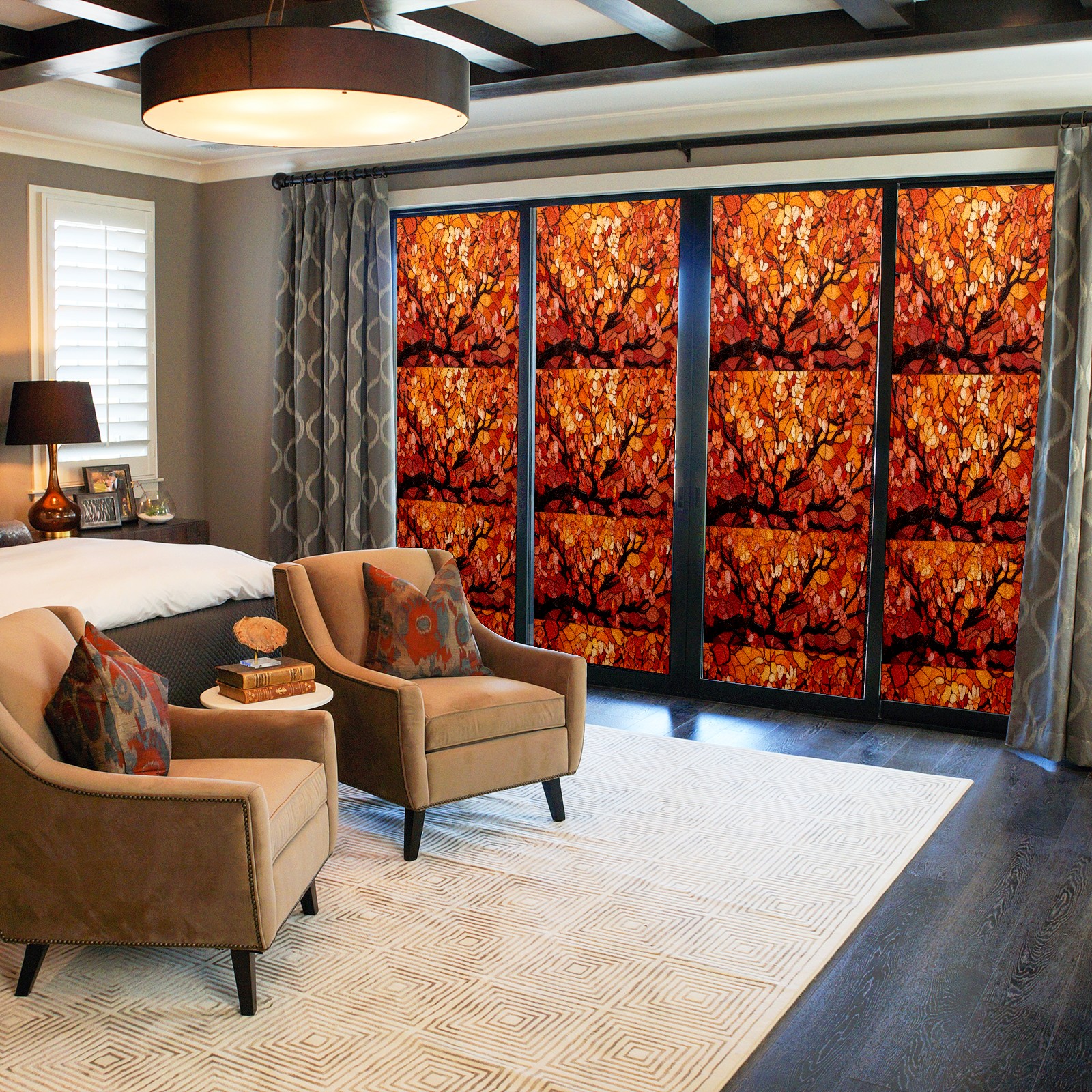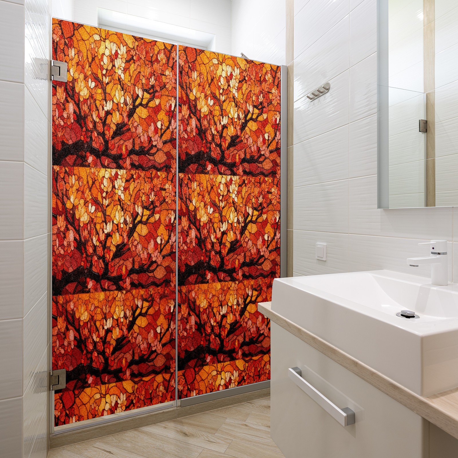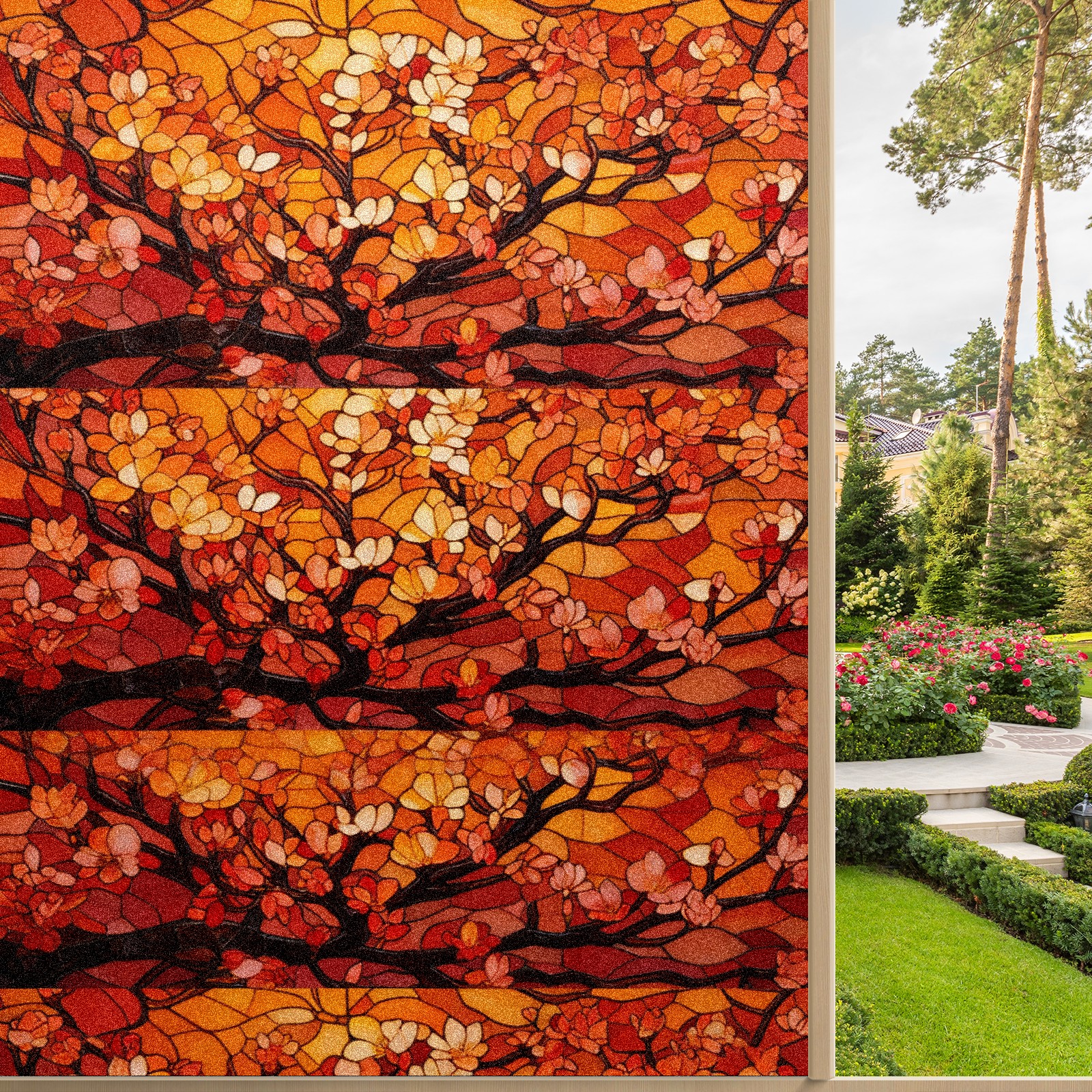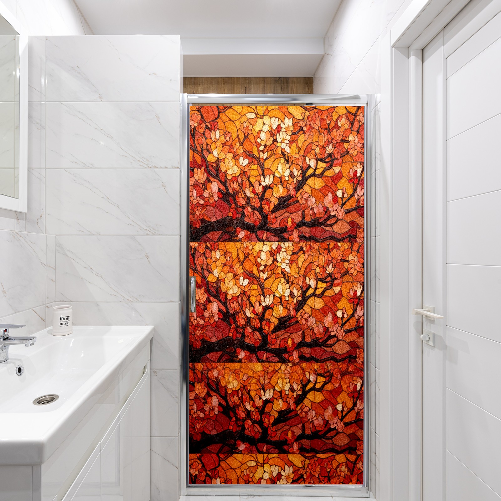 Counullo Frosted Glass Privacy Window Film, Fiery Autumn Leaf Orange Non Adhesive Static Cling, Reusable PET Window Sticker for Bathroom Shower Door Bedroom Office Living Room (17.7x23.6in)