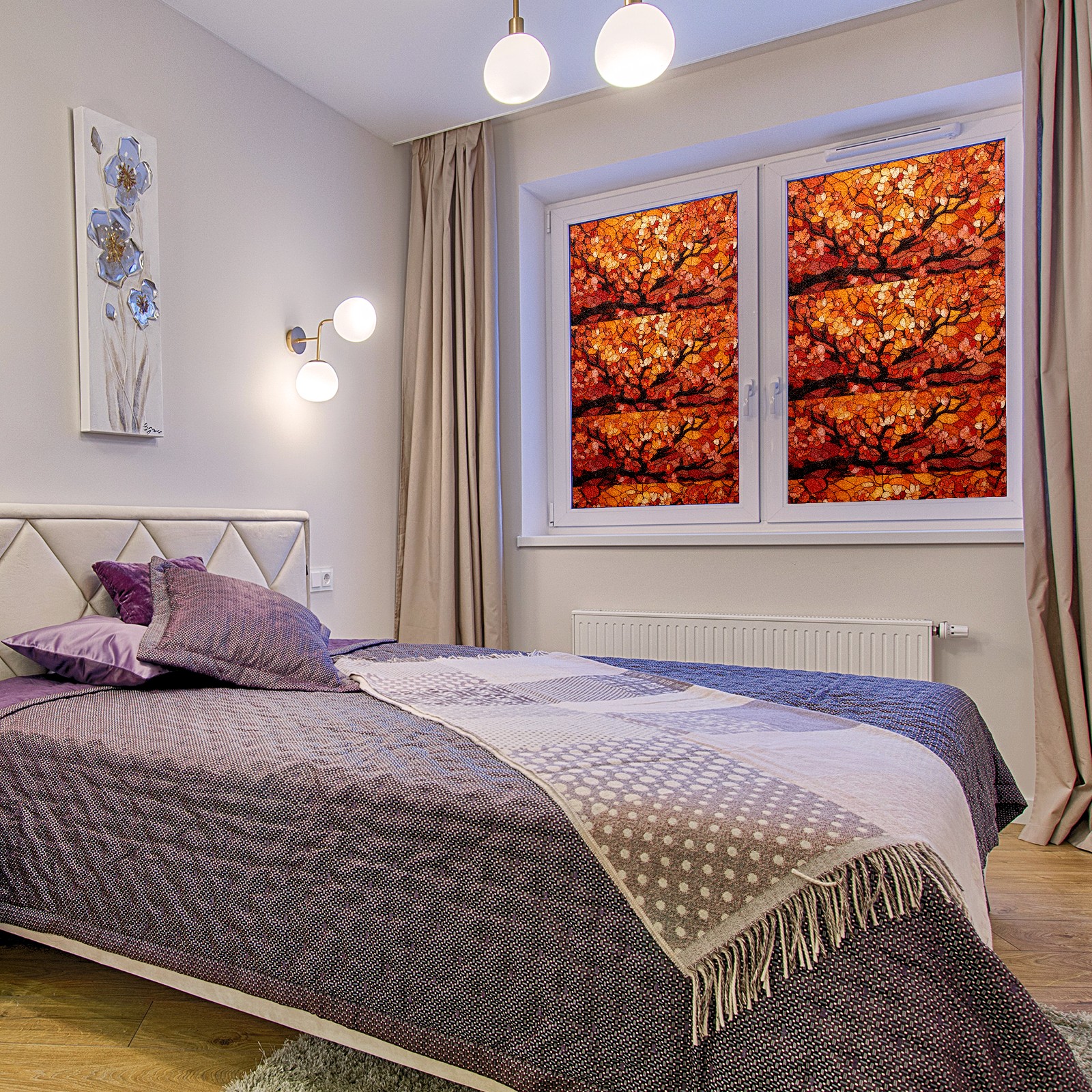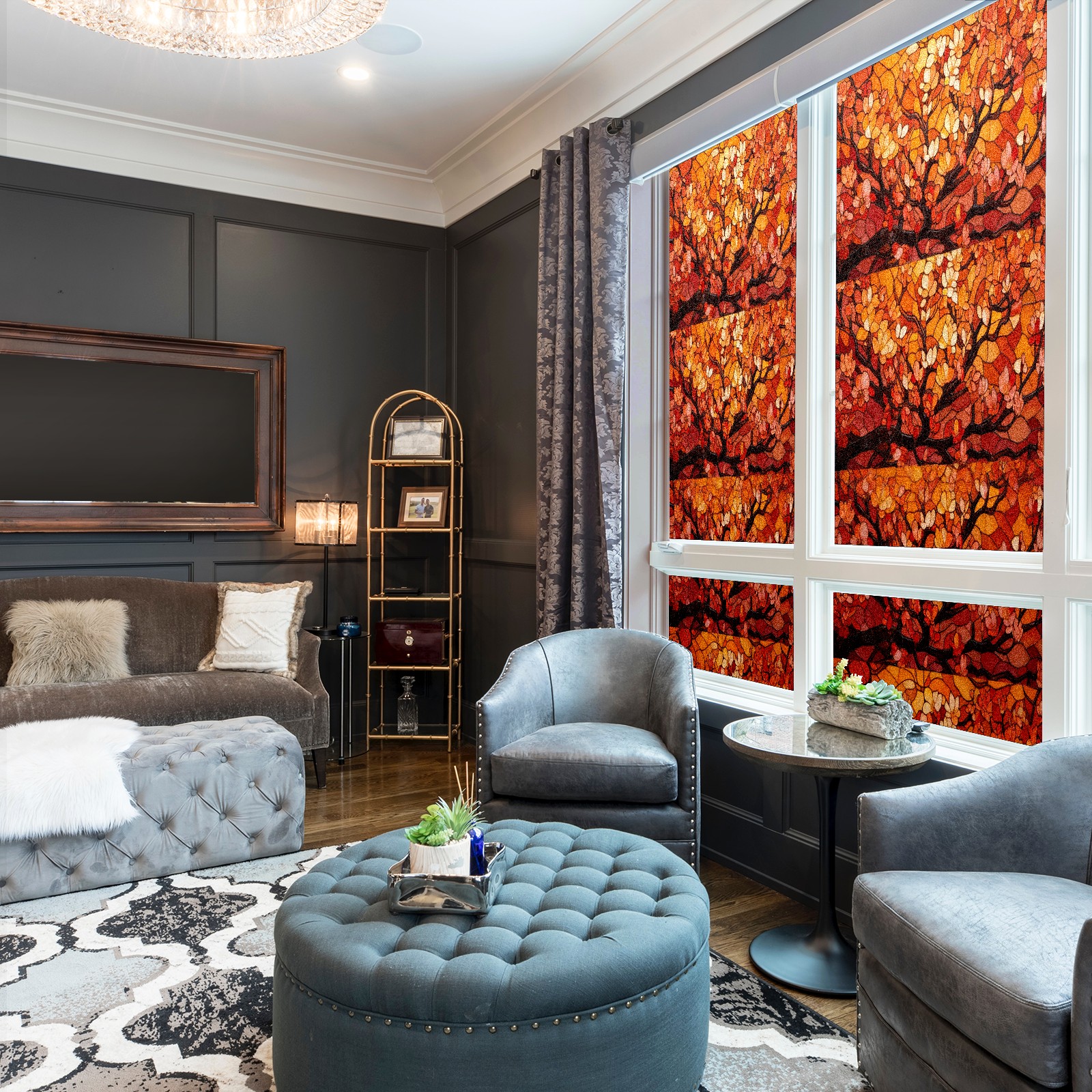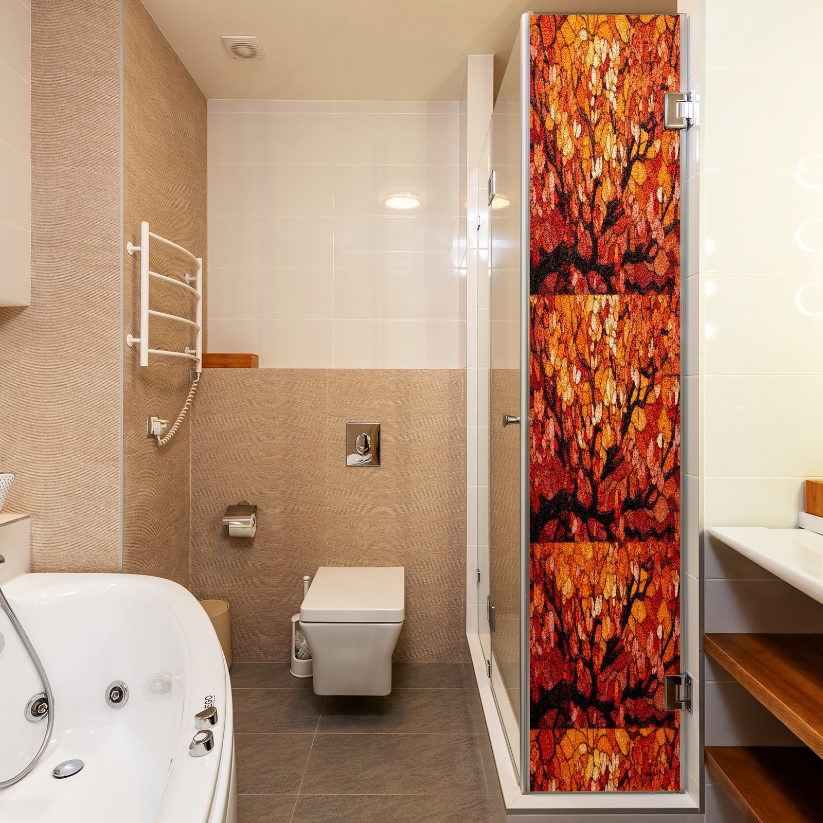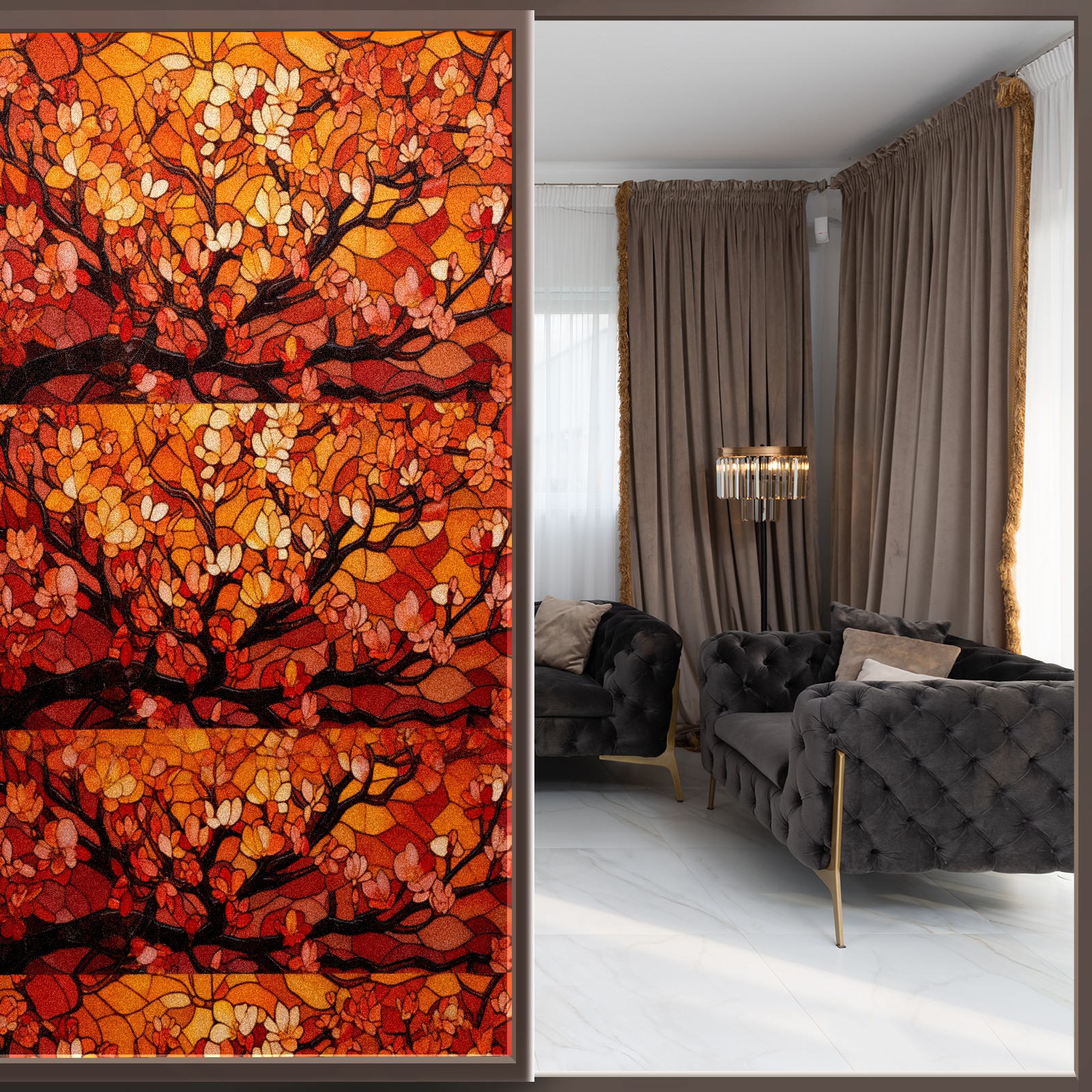 Counullo Frosted Glass Privacy Window Film, Fiery Autumn Leaf Orange Non Adhesive Static Cling, Reusable PET Window Sticker for Bathroom Shower Door Bedroom Office Living Room (17.7x23.6in)