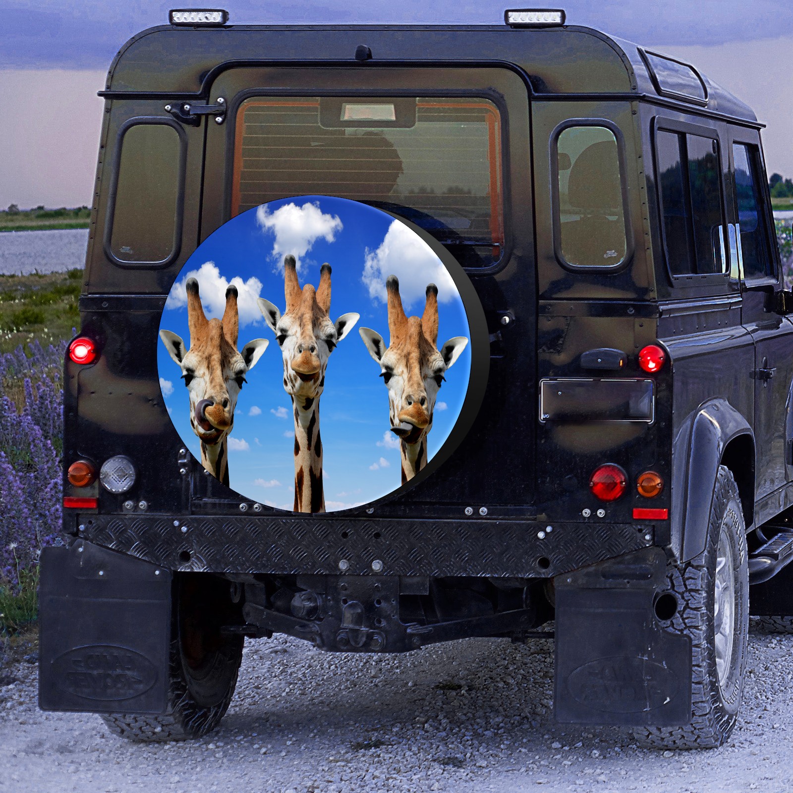 Универсальные водонепроницаемые чехлы для шин - односторонние полипропиленовые защитные колпаки для колес с регулируемой тесьмой, подходят для Three Giraffes Heads Clear Blue Sky