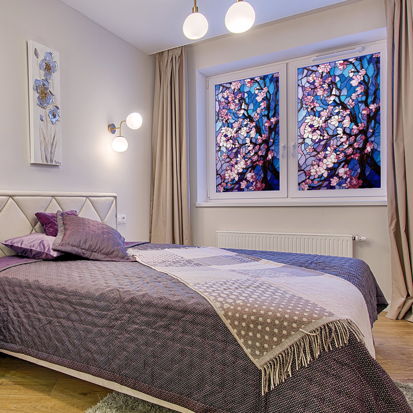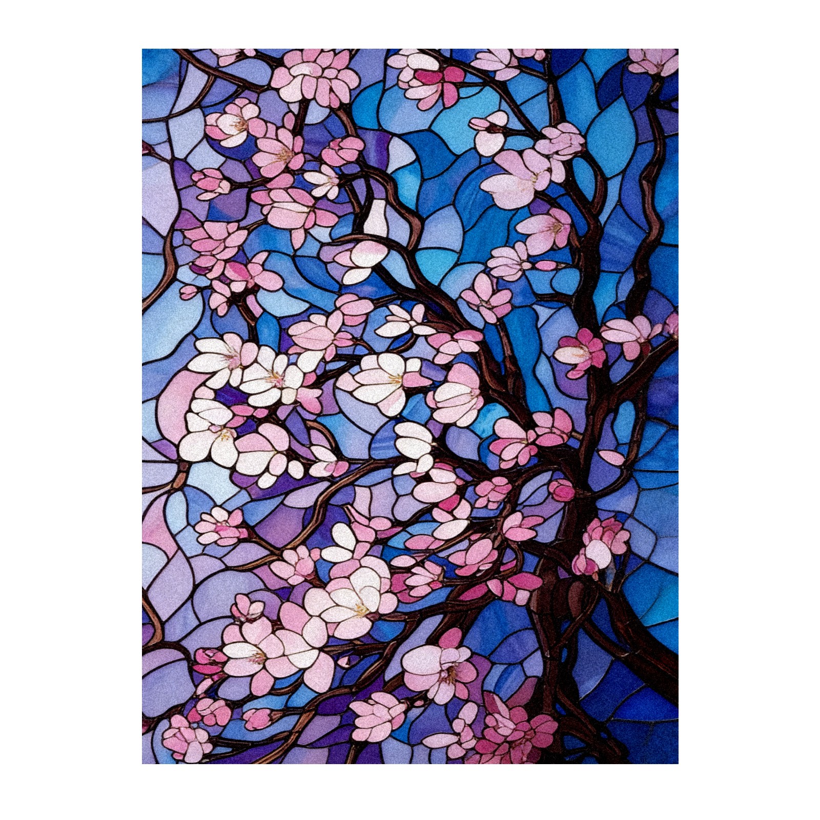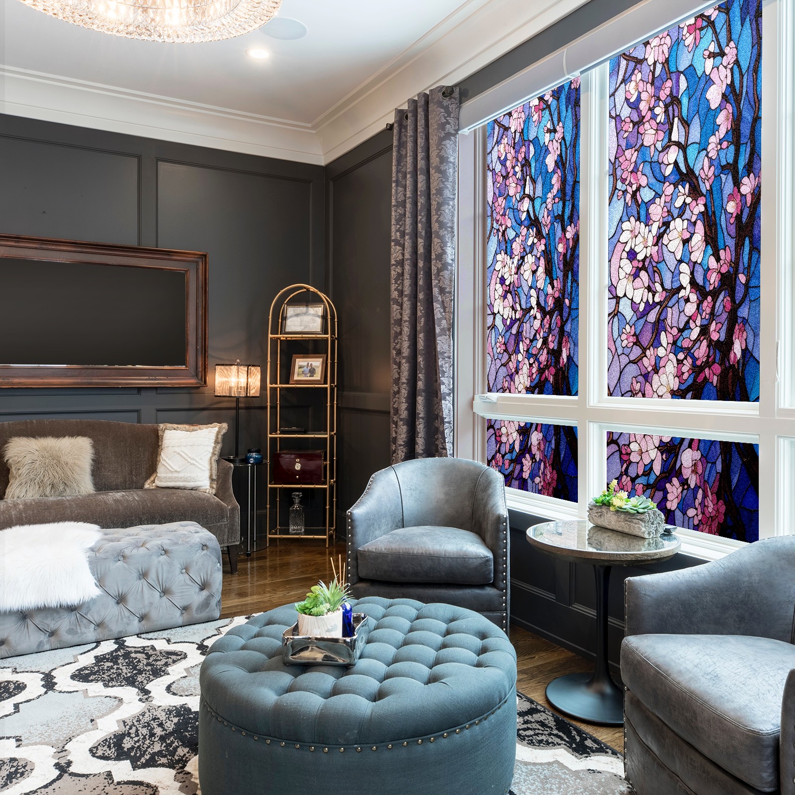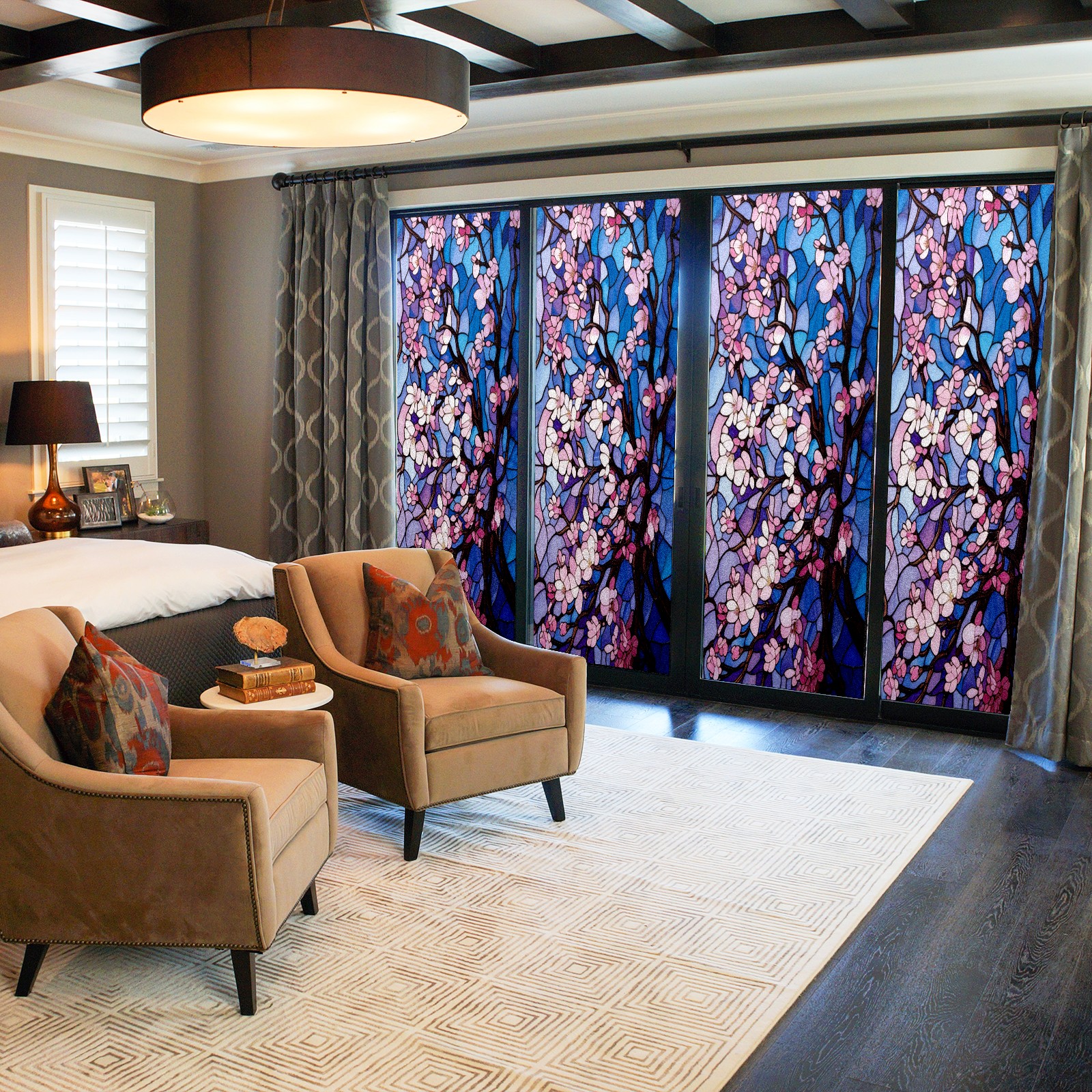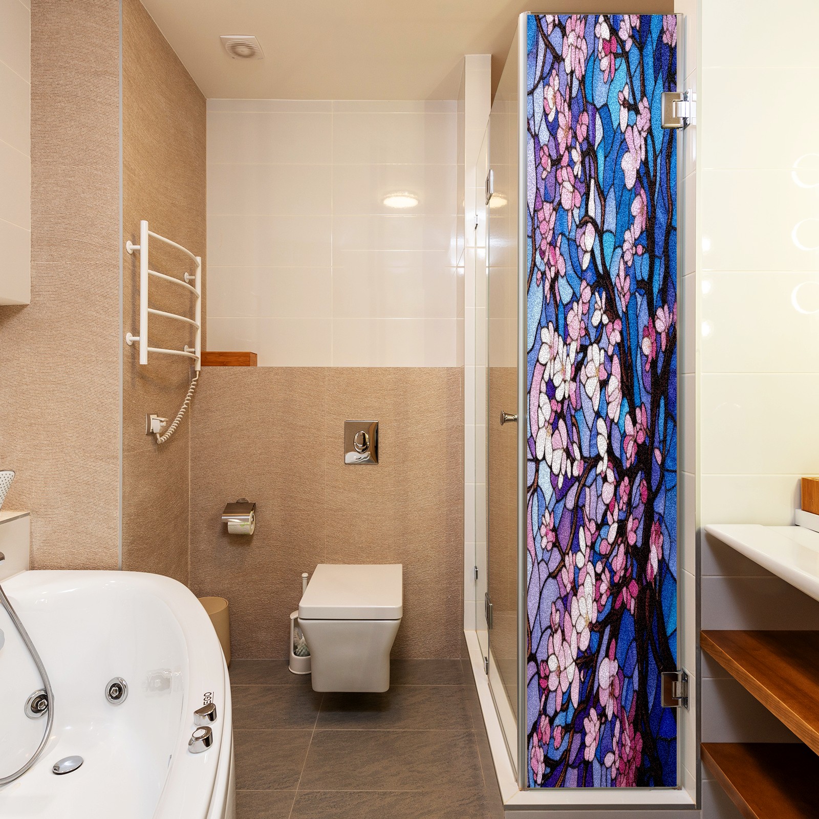 Counullo Frosted Glass Privacy Window Film, Cherry Blossom Blue Non Adhesive Static Cling, Reusable PET Window Sticker for Bathroom Shower Door Bedroom Office Living Room (17.7x23.6in)