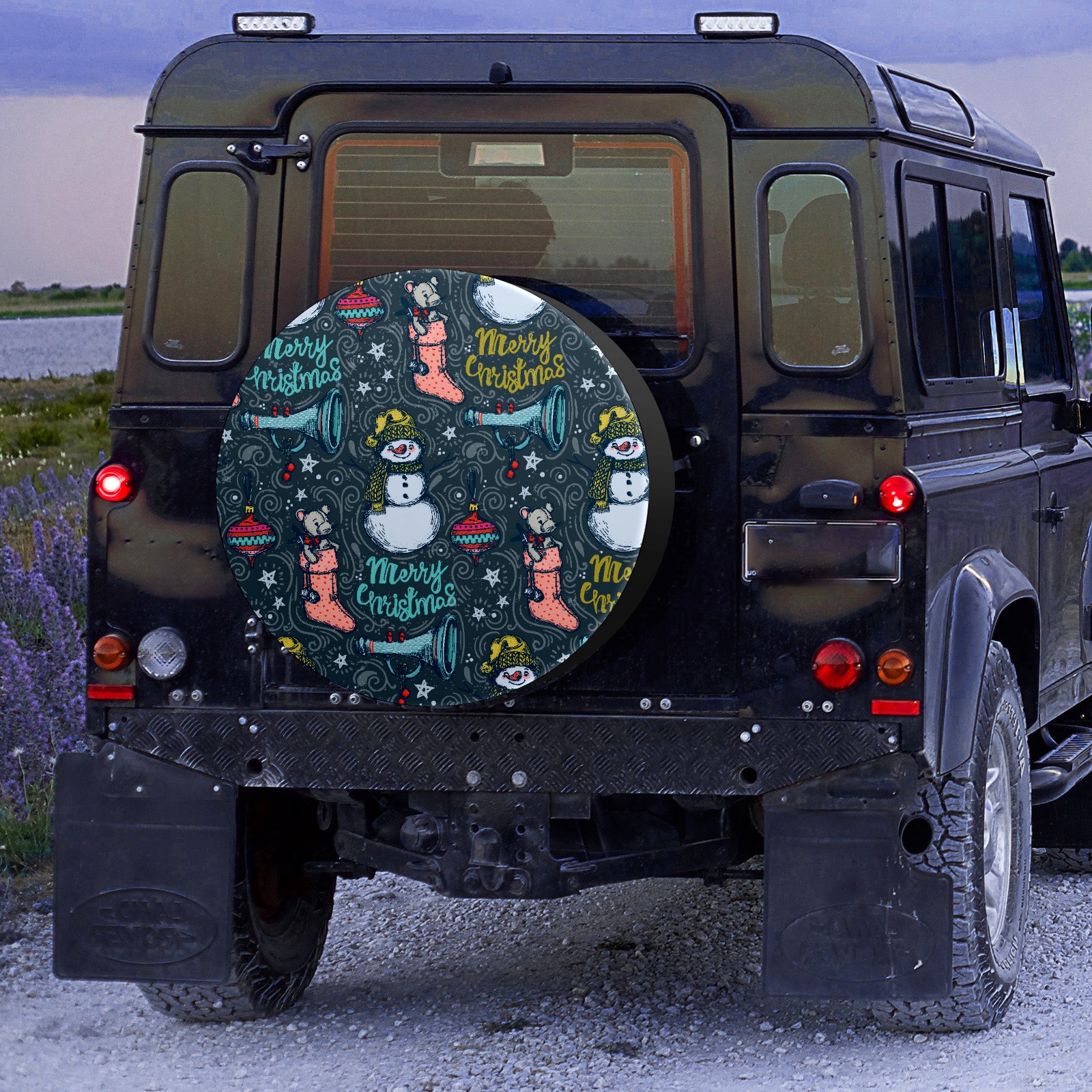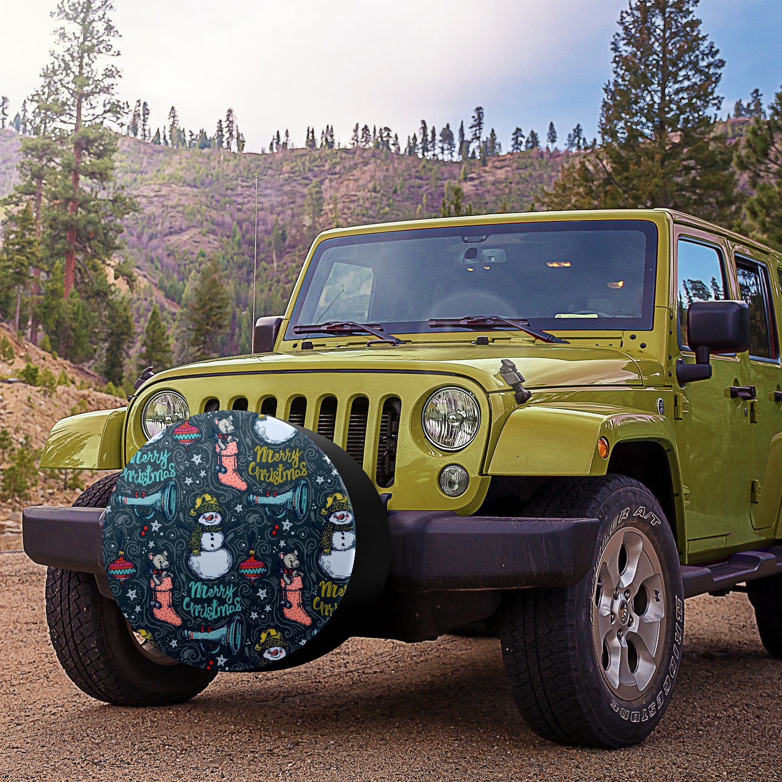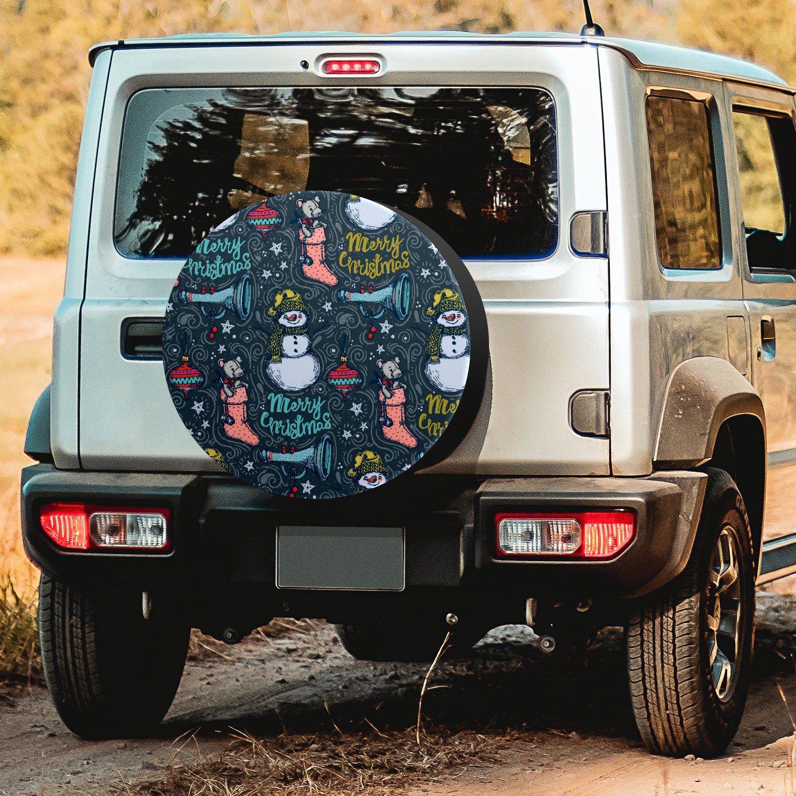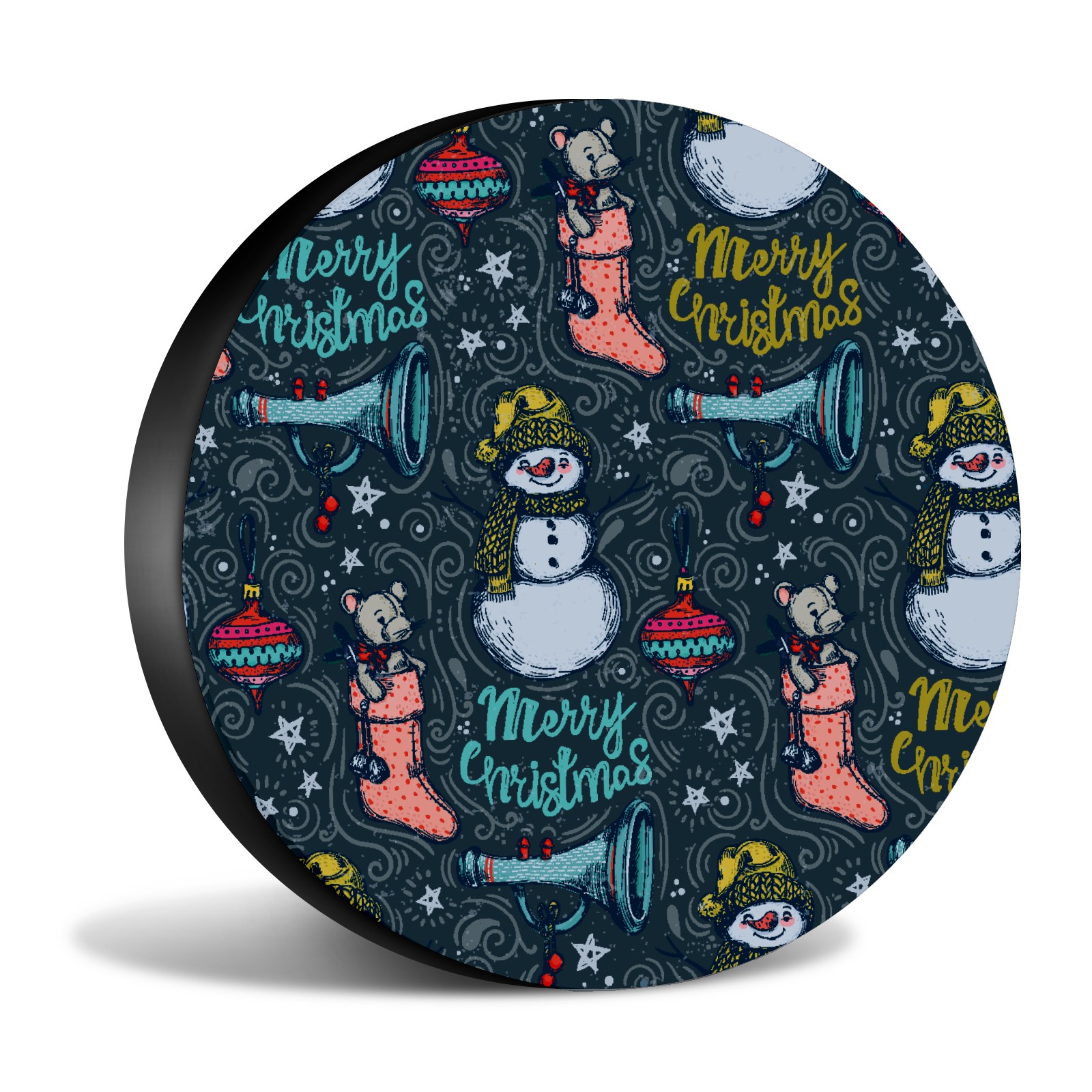 Универсальные водонепроницаемые чехлы для шин - односторонние полипропиленовые защитные колпаки для колес с регулируемой тесьмой, подходят для Hand Drawn Christmas Snowman