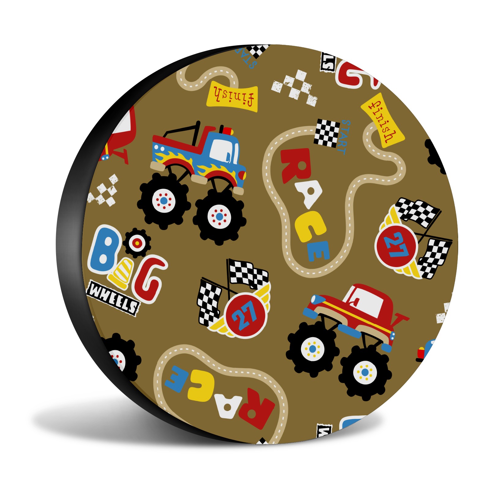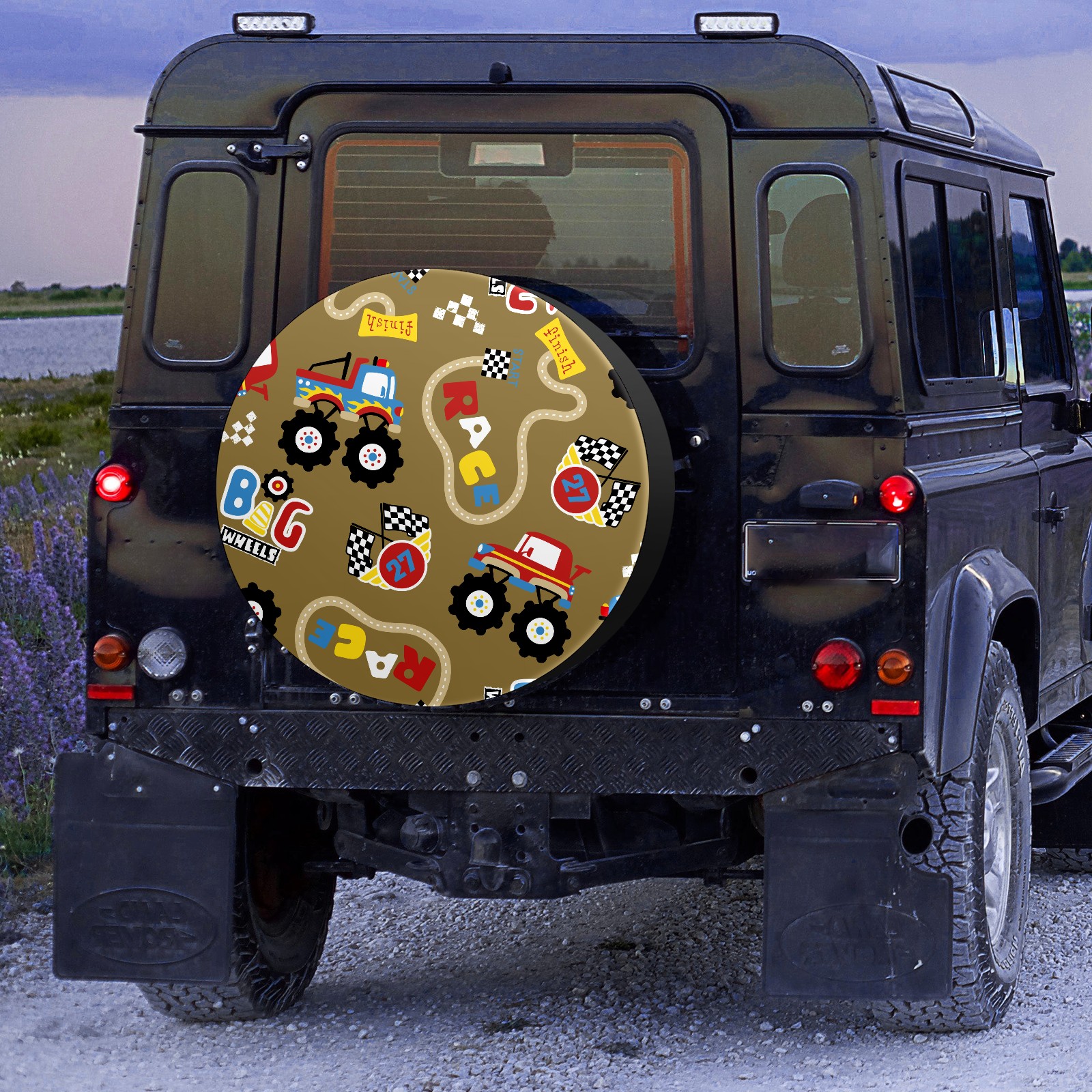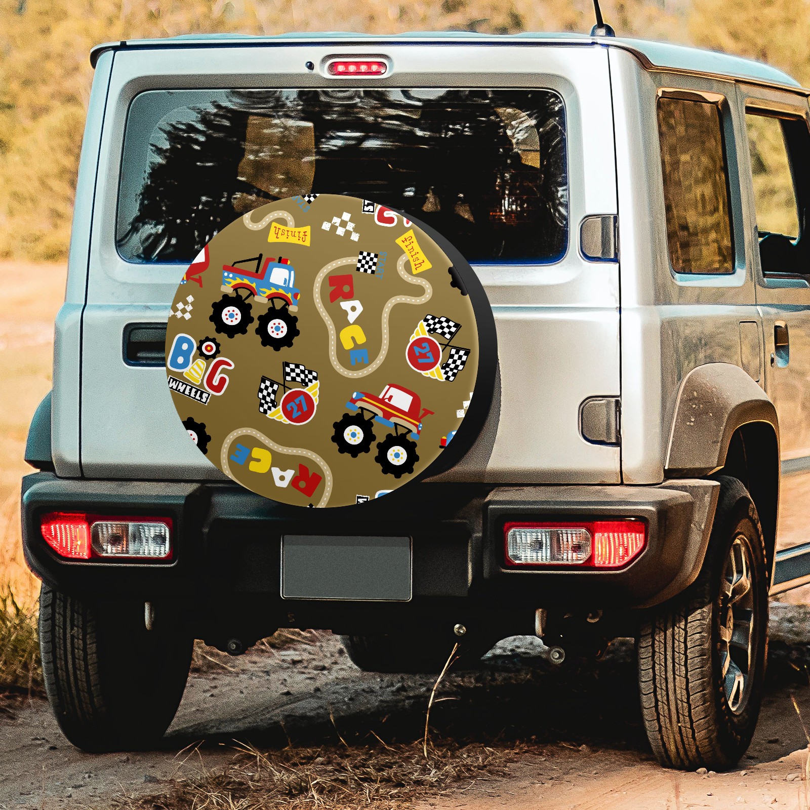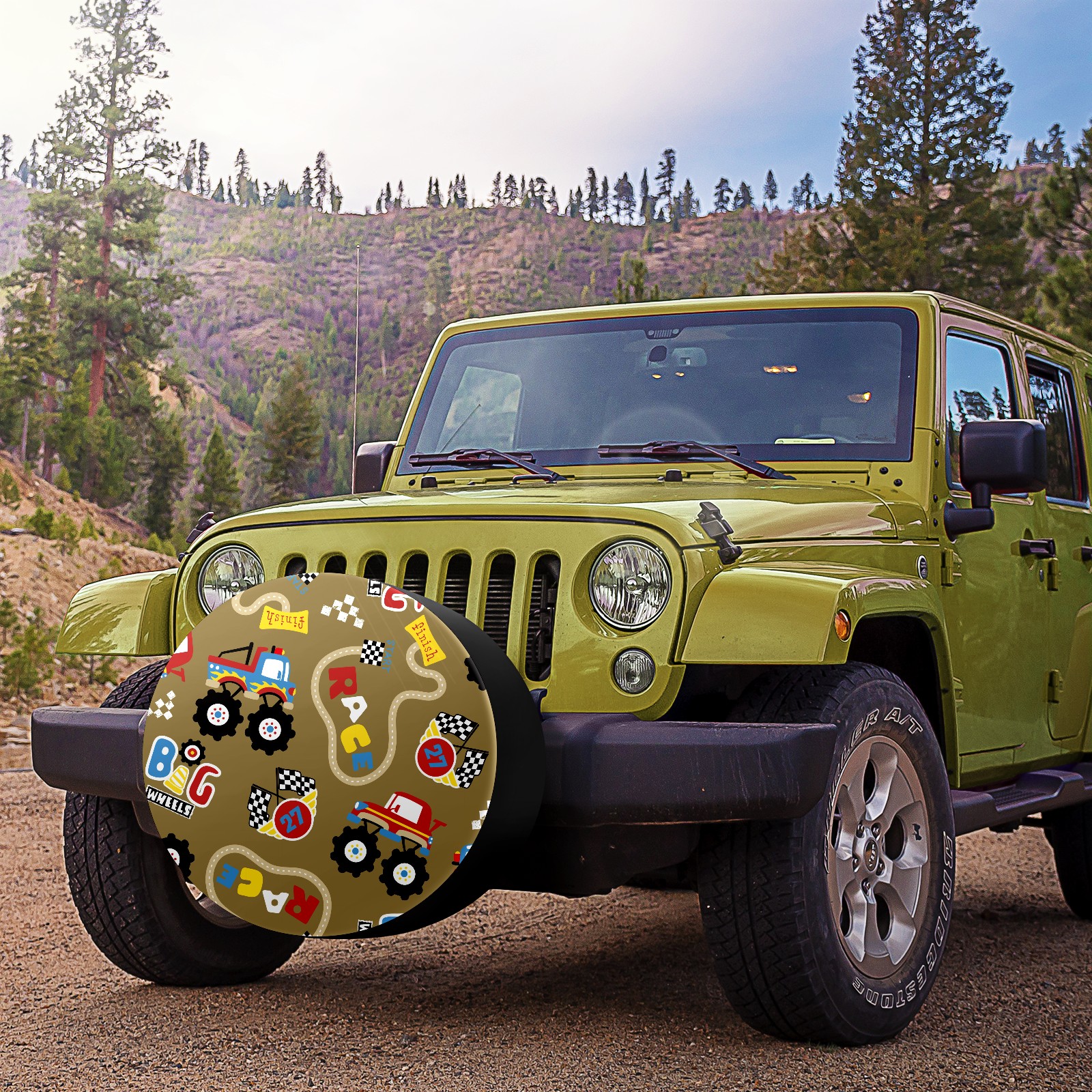 Универсальные водонепроницаемые чехлы для шин - односторонние полипропиленовые защитные колпаки для колес с регулируемой тесьмой, подходят для Vintage Retro Cartoon Monster Trucks Pattern