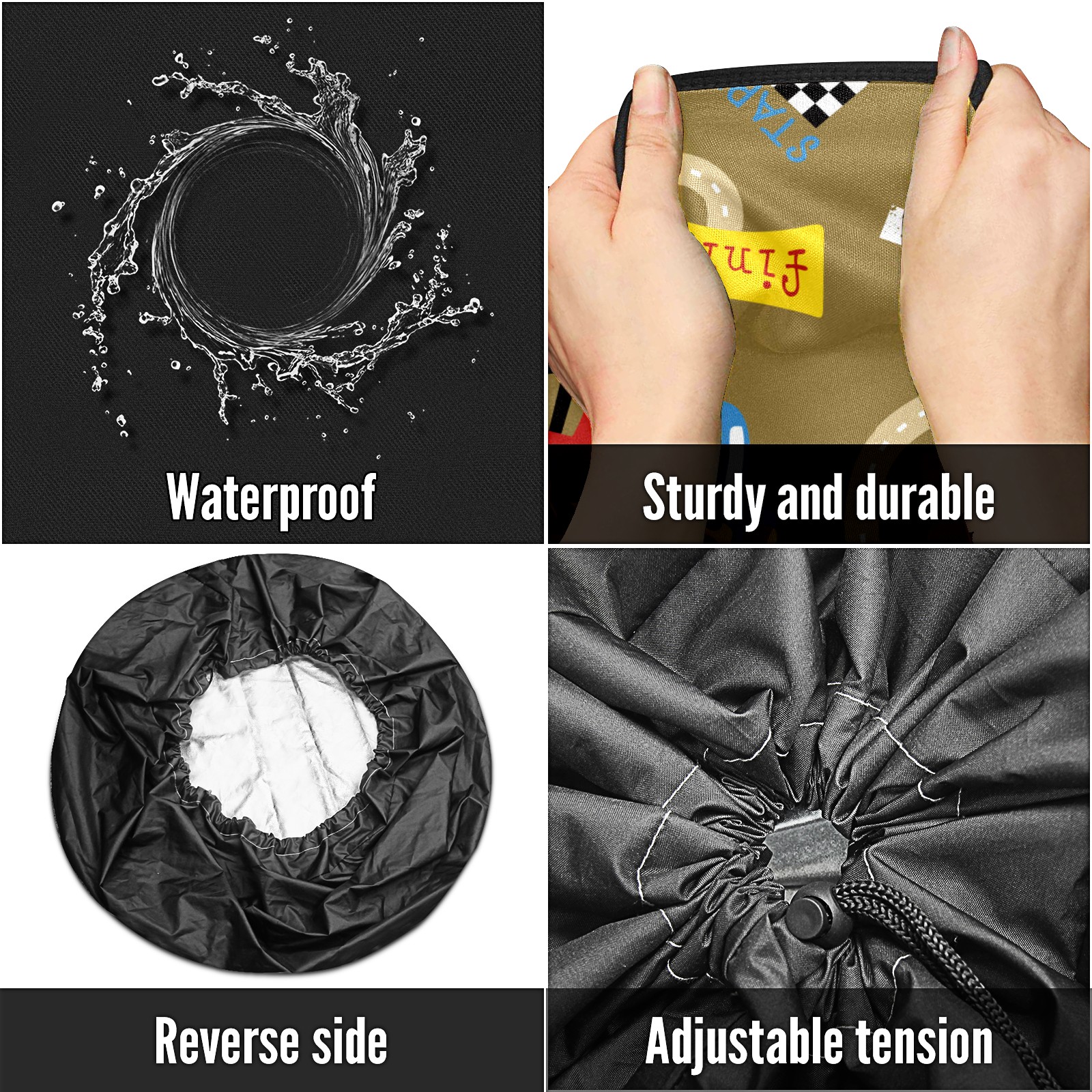 • Улучшите внешний вид вашего автомобиля и защитите шины с помощью этих универсальных водонепроницаемых чехлов для шин. Изготовленные из прочного полиэстера, они имеют водоотталкивающее покрытие, которое сохраняет шины чистыми и сухими в любых погодных условиях. Регулируемый нейлоновый шнурок обеспечивает плотное прилегание на различных размерах колес, делая установку быстрой и легкой. Односторонняя печать добавляет стильный акцент, а черные боковые панели предлагают элегантный, универсальный дизайн, который подходит для любого автомобиля. Идеально подходит для автомобилей, джипов, RVs, SUVs и многое другое, эти чехлы идеальны как для повседневного использования, так и для хранения. Лёгкие и складные, они легко хранятся, когда не нужны. Держите запасные шины в отличном состоянии и улучшите внешний вид вашего автомобиля с этими практичными и стильными чехлами. защитные колпаки для колес.