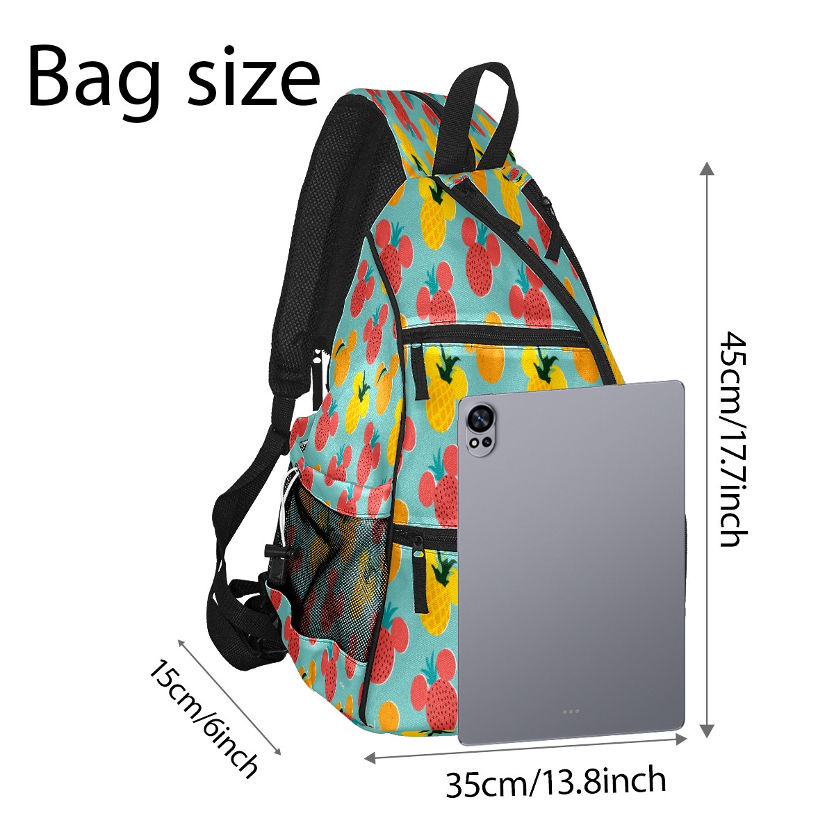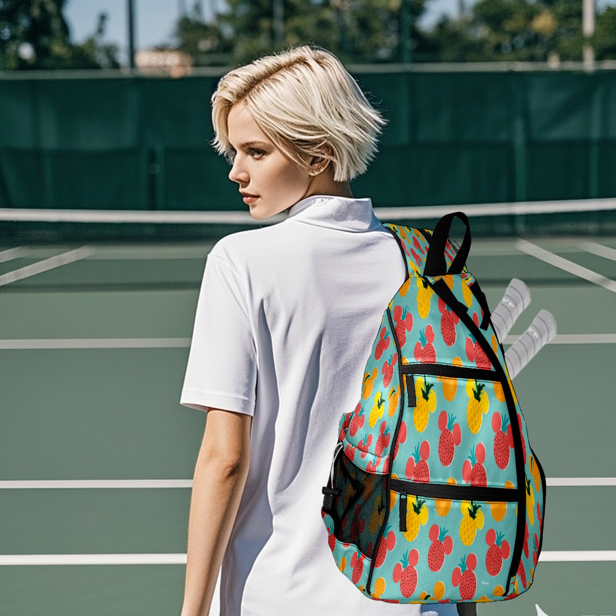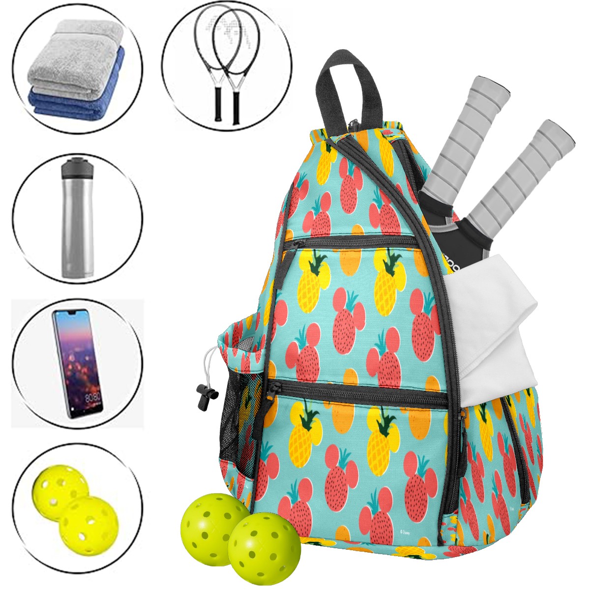 Multifunctional Pickleball Bag,Large Capacity Sports Pickleball Racket Bag, Water Bottle Holder and Fence Hook,Suitable for Both Men Women -Mickey Mouse Fruit Icon Pattern